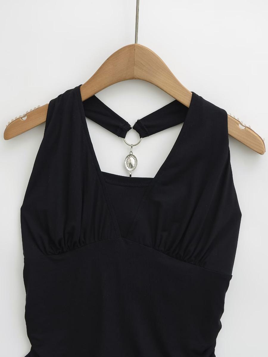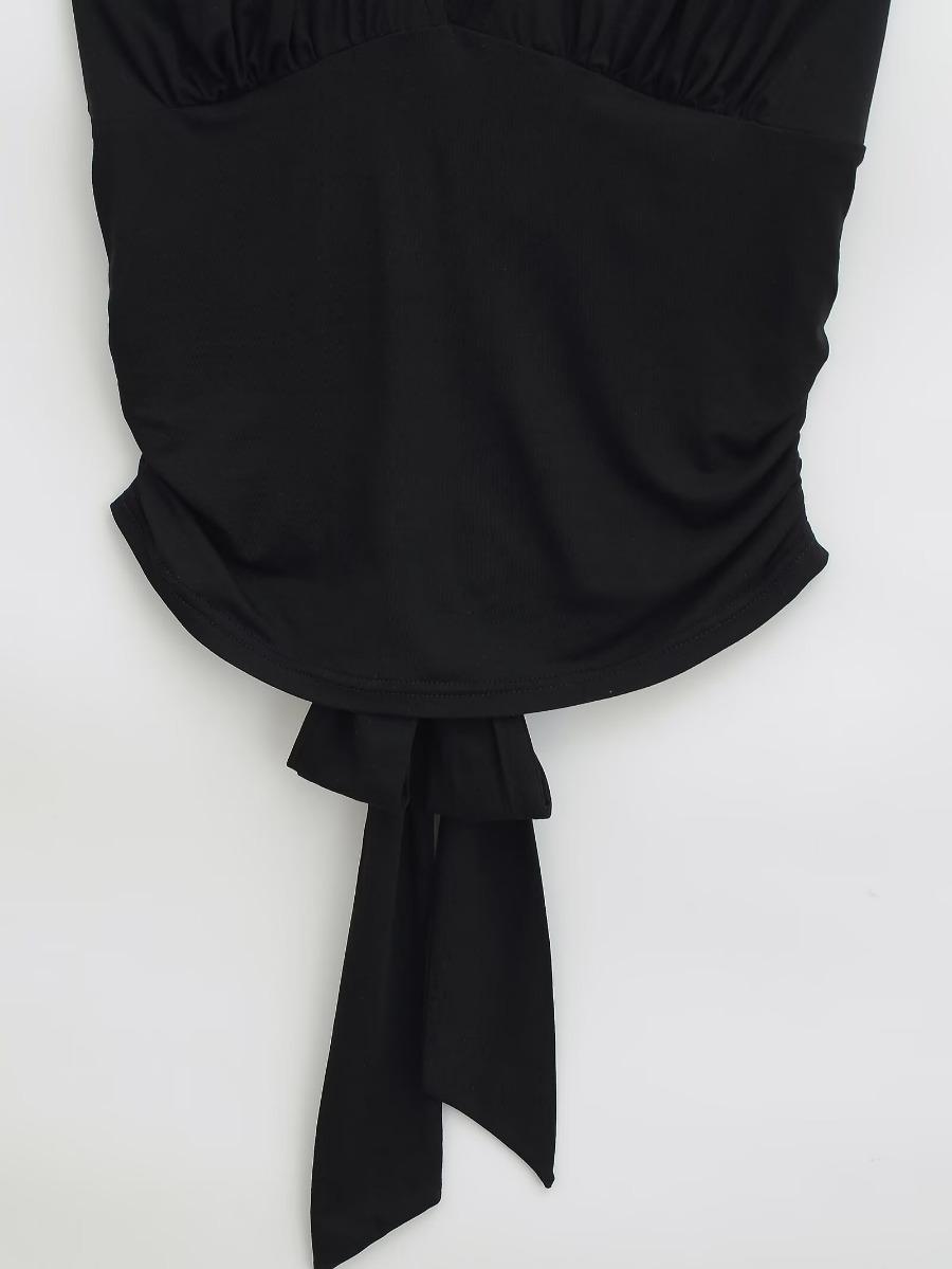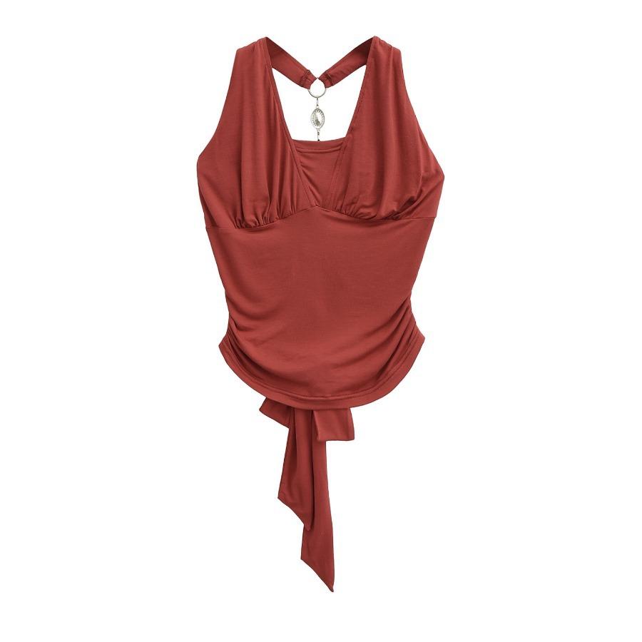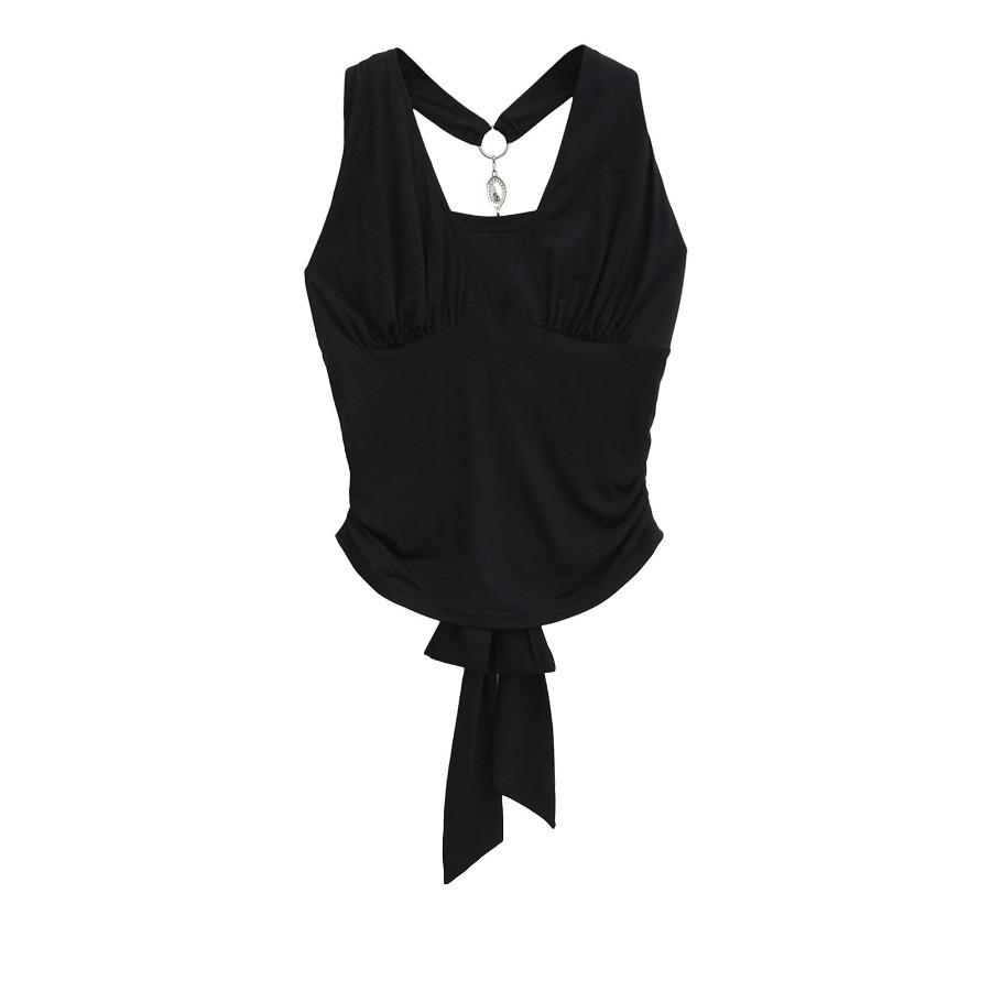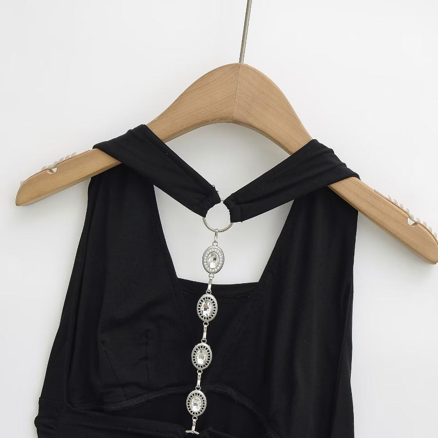 Verano Europeo y Americano Chica Caliente Diseño de Tirantes Halter Sexy Espalda Descubierta Tirantes Delgado Sin Mangas Puro Lujuria Top Corto para Mujeres