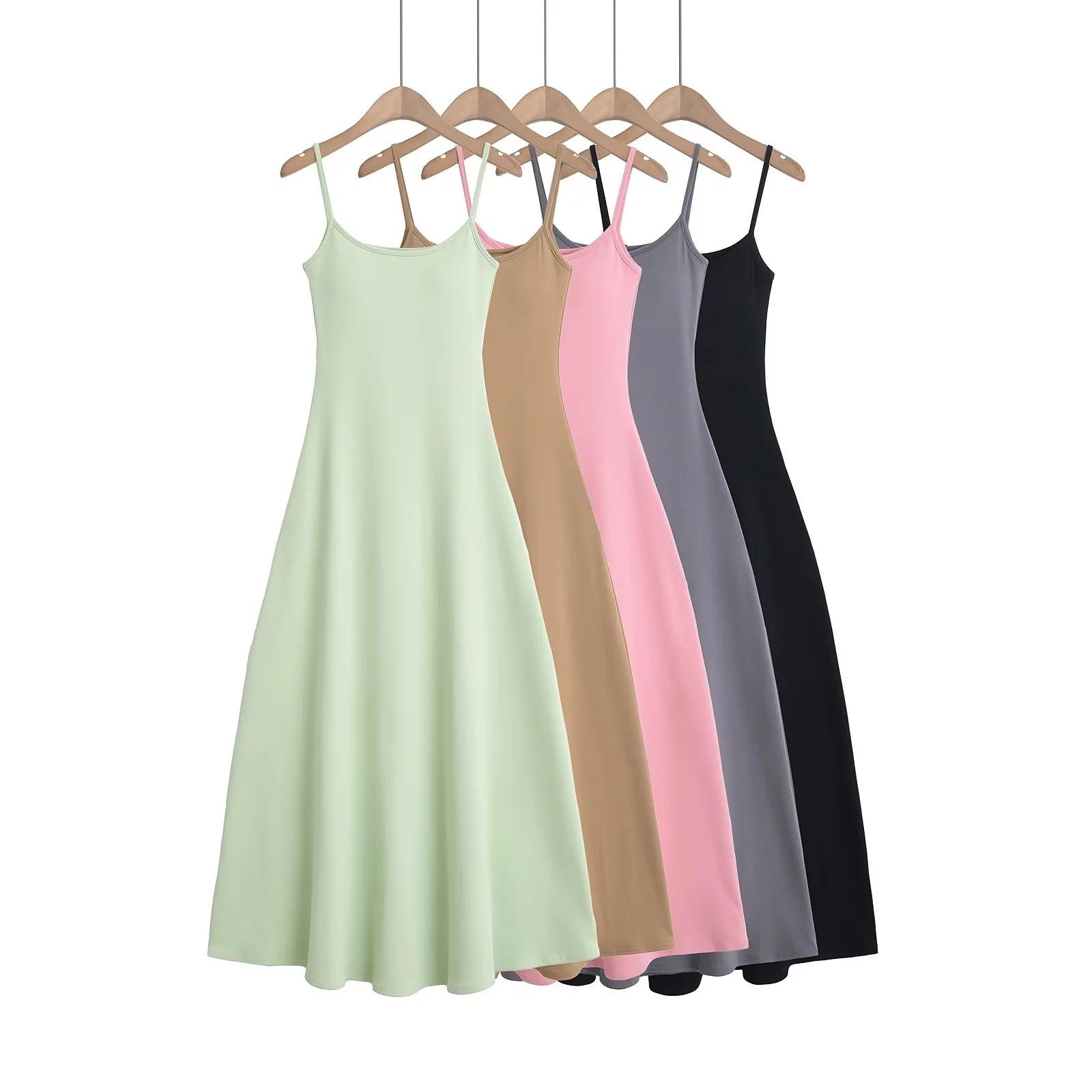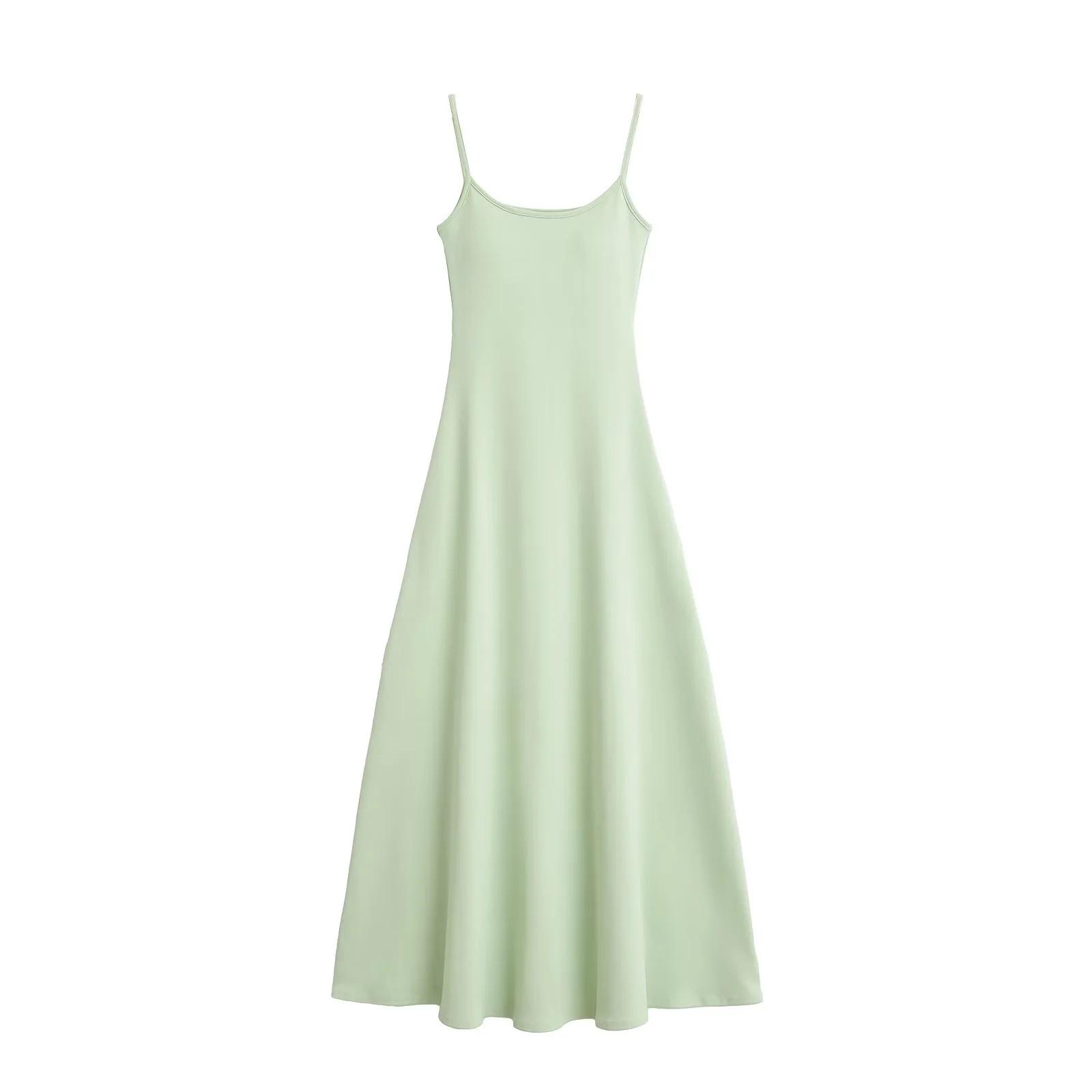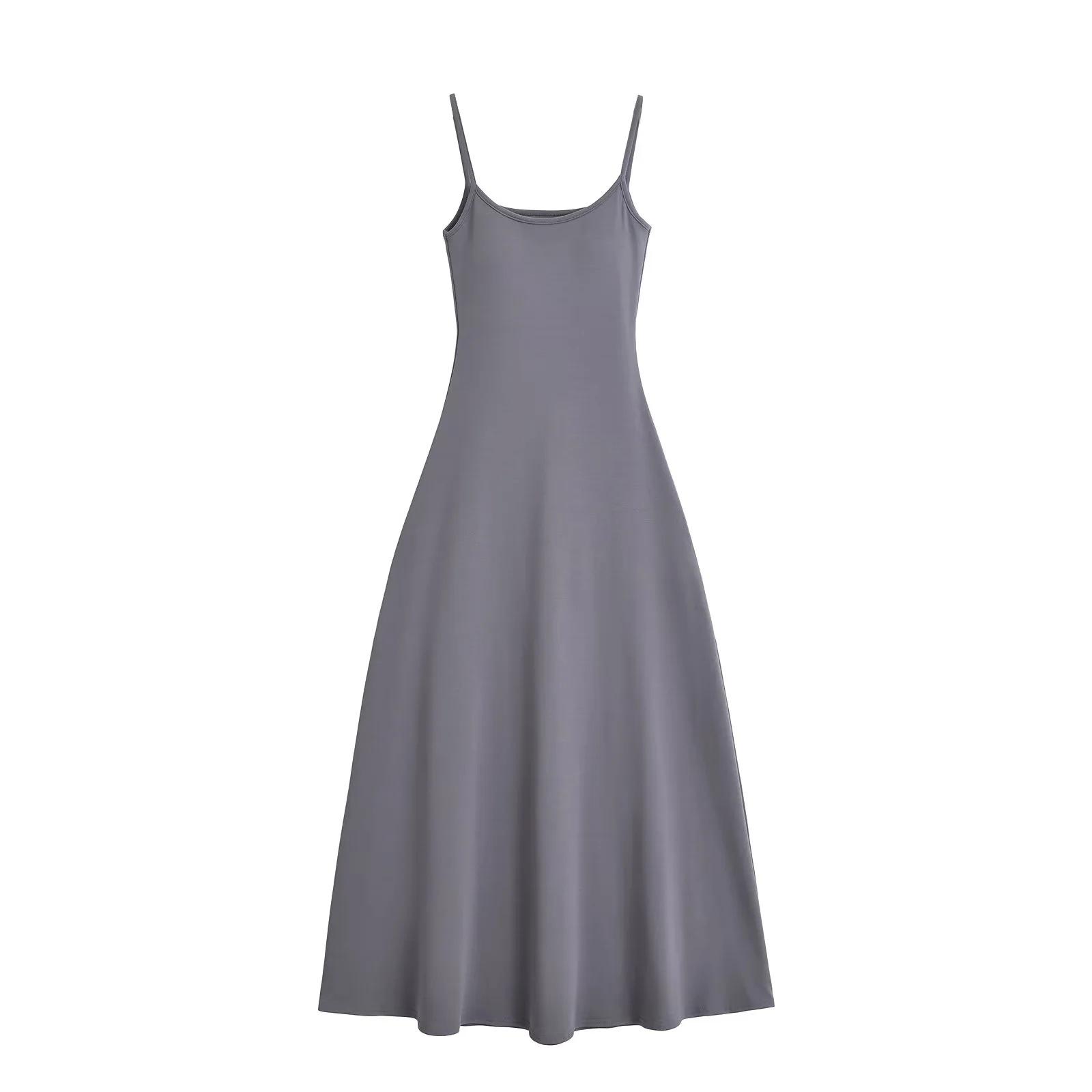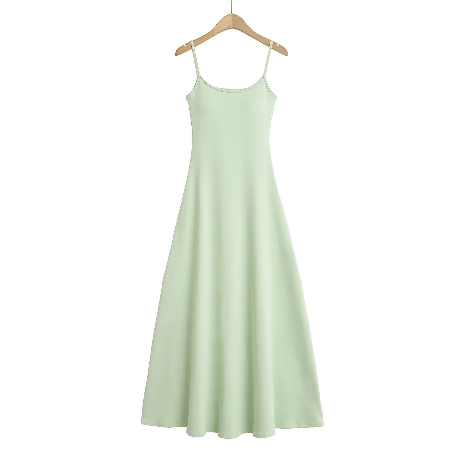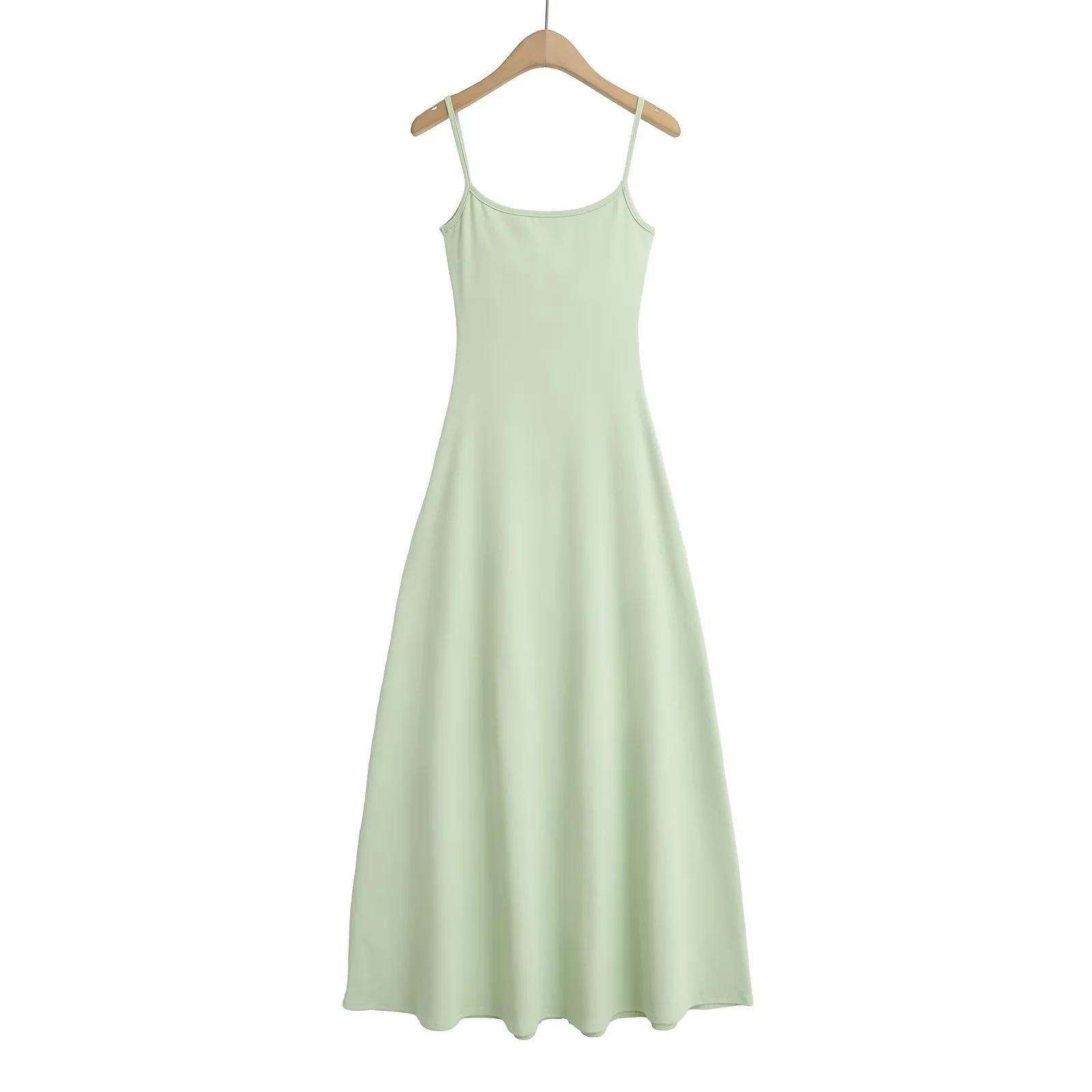 2024 Verano Nueva Llegada Estilo Francés Vestido Largo de Tirantes para Mujer Ajustado Cintura Alta Almohadilla Plana Cintura Alta con Almohadilla en el Pecho