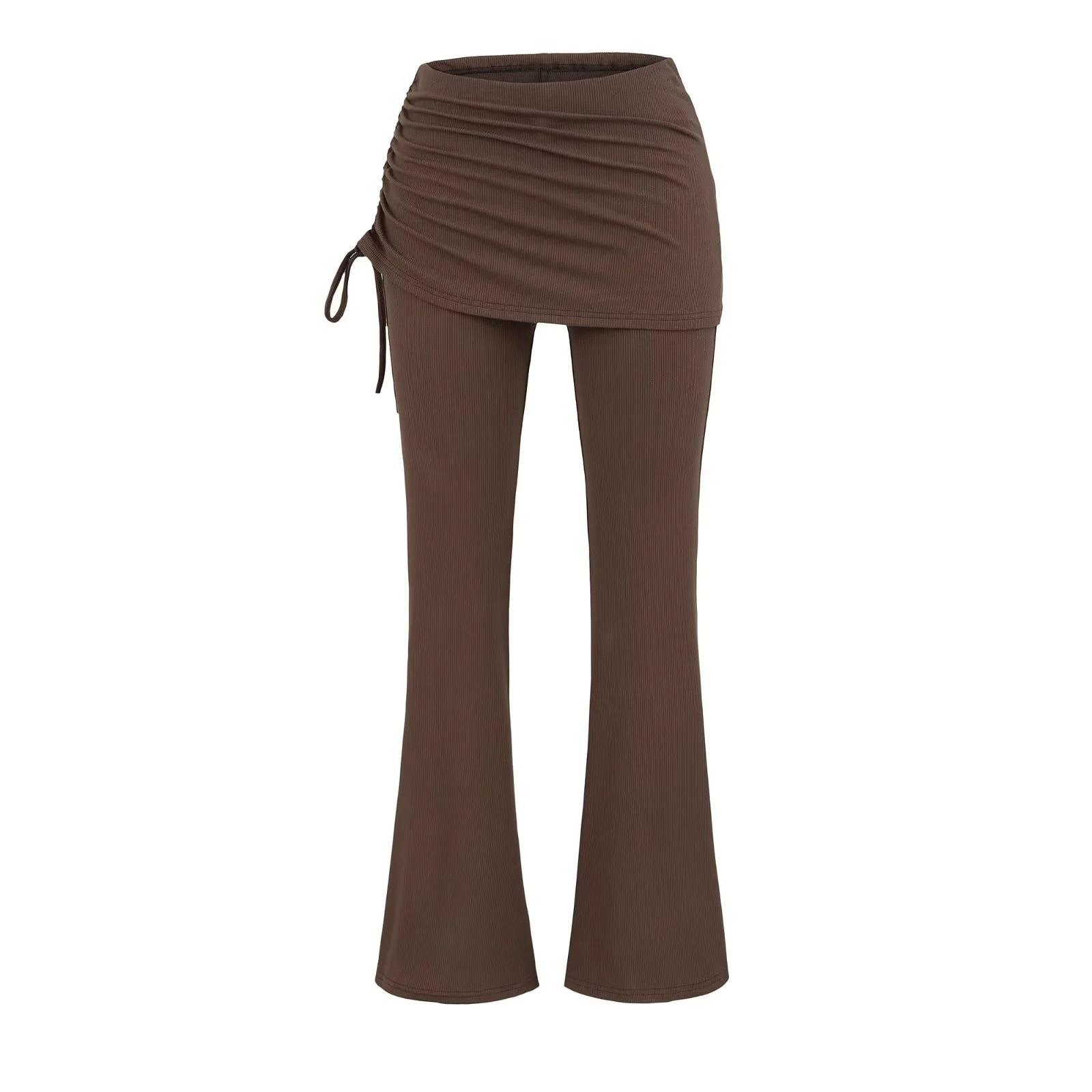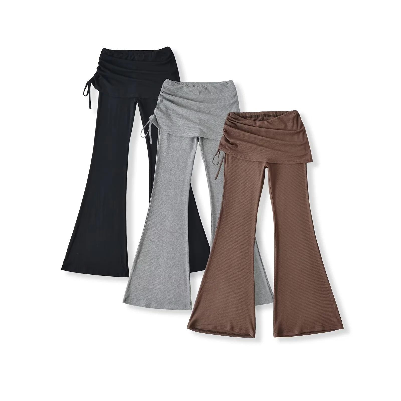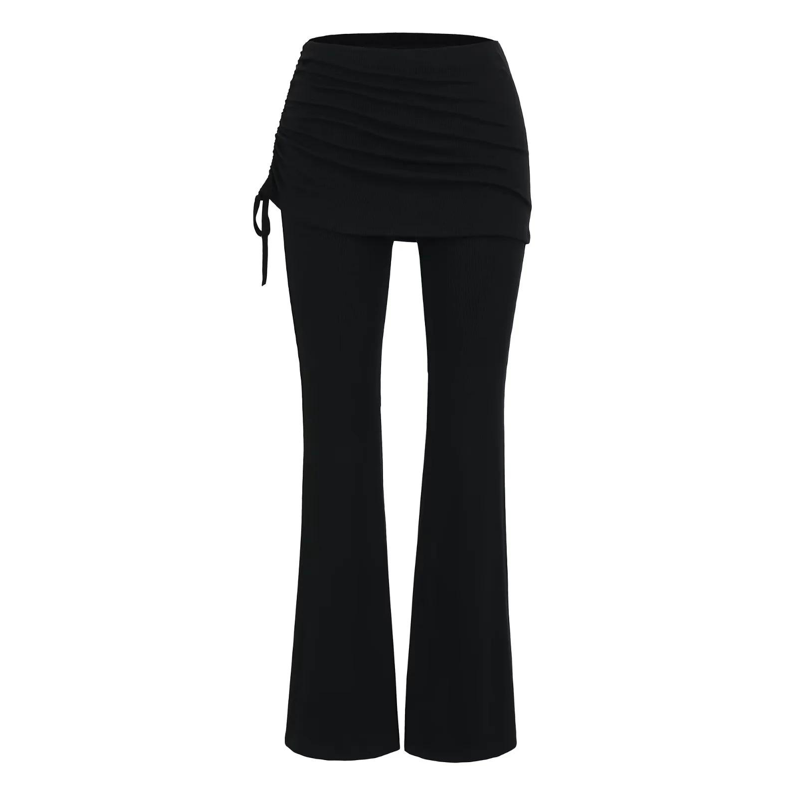 Pantalones acampanados únicos de diseño de cintura baja con puño para mujer, elásticos, ajustados, plisados, de yoga, casuales, fitness, largos hasta el piso