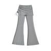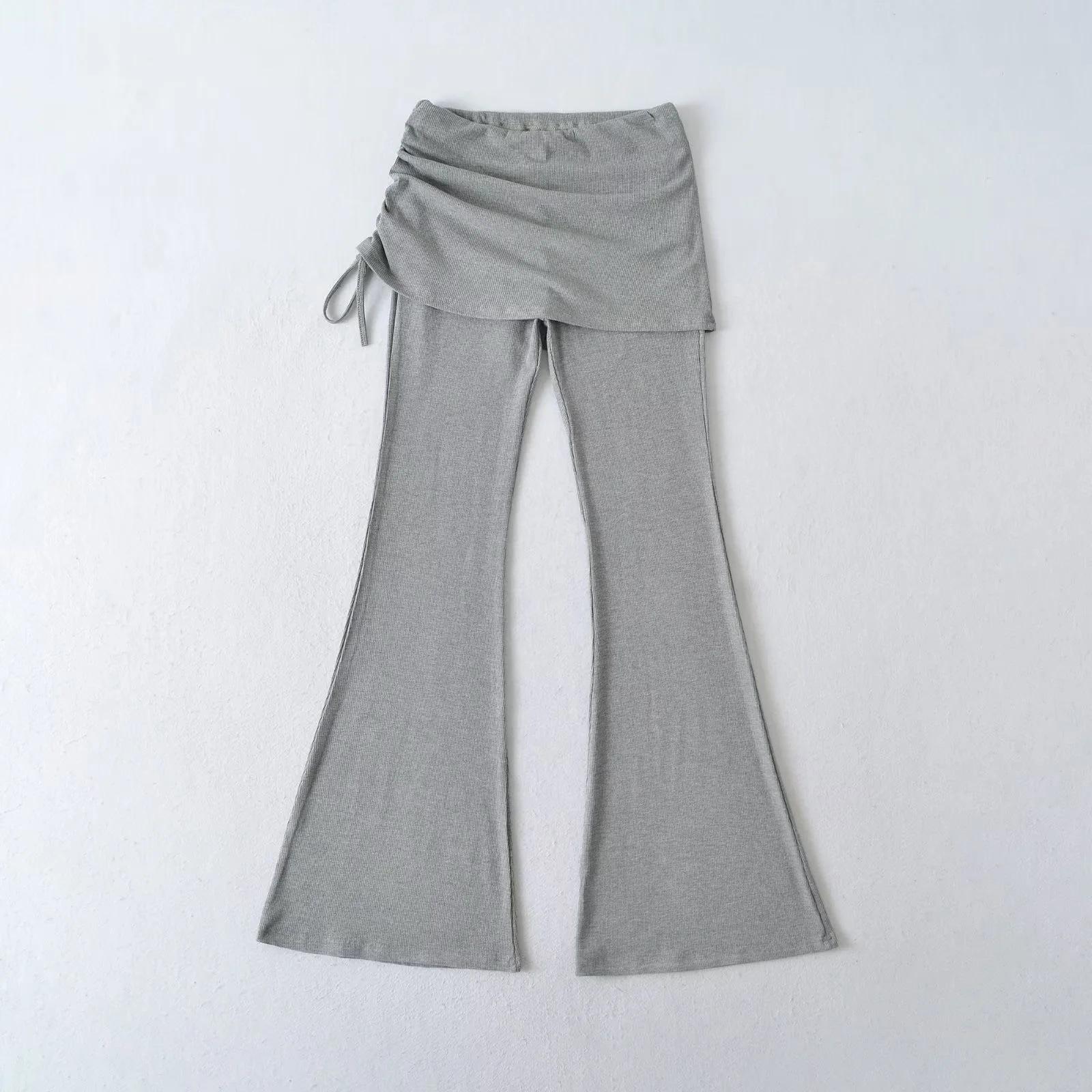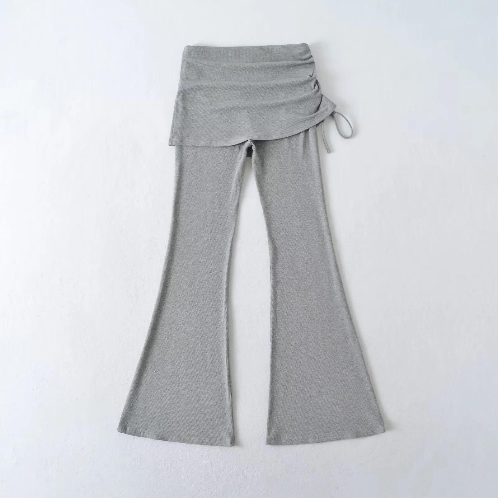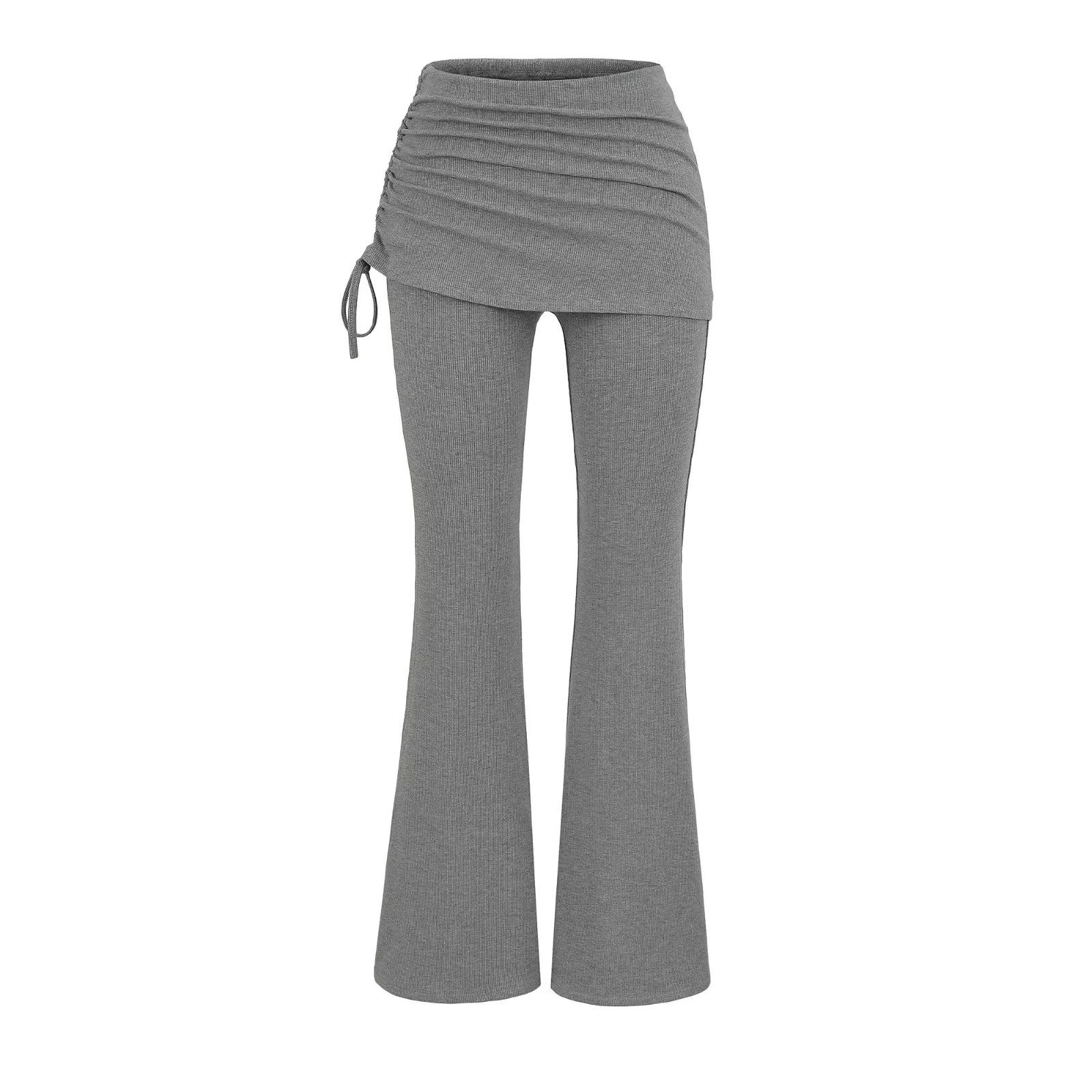 Pantalones acampanados únicos de diseño de cintura baja con puño para mujer, elásticos, ajustados, plisados, de yoga, casuales, fitness, largos hasta el piso