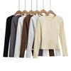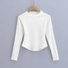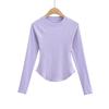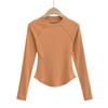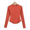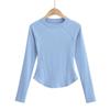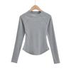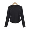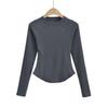 Camiseta Europea y Americana Spice Girl 2023 Primavera Temprana Nueva Cuello Redondo Raglán Manga Larga Ajustada Cintura Adelgazante Cuello Redondo Base Curva Top