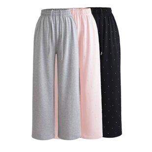 Otoño Nuevos Pantalones de Mujer Exquisitos de Pedrería Completa Pantalones Deportivos Casuales Holgados Cintura Elástica Pantalones de Pierna Ancha Rectos para Mujer