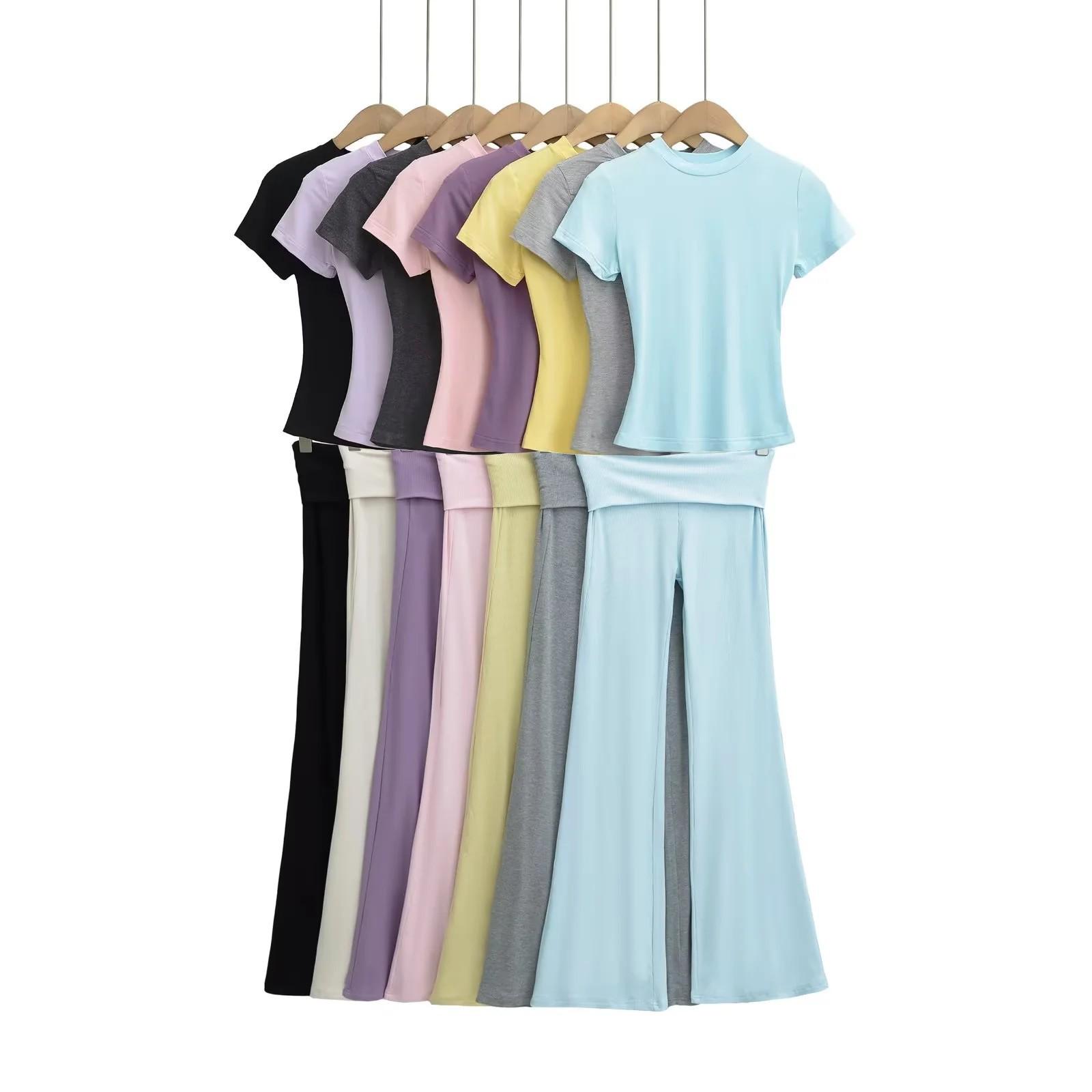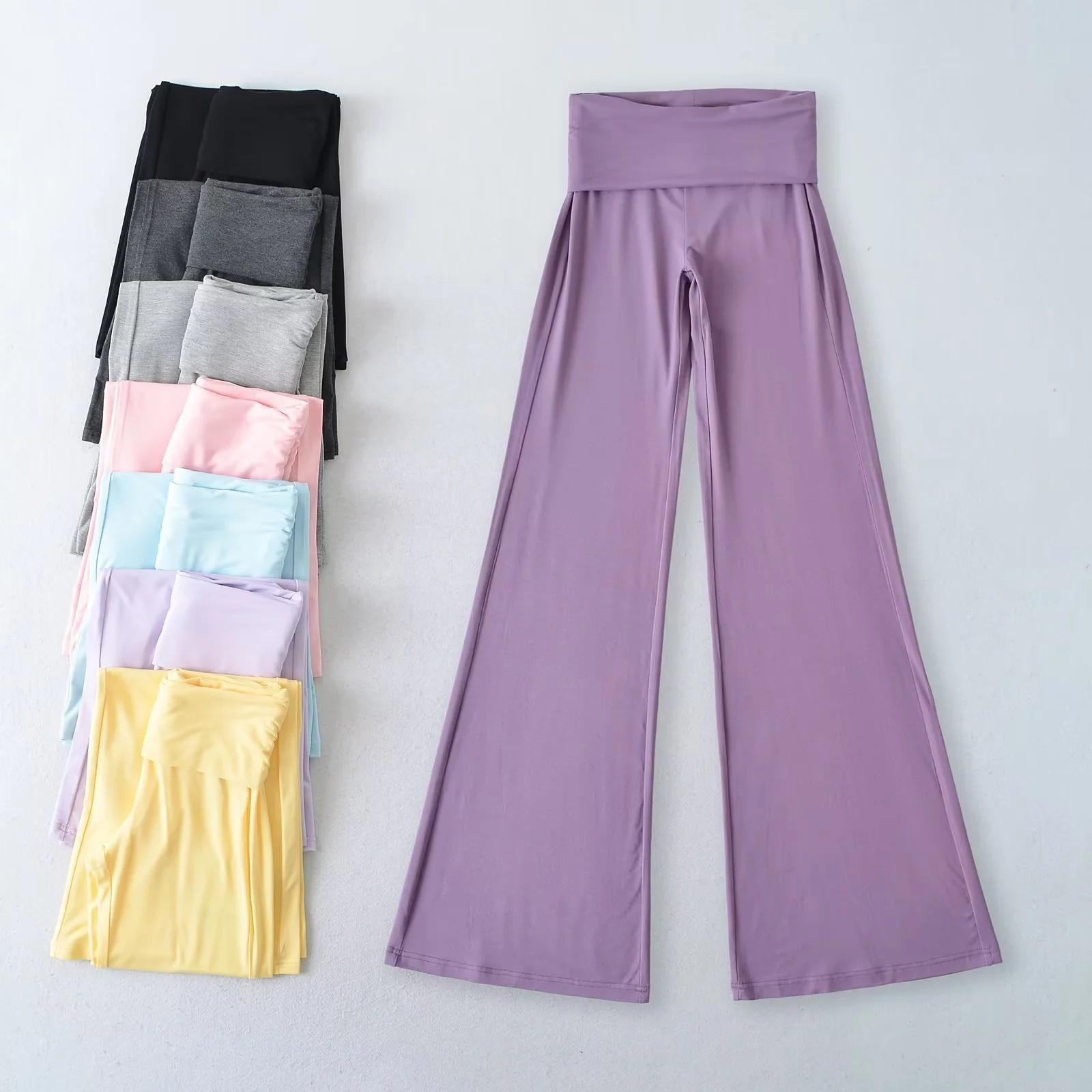 Pantalones Casuales Micro Acampanados de Nuevo Estilo Caliente para Primavera/Verano 2025 Cintura con Cordón Elástico Coloridos Yoga Drapeado Micro Acampanados Pantalones Largos