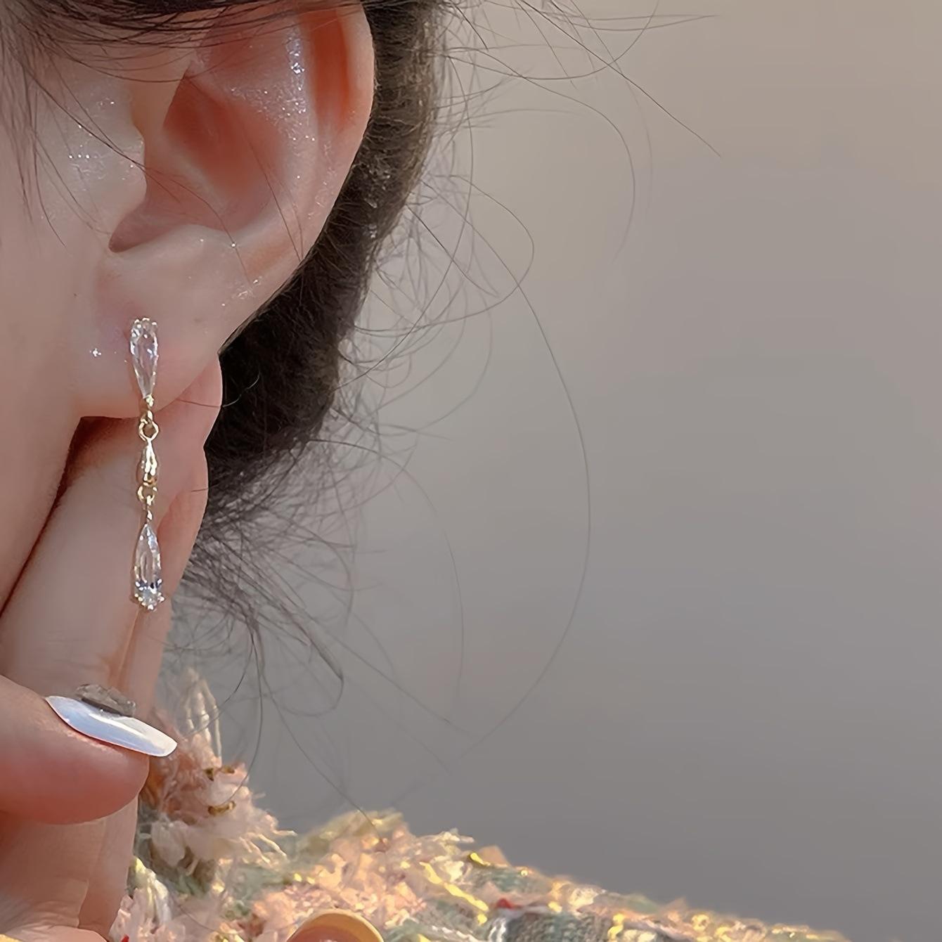 2024 Pendientes Colgantes de Circonita en Forma de Gota de Nueva Llegada Transfronteriza Europea y Americana con Pendientes Cortos de Borla Estilo Chanel Dorado para Mujer