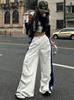 Pantalones cargo rectos de tiro alto con cordón de estilo americano para mujer, pantalones casuales de verano holgados de pierna ancha hasta el suelo