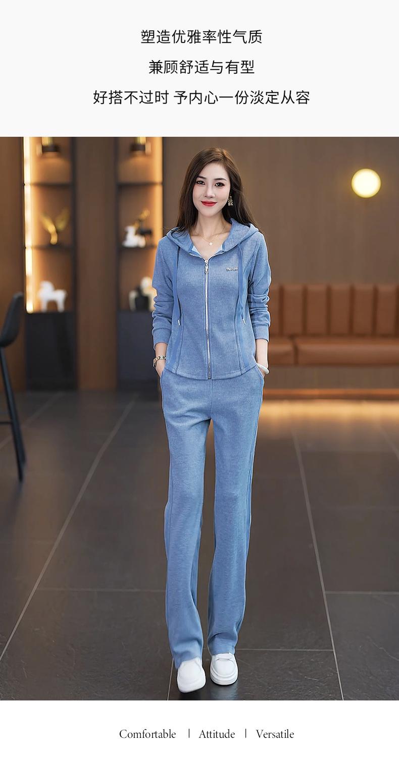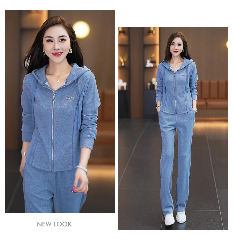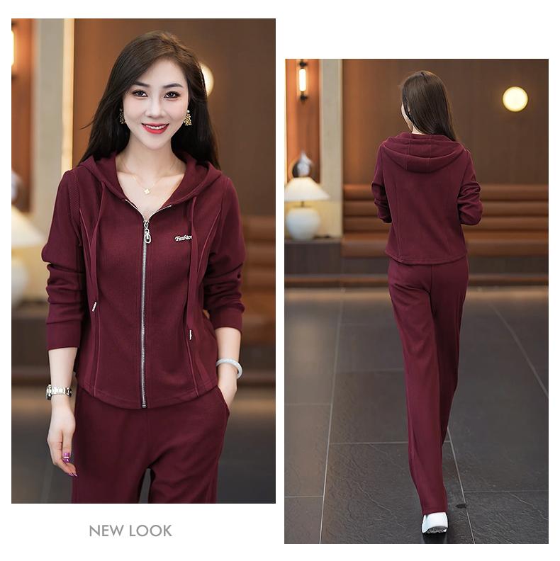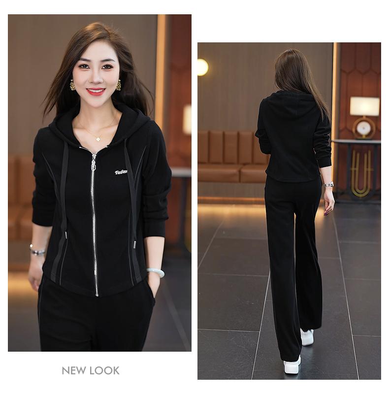 Traje Deportivo para Mujer 2024 Nuevo Principios de Otoño Estilo Coreano Ropa Sudadera Corta con Capucha Traje Casual para Correr Conjunto de Dos Piezas