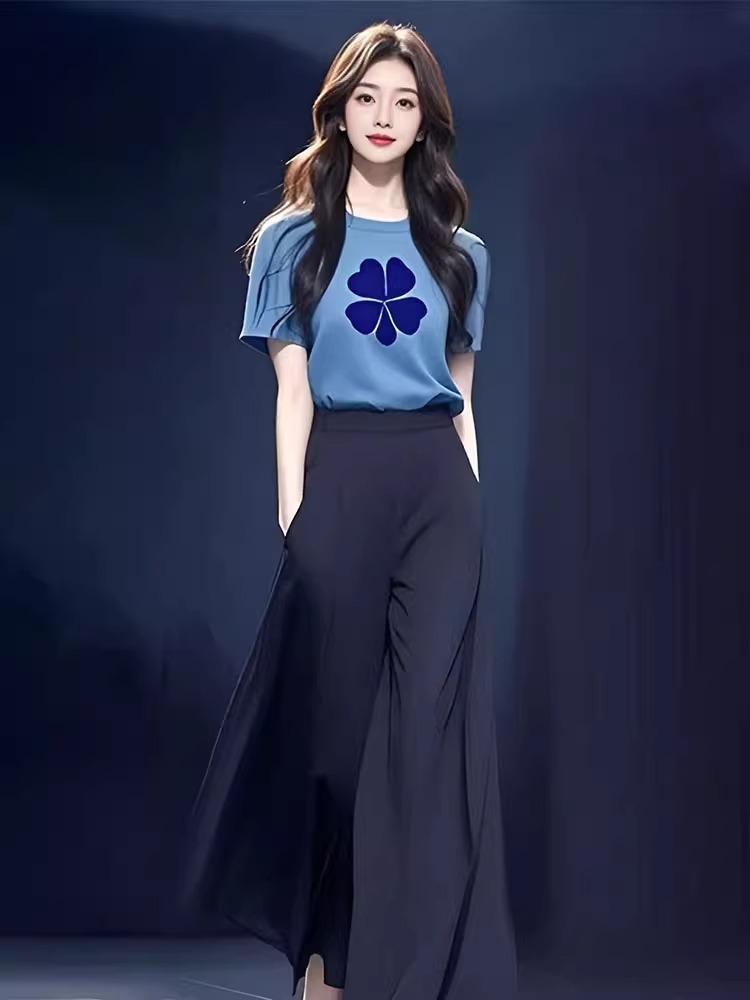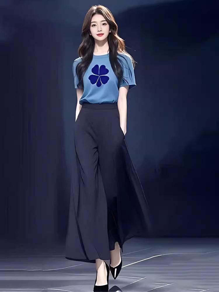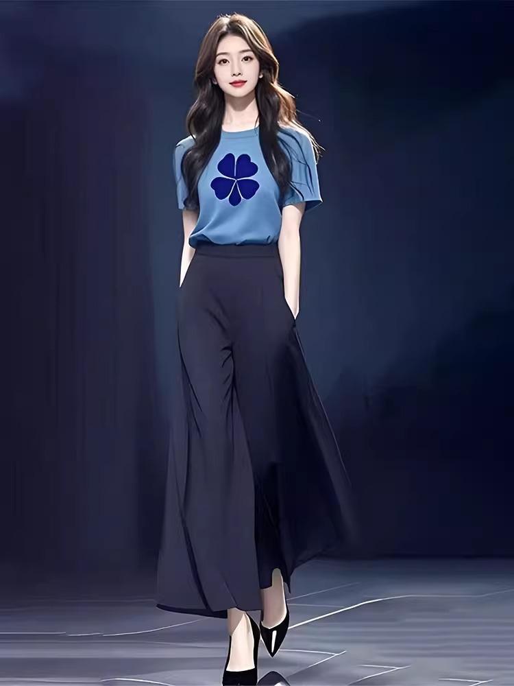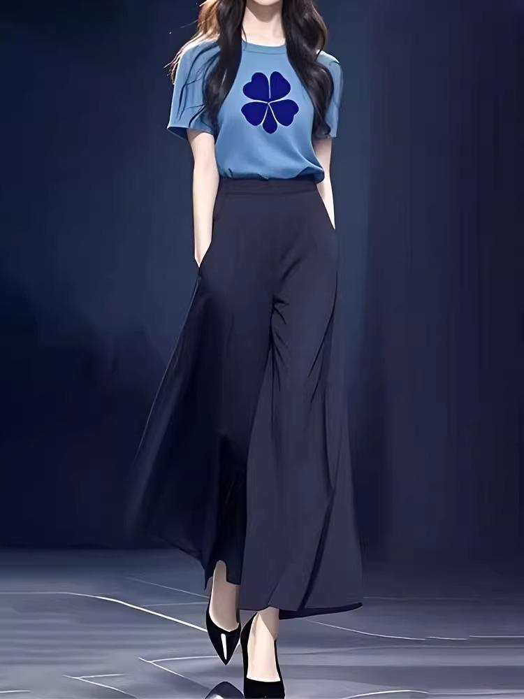 2025 Nuevo Verano Temperamento de Alta Gama Adelgazante Manga Corta Casual Pantalones de Pierna Ancha Conjunto de Moda para Mujer de Dos Piezas