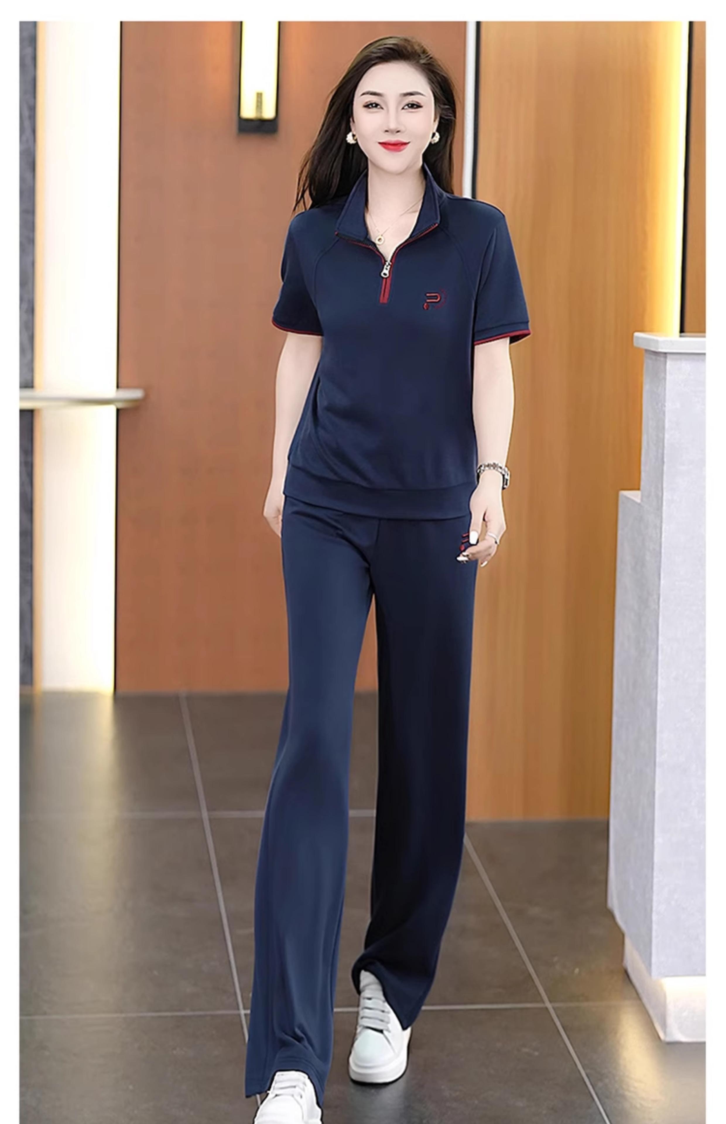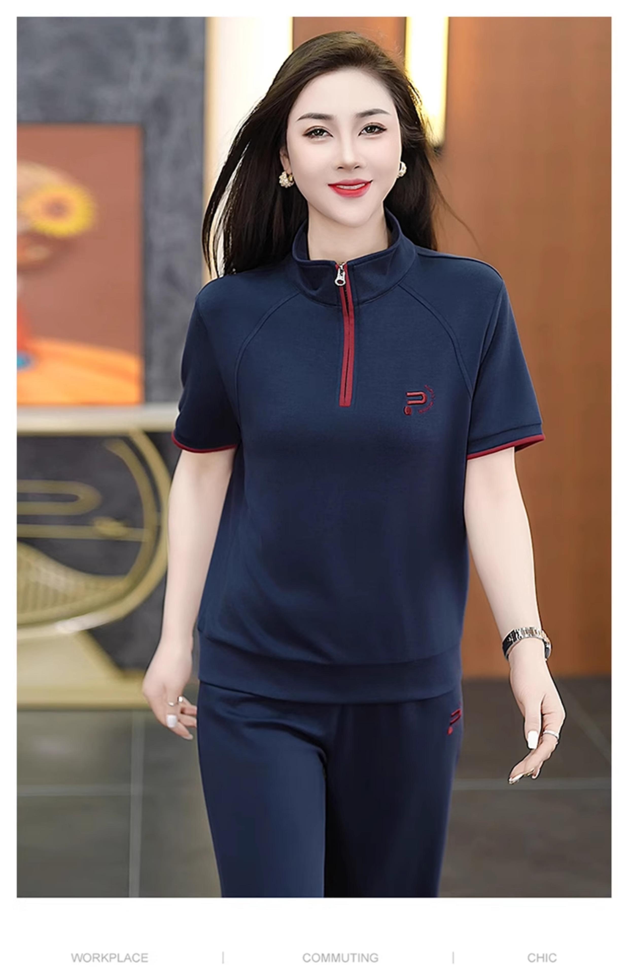 Traje Deportivo para Mujer 2025 Nueva Ropa de Verano, Ropa Casual Moderna y que Reduce la Edad, Ropa para Correr de Cuello Alto Conjunto de Dos Piezas