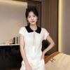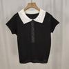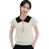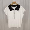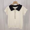 Estilo Verano Chica Caliente Tejido para Mujer Holgado Adelgazante Look Reductor de Edad Polo Solapa Color Bloqueado Camiseta Tejida de Manga Corta a la Moda