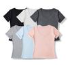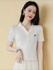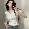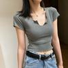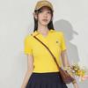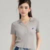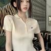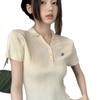 Playera de Manga Corta con Cuello Polo y Hombro Derecho Descubierto para Mujer Verano Nuevo Sexy Corta a la Cintura Ajustada Adelgazante Top de Punto