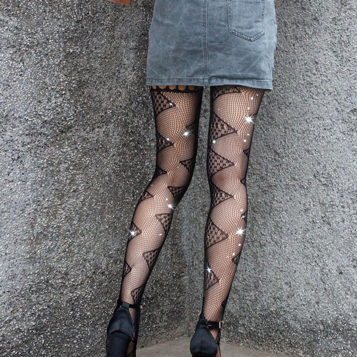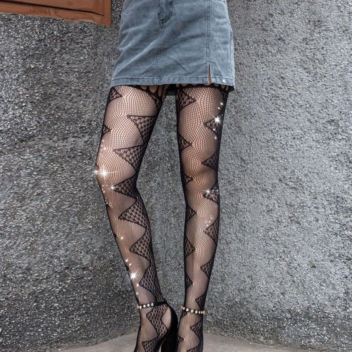 Black snake print fishnet stockings, Jacquard half-length rhinestone fishnet stockings, Black snake print fish...