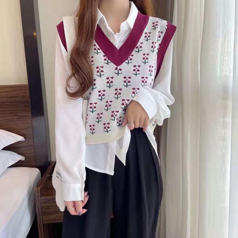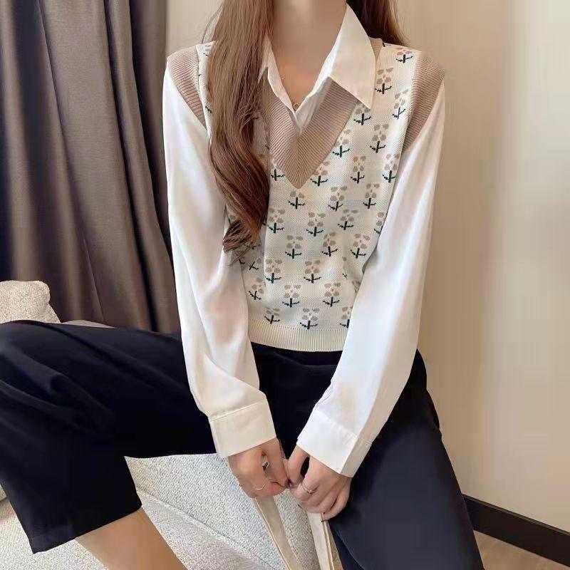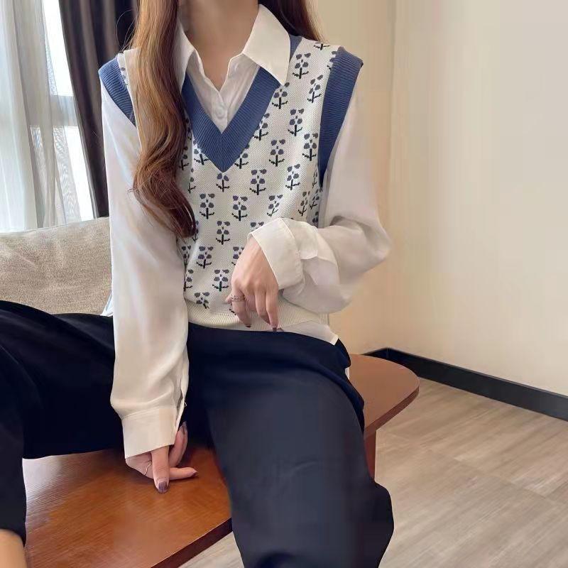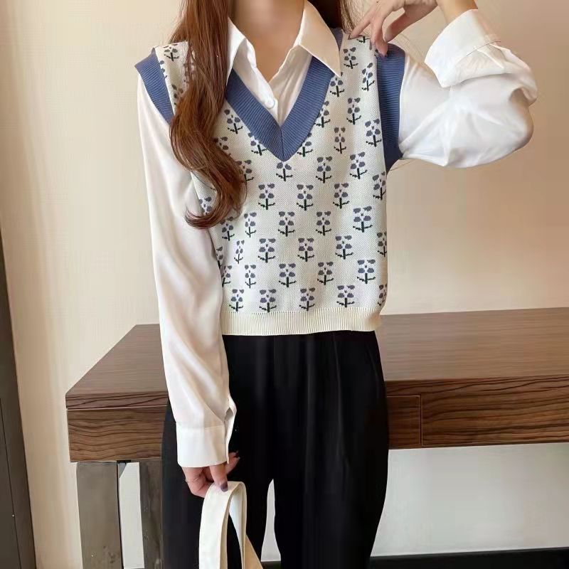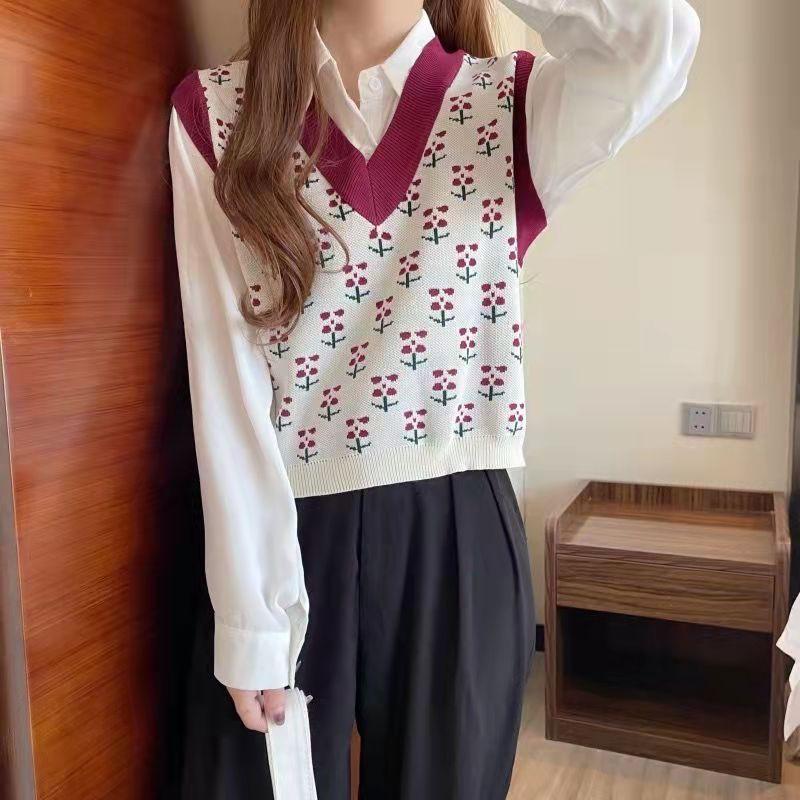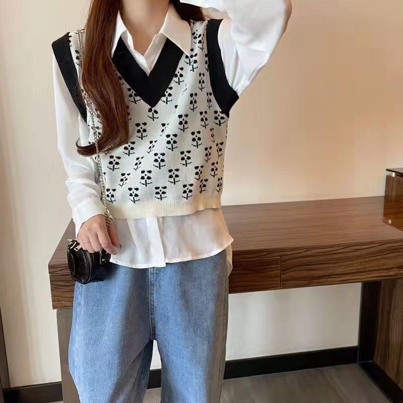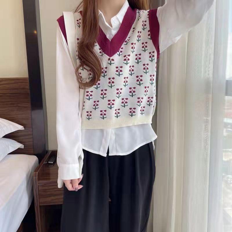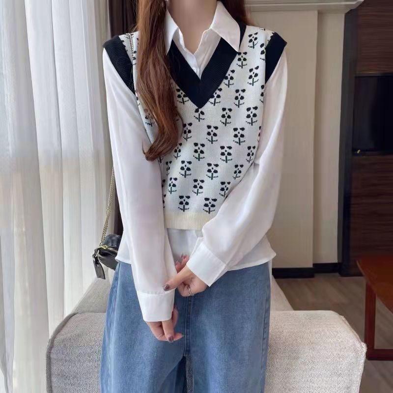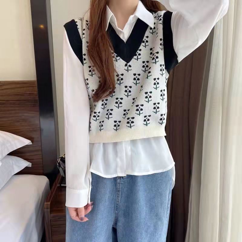 Suéter de Punto Primavera 2024 Más Fácil de Combinar Patrón Jacquard Diseño de Chaleco sin Mangas Chaleco Top Jersey de Mujer