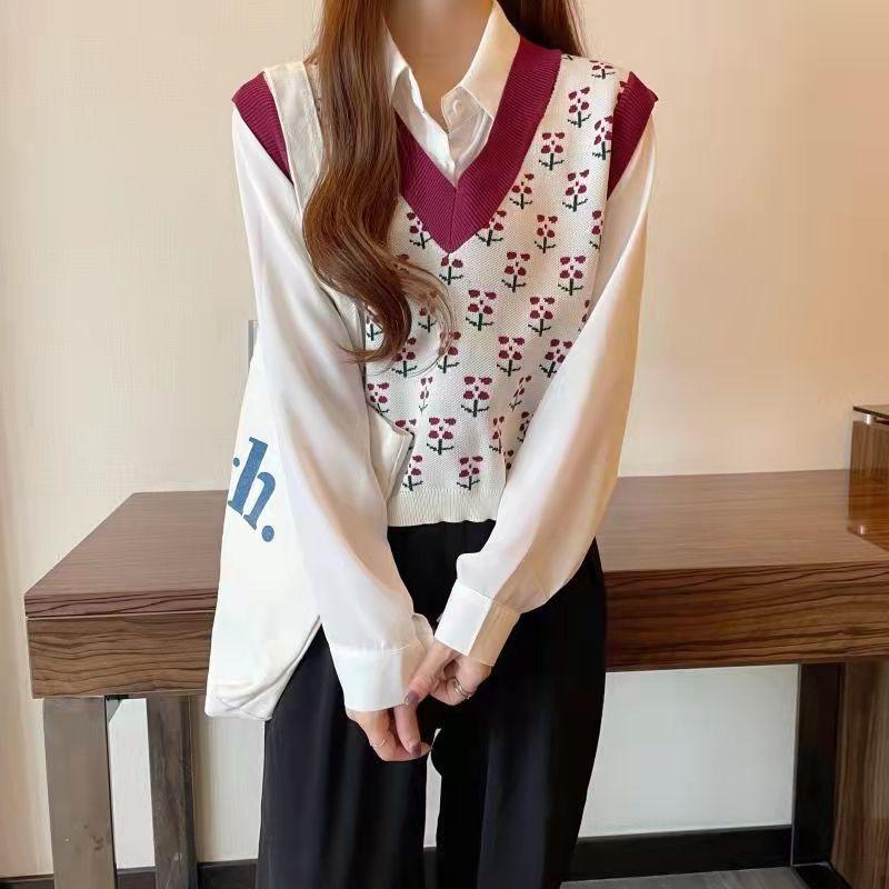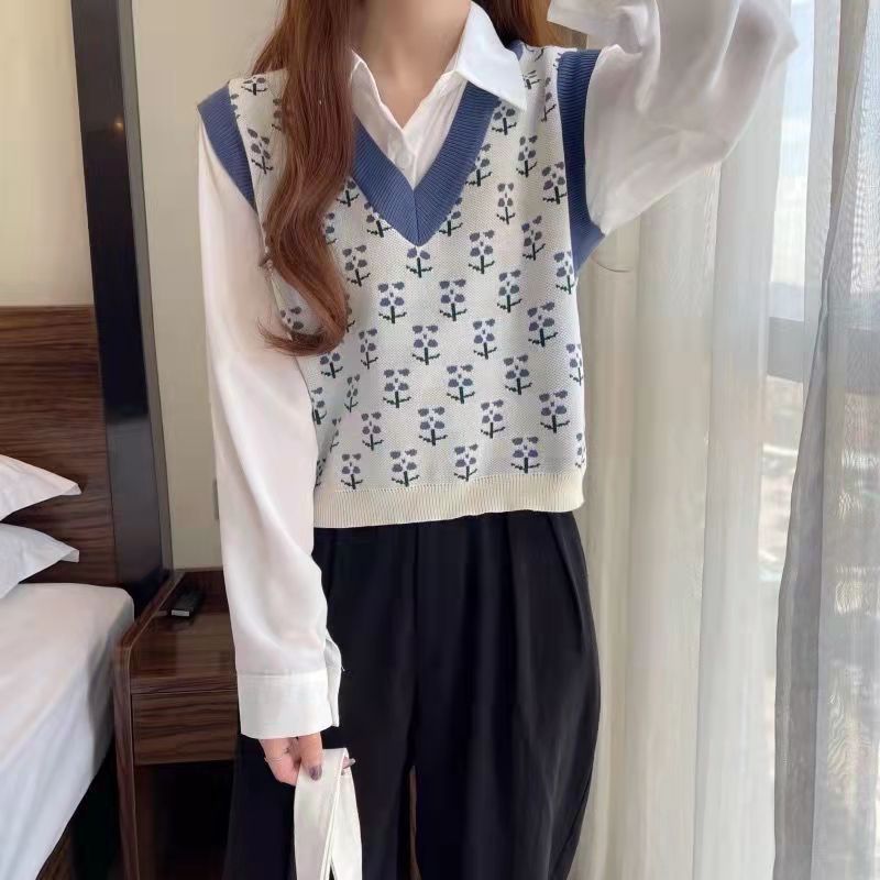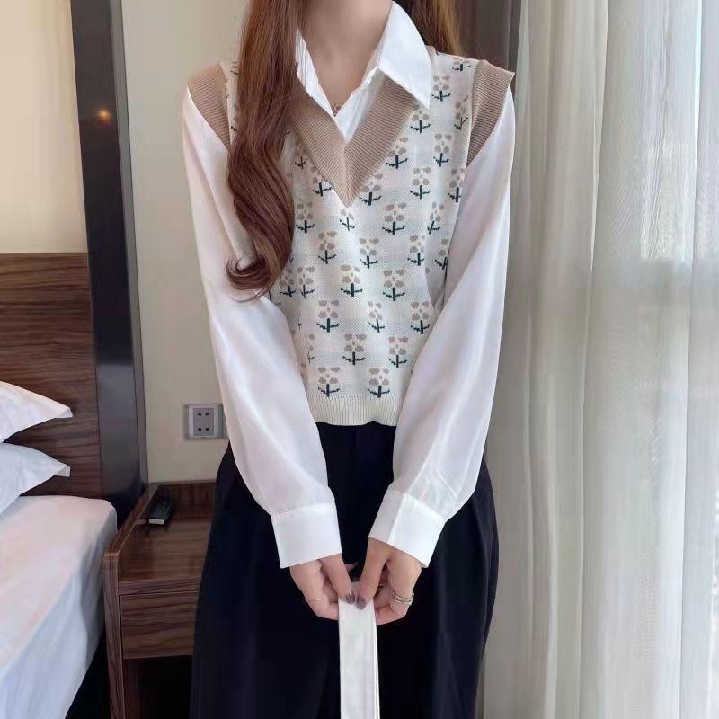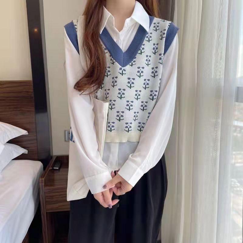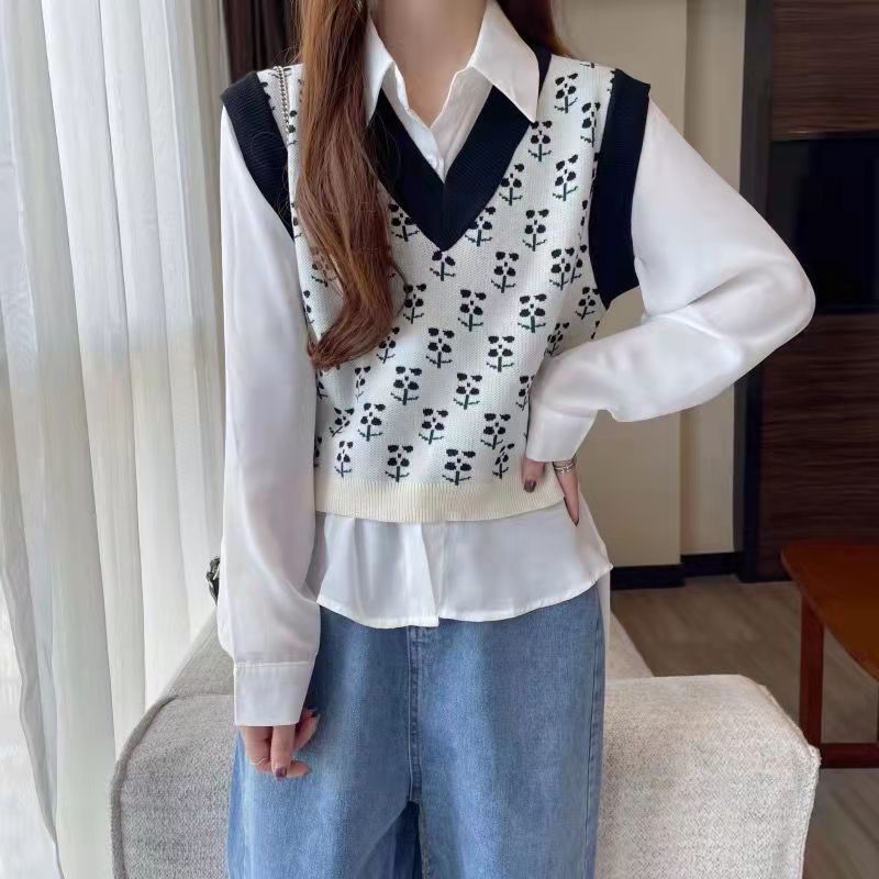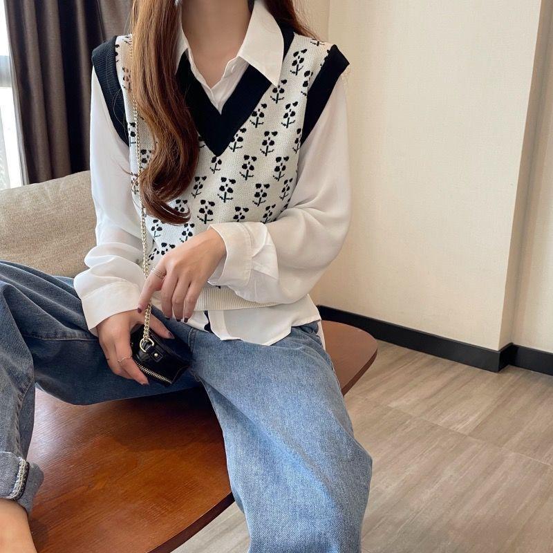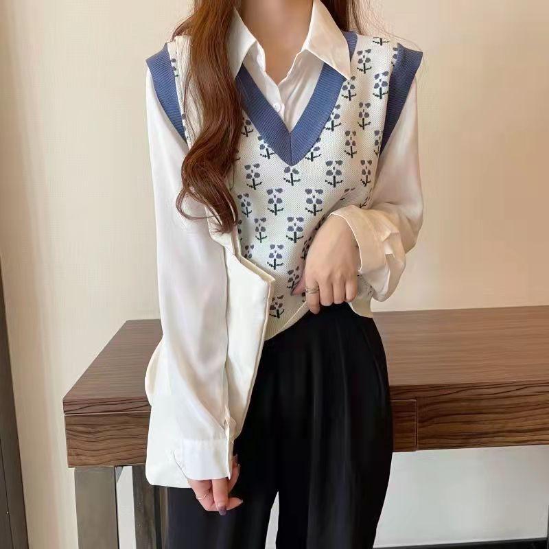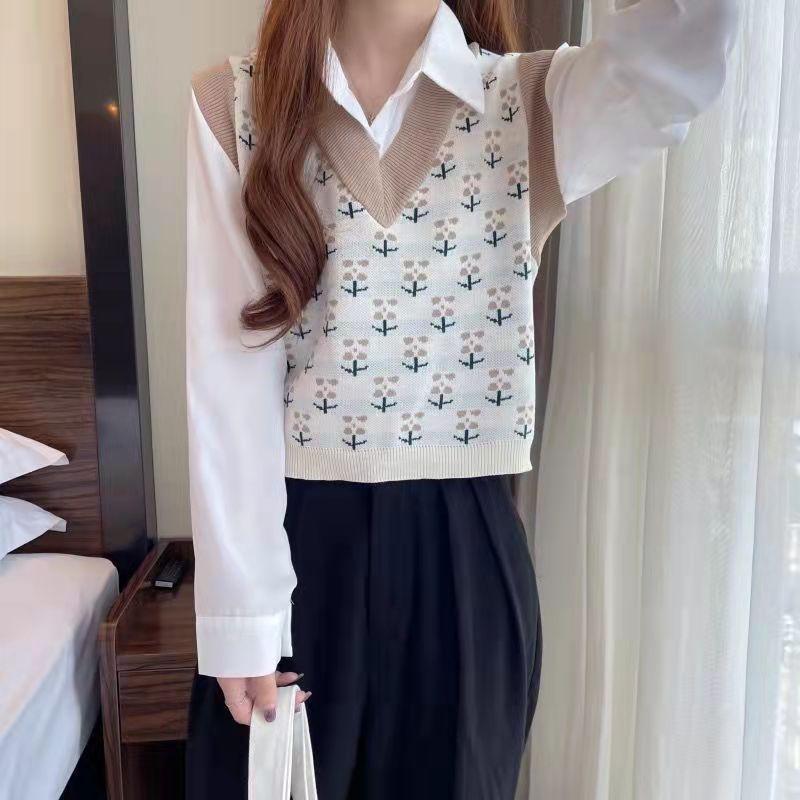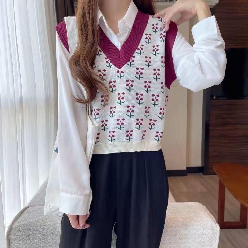 Suéter de Punto Primavera 2024 Más Fácil de Combinar Patrón Jacquard Diseño de Chaleco sin Mangas Chaleco Top Jersey de Mujer
