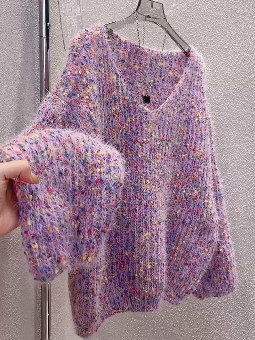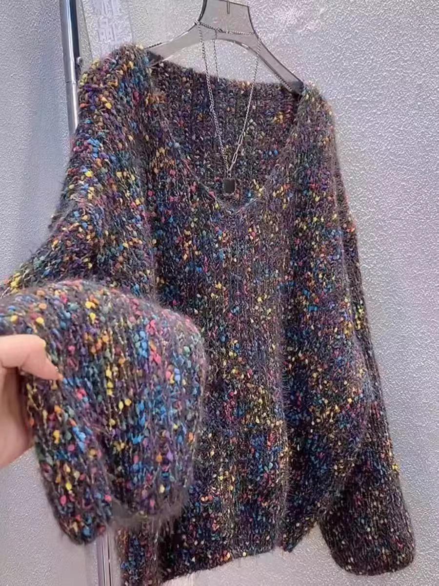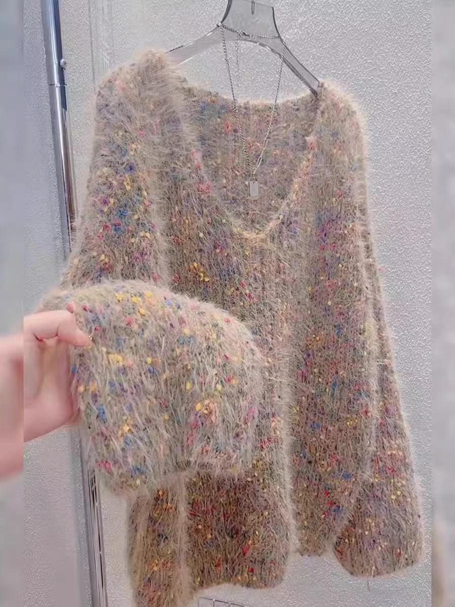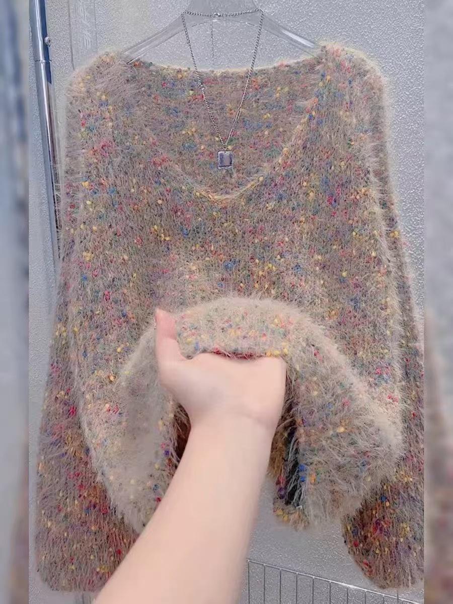 Otoño e Invierno Estilo Suave y Delicado Top de Punto con Cuello en V Suéter 2025 Holgado y Versátil Color Exterior Punto Estilo Relajado