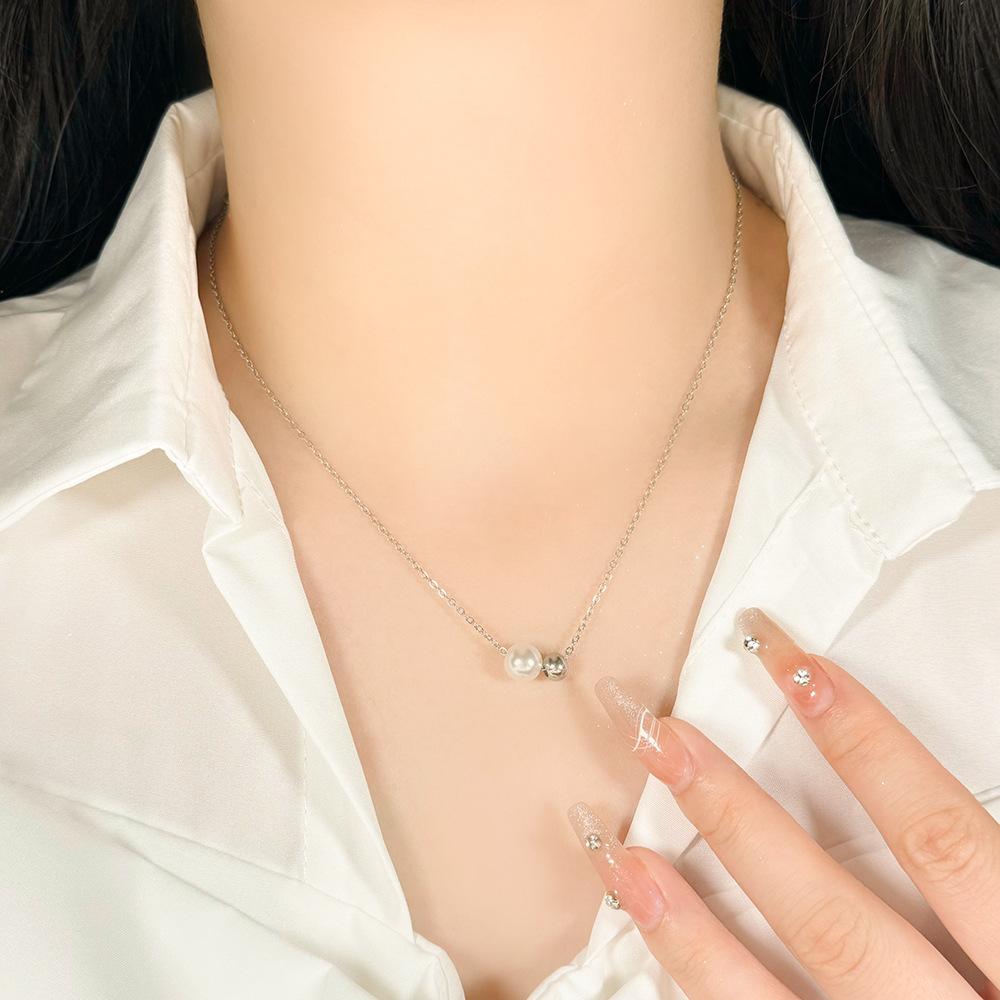 Cadena de clavícula de perlas de imitación simples iguales de Douyin Verano 2025 Collar de cuello versátil para mujer Joyería con colgante