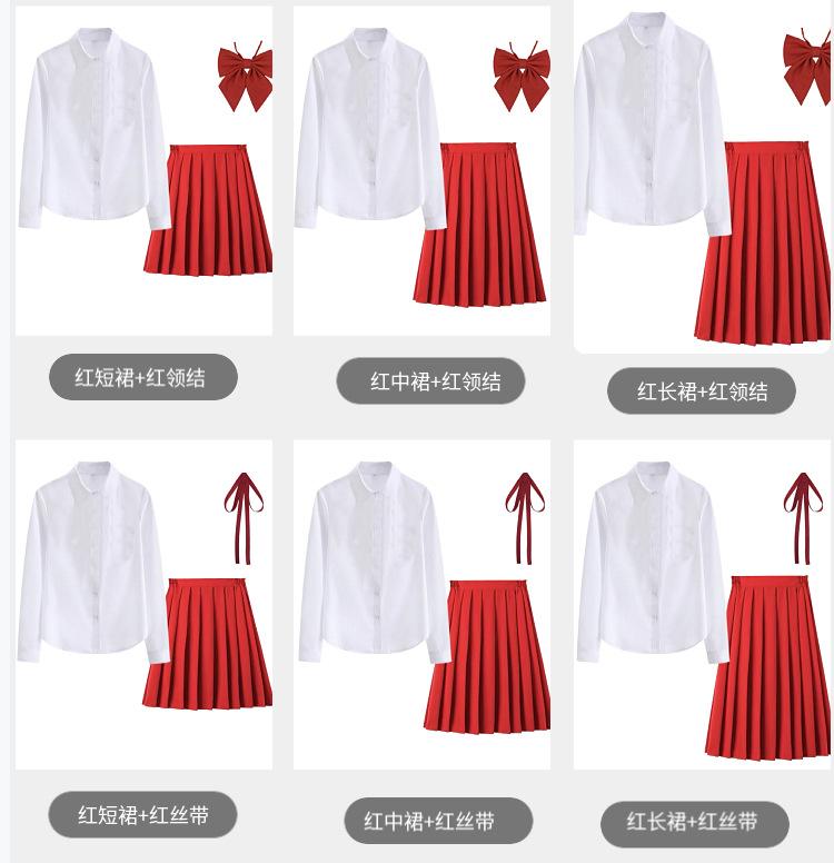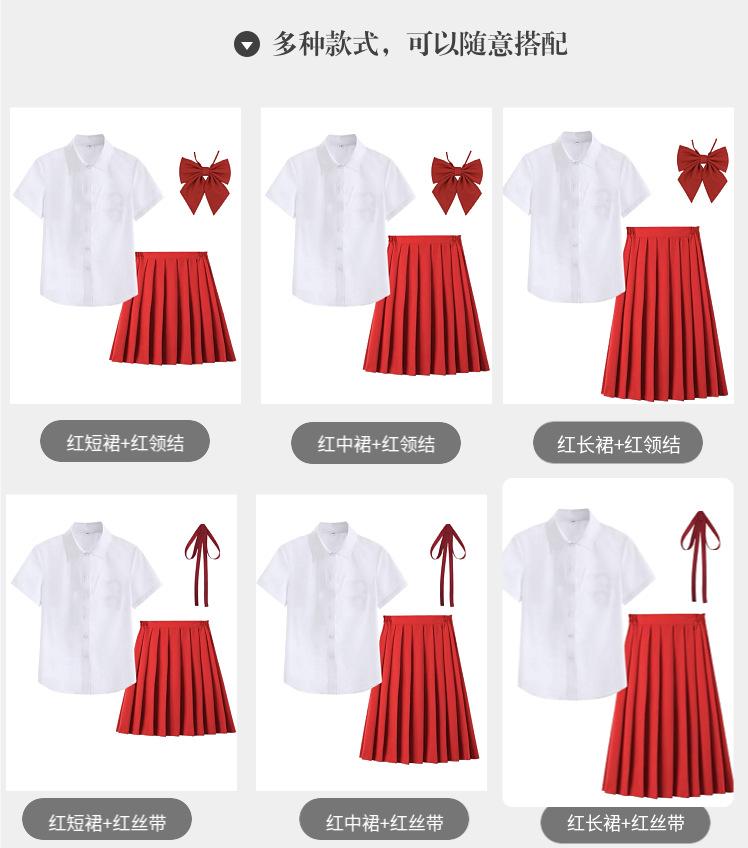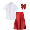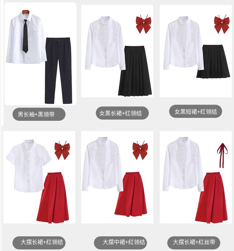 Men's white short-sleeved shirt + black pants + red tie, Women's white long sleeves + red full skirt + red bow...