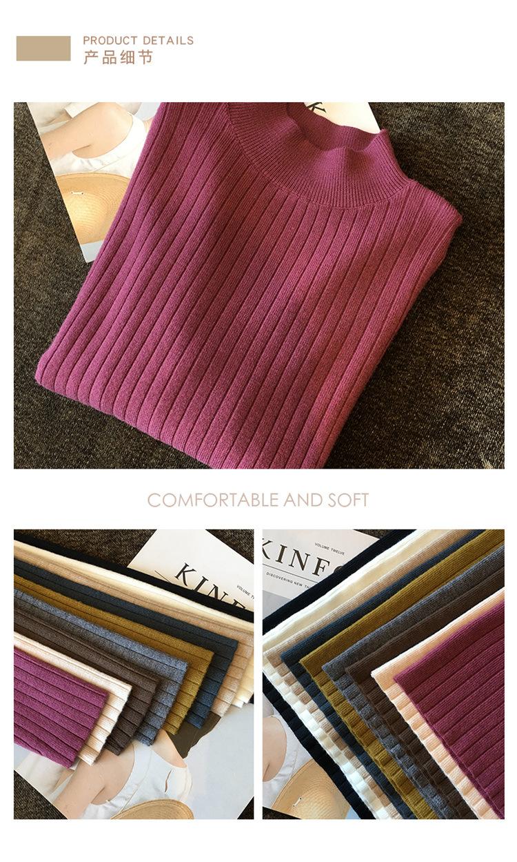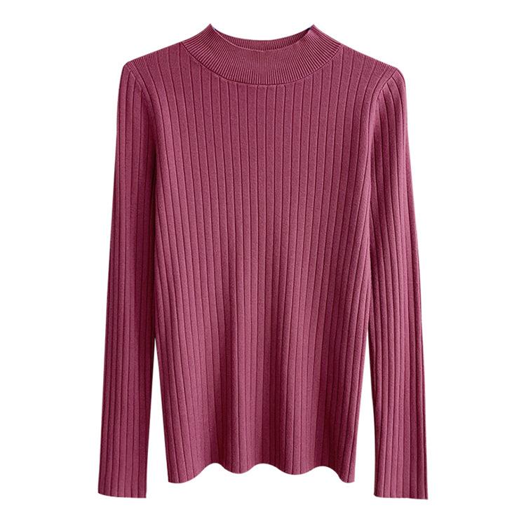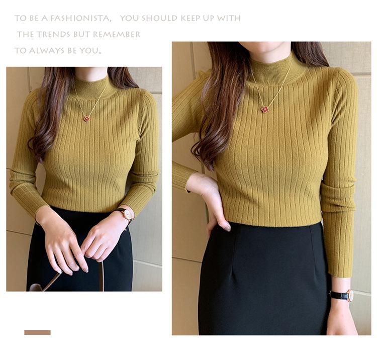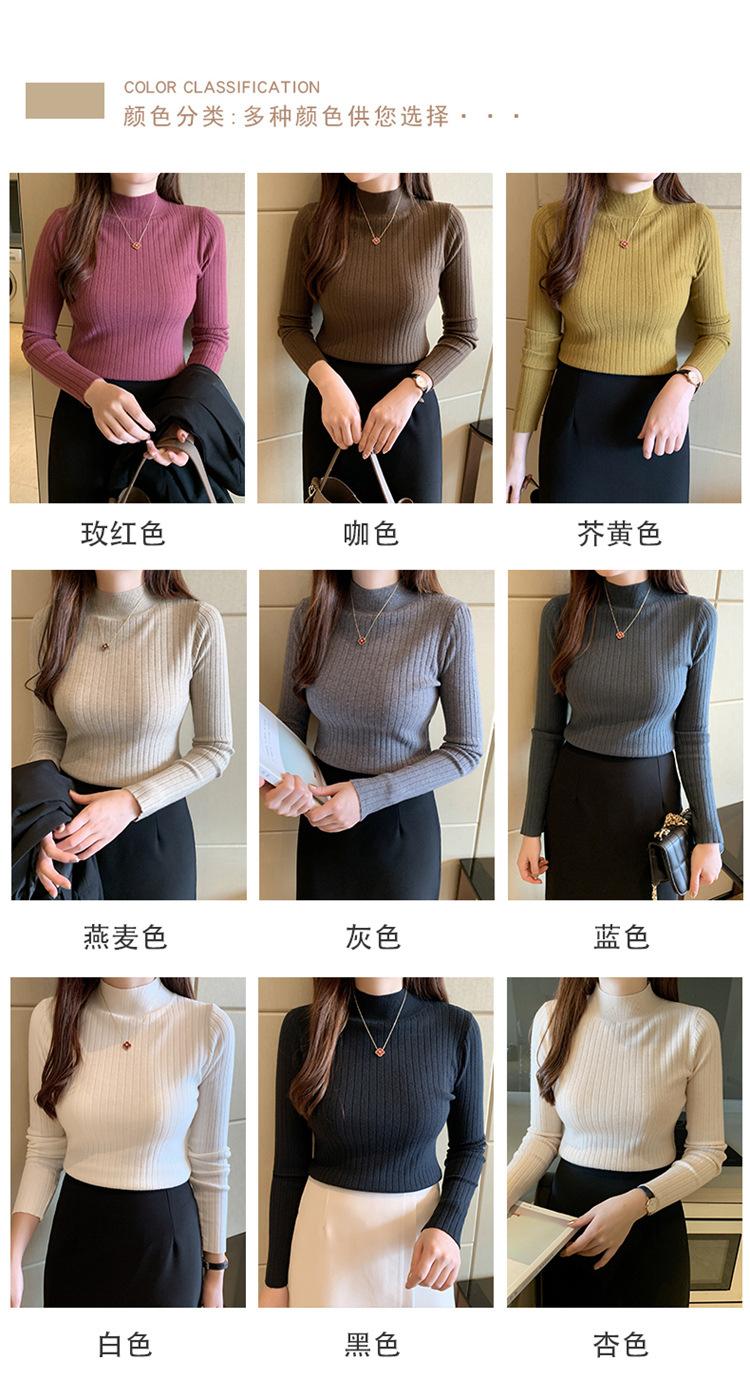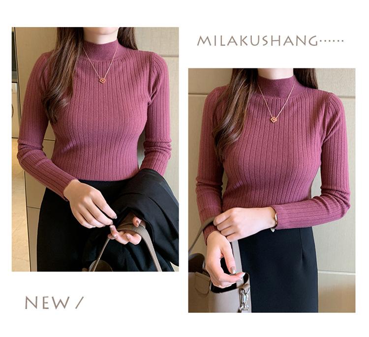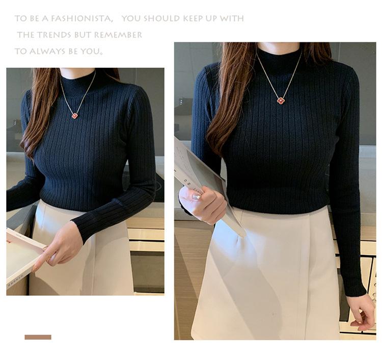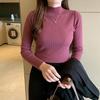 2025 otoño e invierno nuevo estilo suéter corto suéter de manga larga cuello medio alto camisa base top interior delgado para mujer
