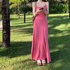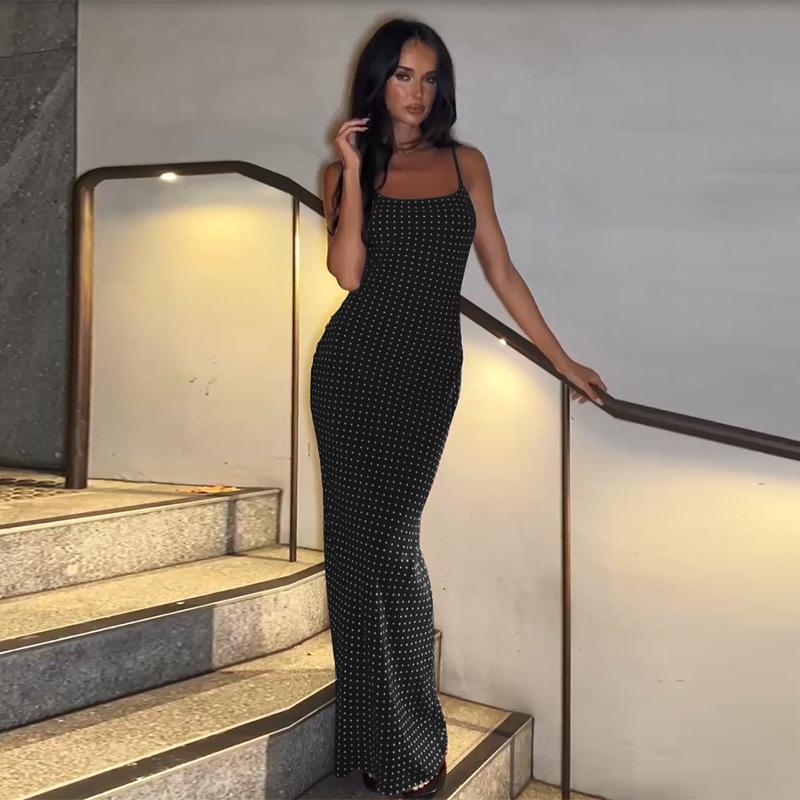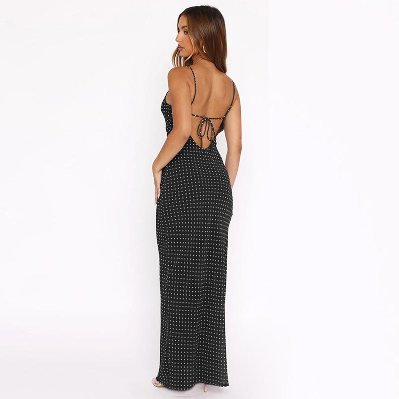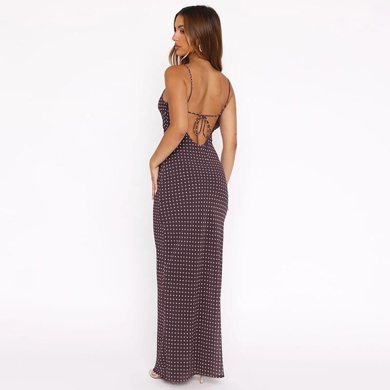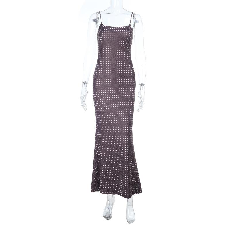Falda Larga de Verano 2025 Europea y Americana, Estilo Femenino, Falda Slim con Tirantes, Vestido Sexy de Lunares