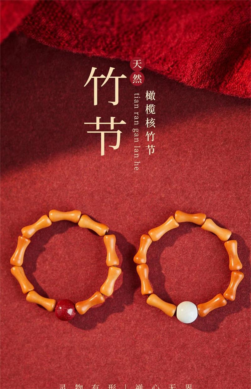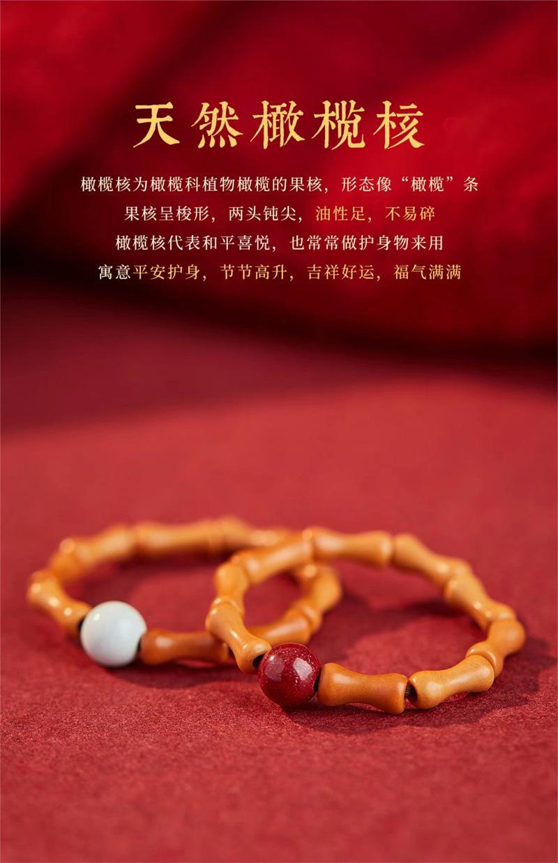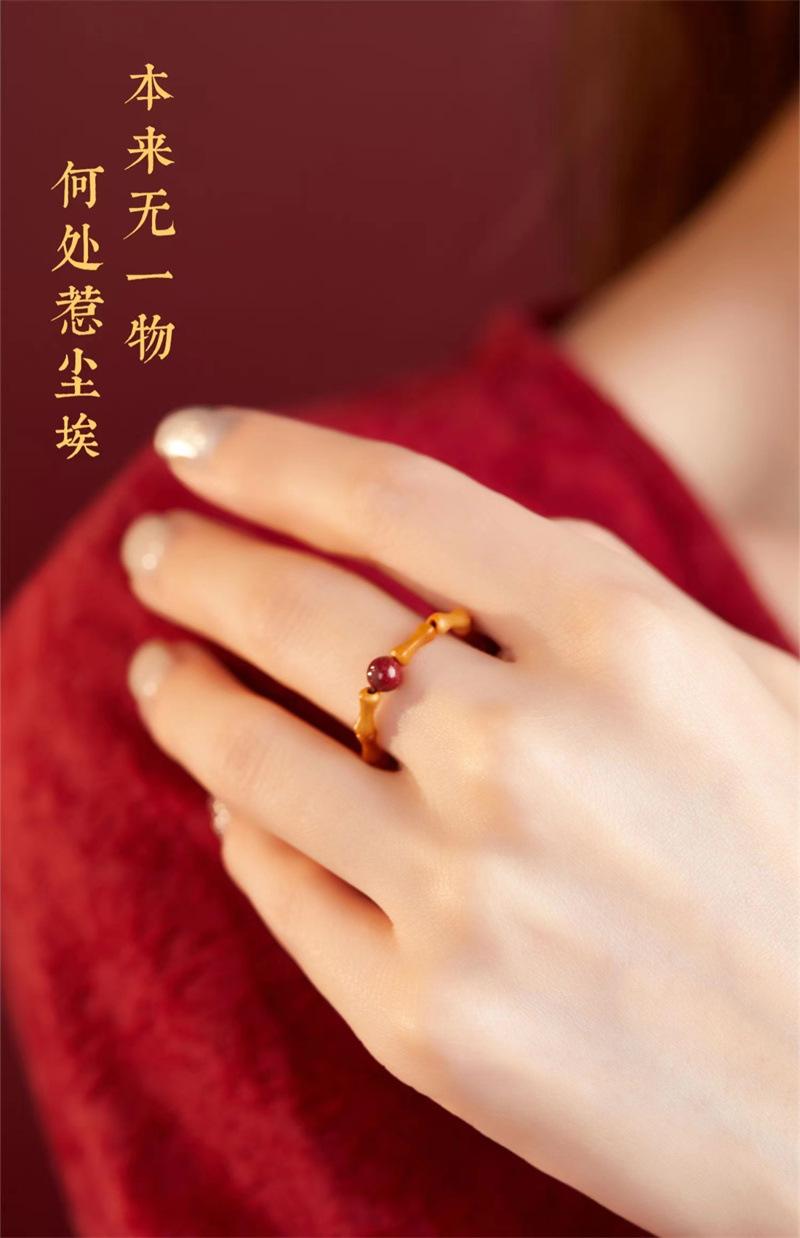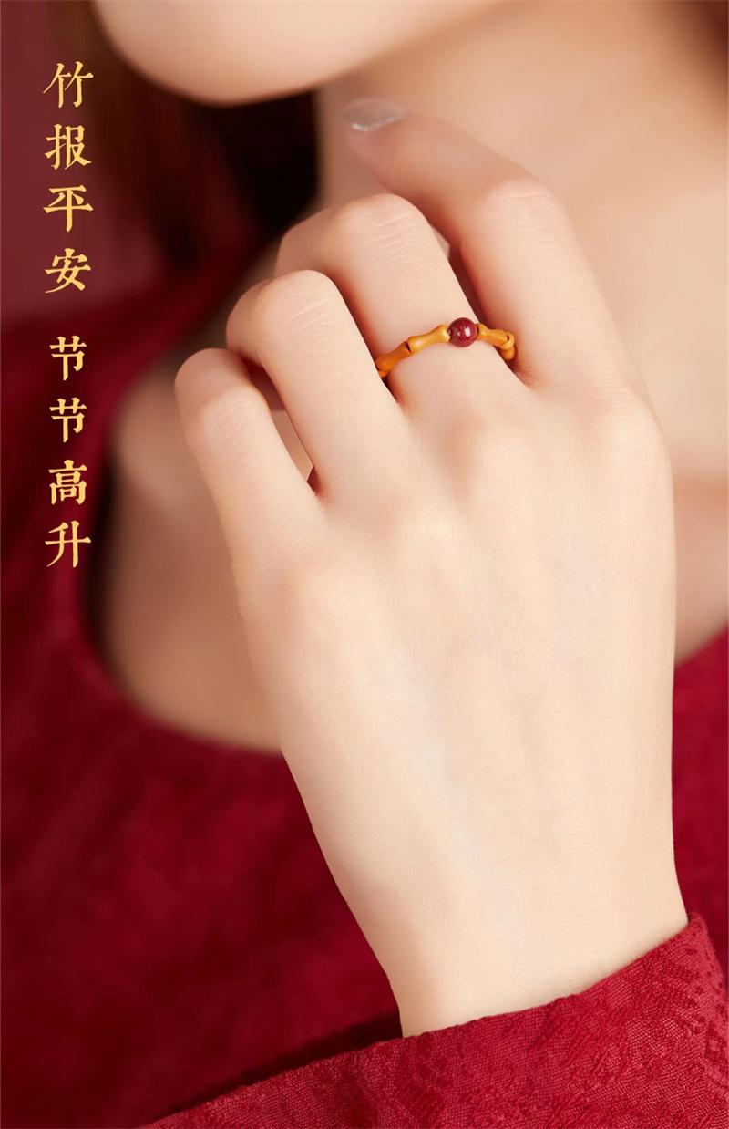Anillo de Nuevo Estilo Chino para Mujer, Diseño Nicho, Anillo Único de Cinabrio del Año del Zodíaco, Anillo de Estilo Antiguo de Nudo de Bambú con Corazón de Oliva para Niñas