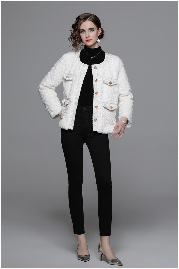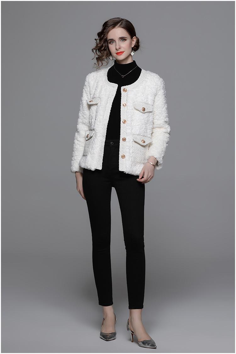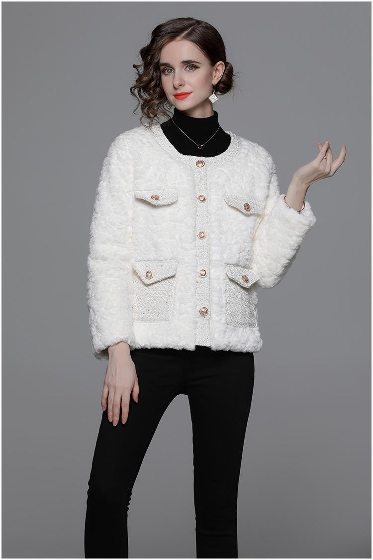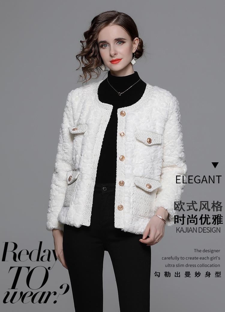 Ropa de mujer de comercio exterior de lana de manga larga 2023 estilo elegante de socialité hebilla metálica abrigo estilo Chanel de imitación de lana de cordero