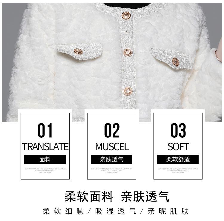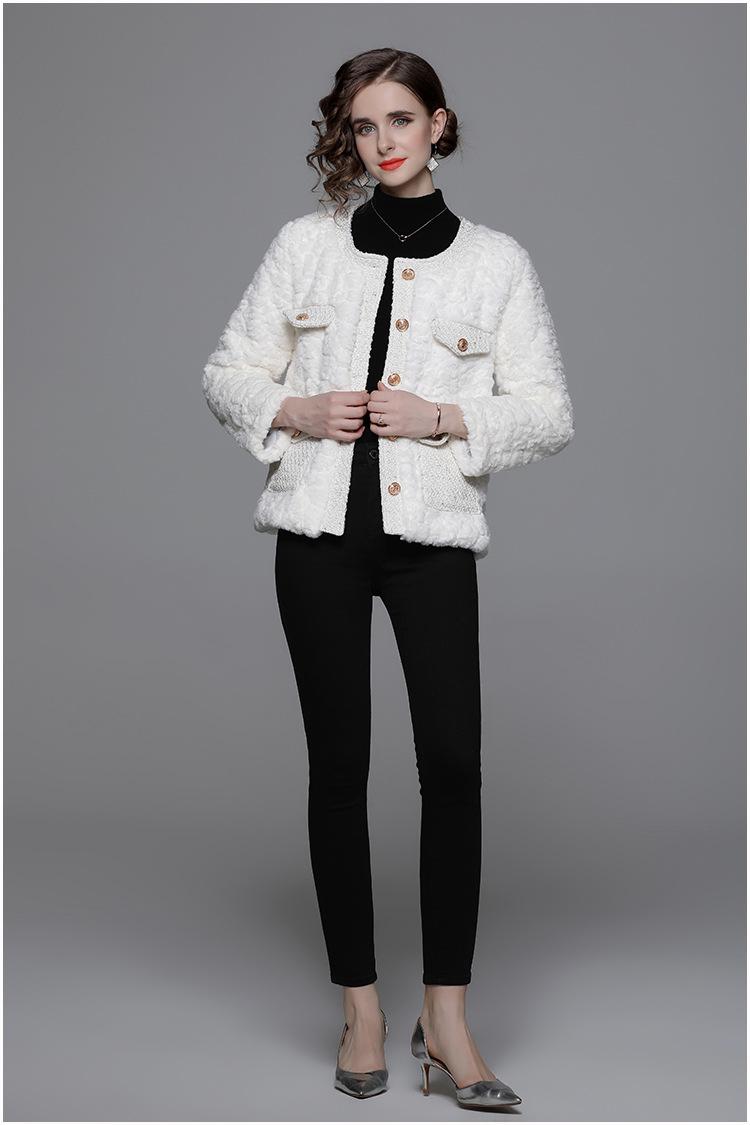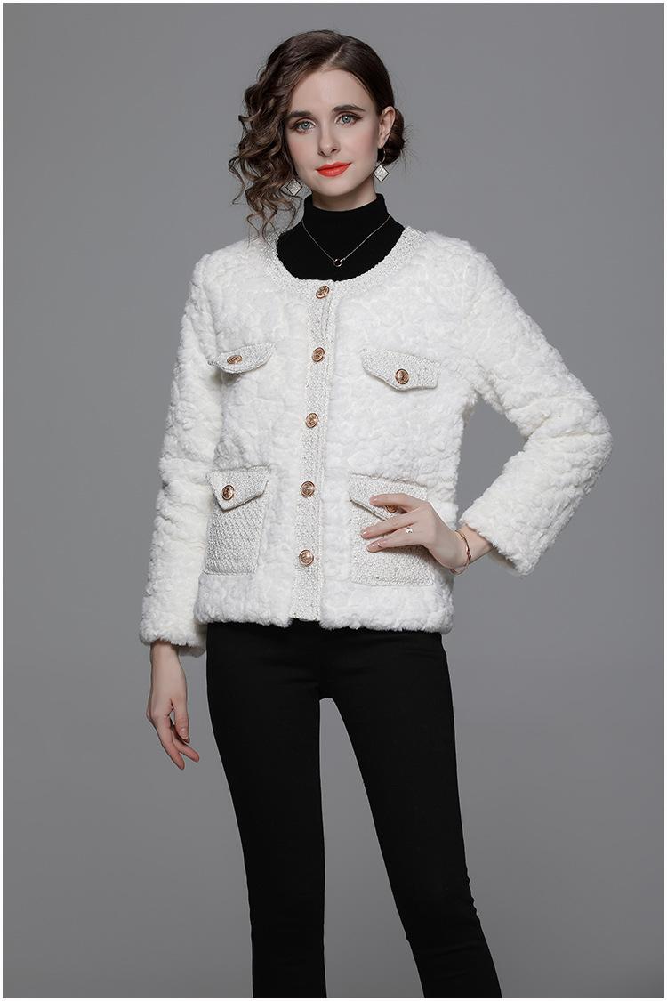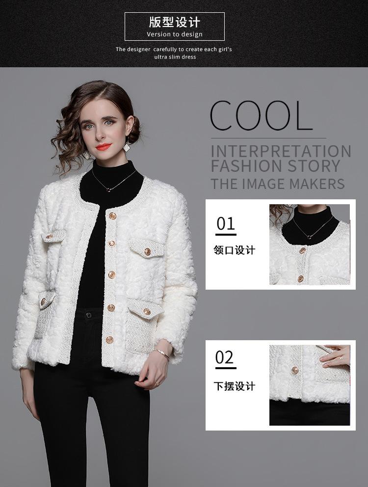 Ropa de mujer de comercio exterior de lana de manga larga 2023 estilo elegante de socialité hebilla metálica abrigo estilo Chanel de imitación de lana de cordero