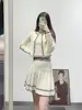 Traje de falda adelgazante de cintura alta Primavera Nuevo para mujer Estilo francés Elegante Ajustado Delgado Cárdigan de punto fino con tirantes
