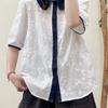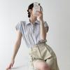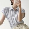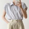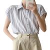 2025 Nuevo Estilo de Verano Socialité Retro Rayas Holgado Adelgazante Camiseta de Manga Corta Camiseta de Algodón de Manga Raglán para Mujer