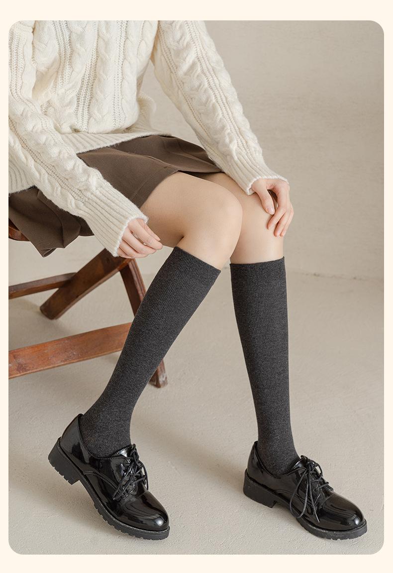 Calcetines negros por encima de la rodilla para mujer en otoño e invierno Algodón Cálidos Presión Aspecto Adelgazante Calcetines hasta la pantorrilla Color Puro Deportes y Ocio Ins Calcetines hasta media pantorrilla