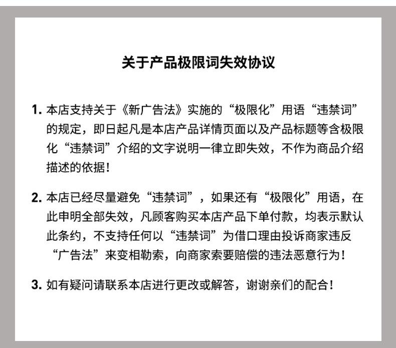Consejos de compra: Los precios de nuestros productos no incluyen puntos de impuestos. Los puntos de impuestos se agregarán al facturar. Por favor, contacte con el servicio al cliente para más detalles. Algunos productos y áreas remotas (como Xinjiang, Tíbet, Hong Kong, Macao, Taiwán, etc.) no se pueden enviar de forma gratuita. Por favor, pregunte al servicio al cliente para modificar la tarifa de envío para más detalles. Algunos productos son de preventa y el precio de la página es un depósito prepagado. Por favor, contacte con el servicio al cliente para confirmar antes de realizar un pedido. Algunos estilos de productos pueden ser ligeramente diferentes de las imágenes de la página. Los productos personalizados no son reembolsables ni cambiables. Debido a que nuestra tienda no admite siete días sin motivo, por favor confirme las especificaciones y los estilos con el servicio al cliente antes de realizar un pedido para evitar malentendidos. ¡Disculpe las molestias ocasionadas!