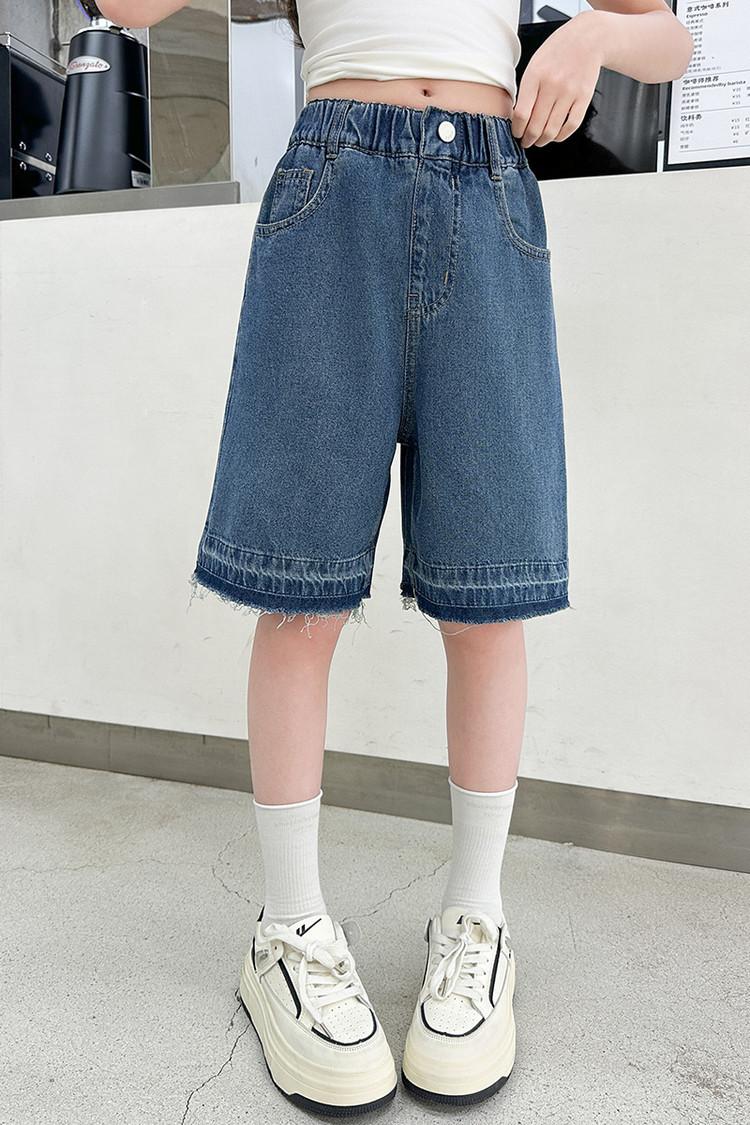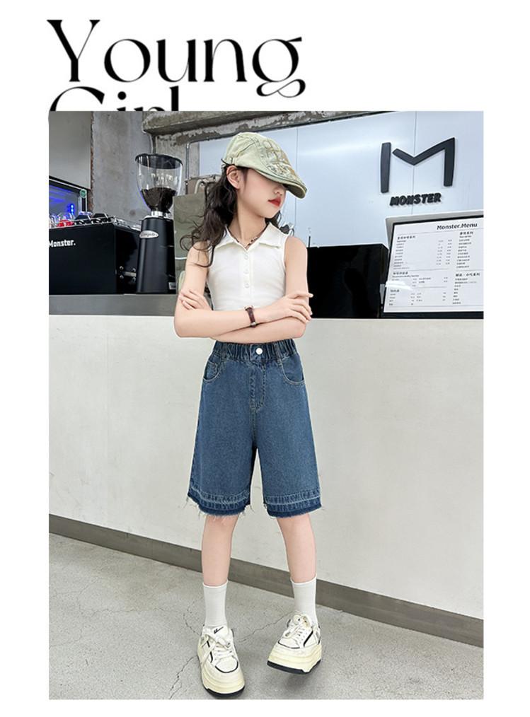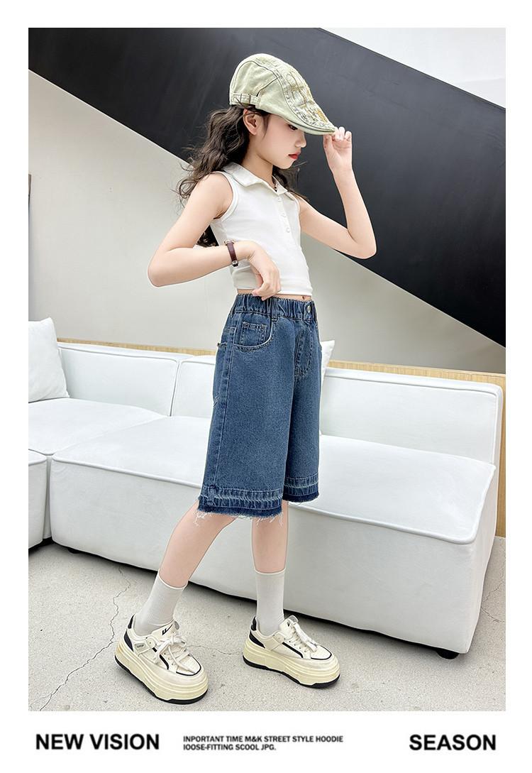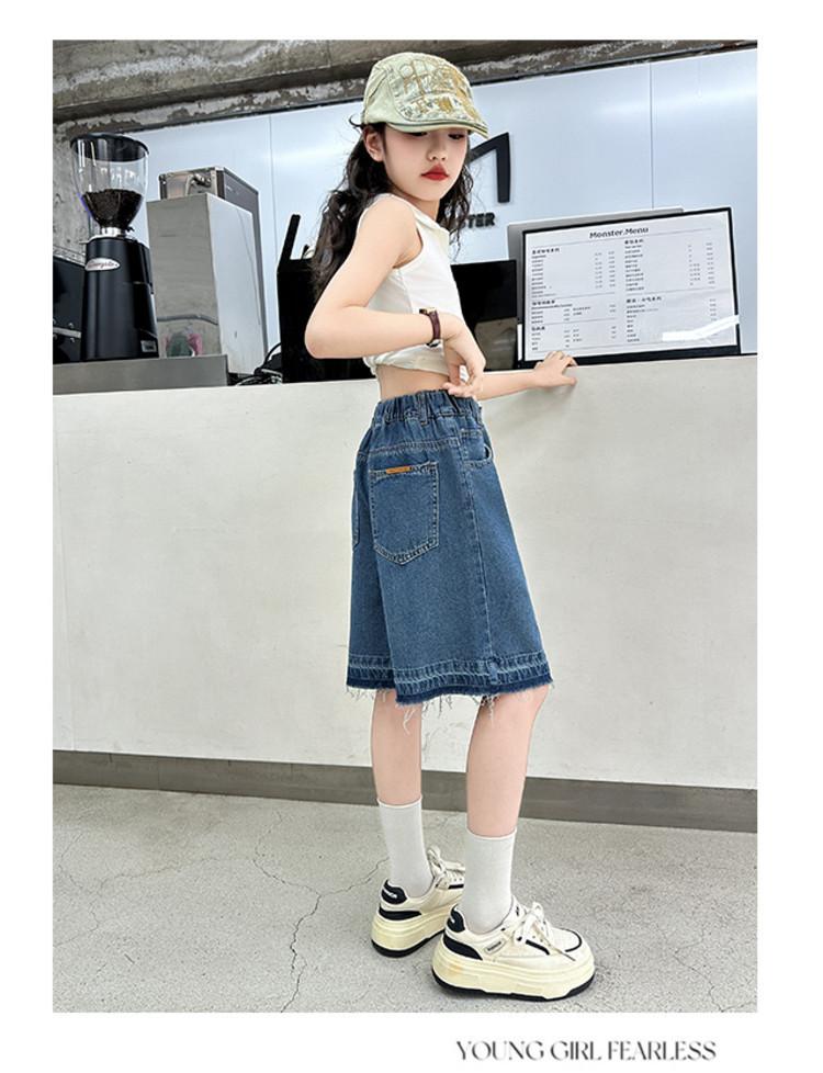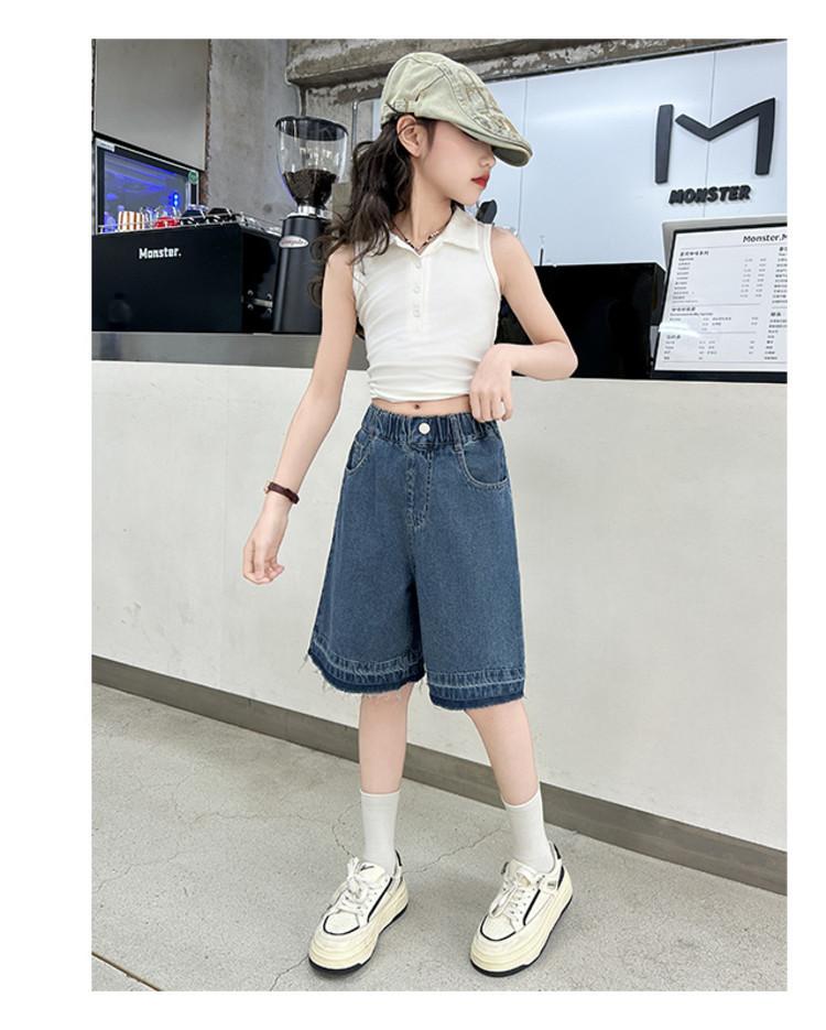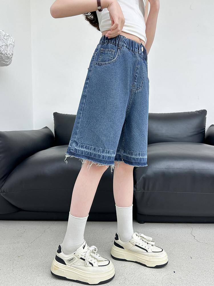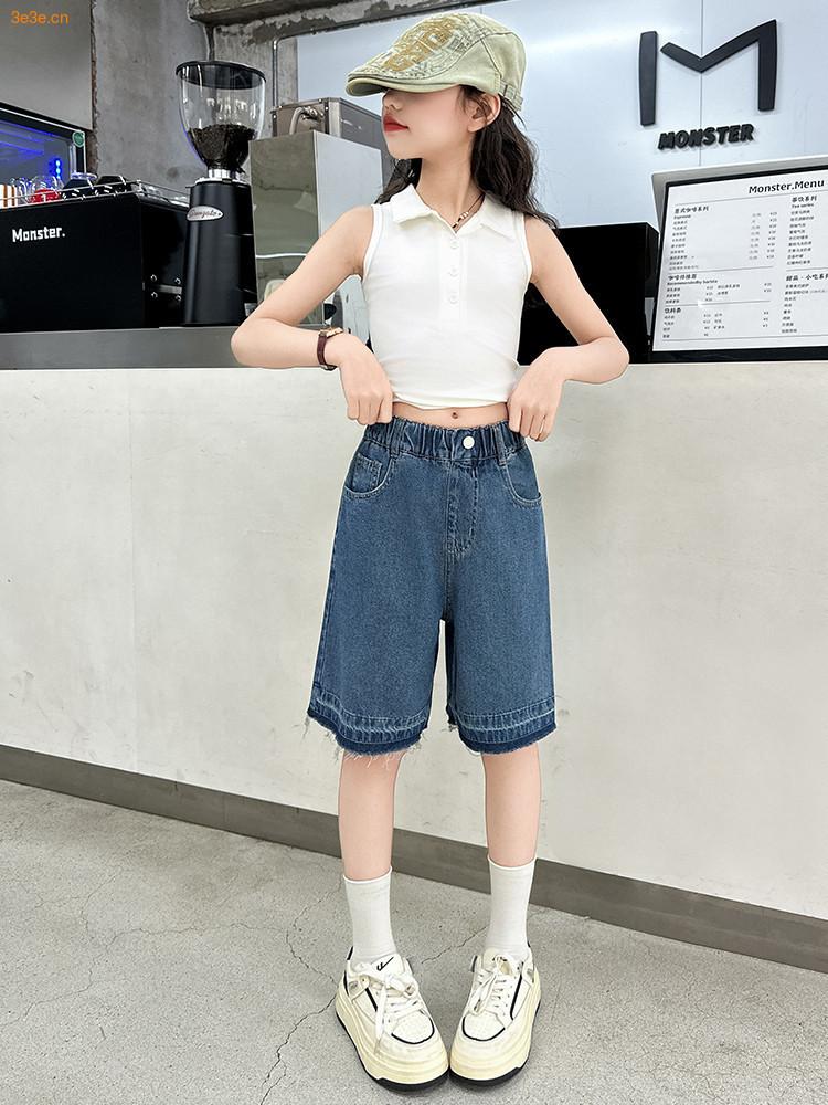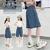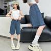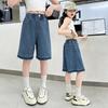 Shorts de Mezclilla para Niñas Verano 2025 Nuevos Pantalones Elegantes para Niños Verano Delgados Sueltos Shorts de Largo Medio para Niños Mayores