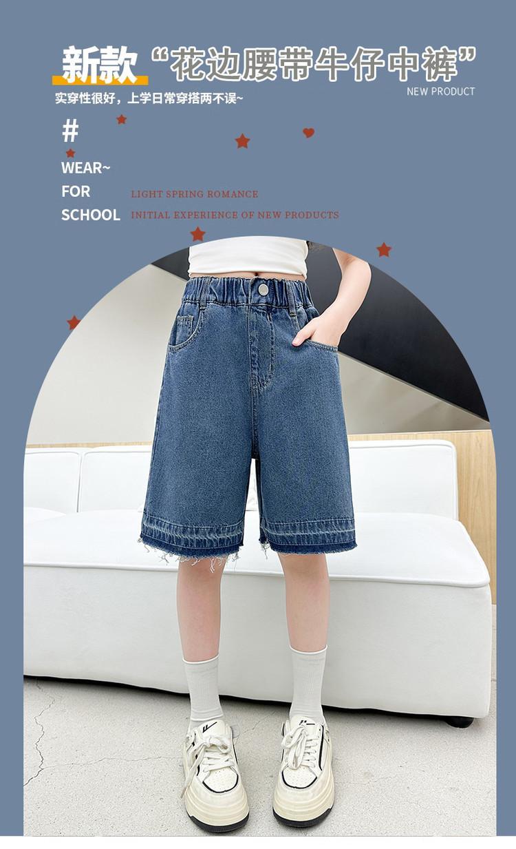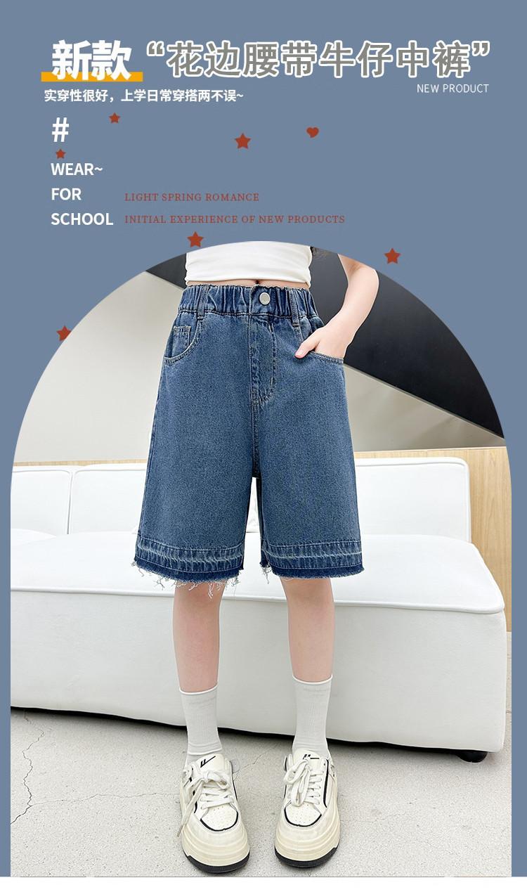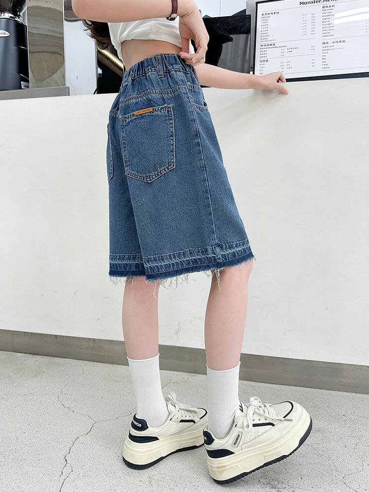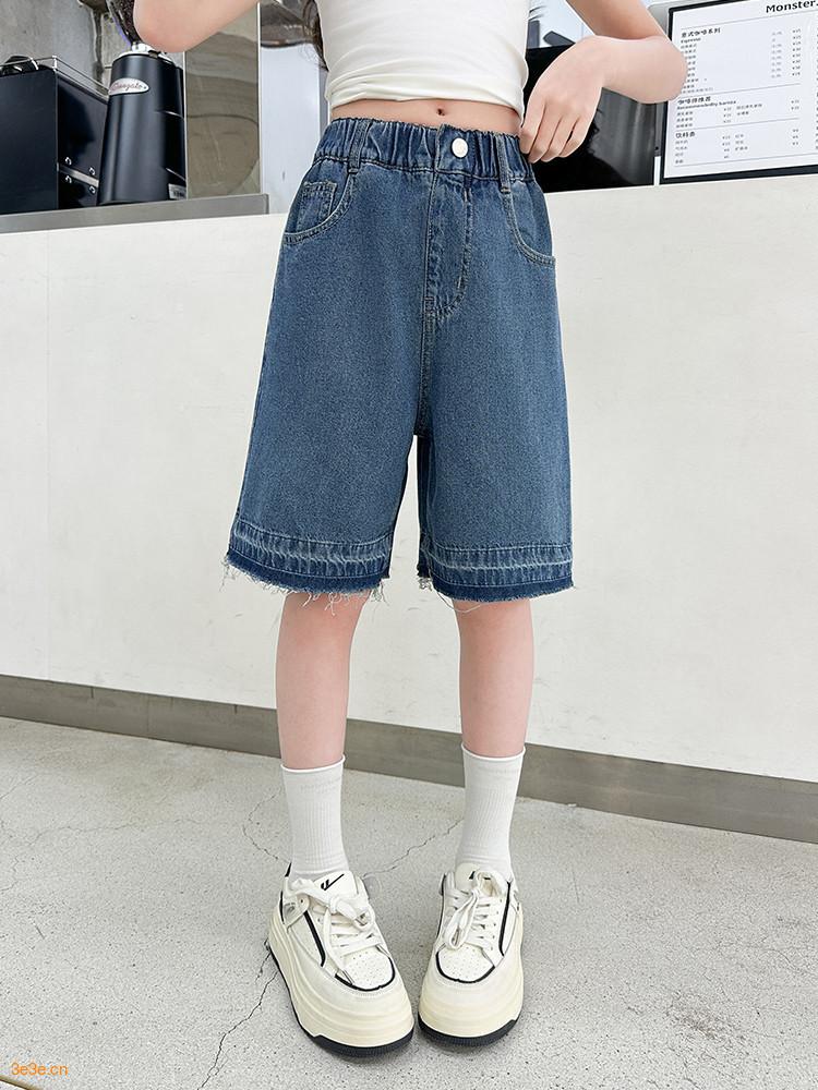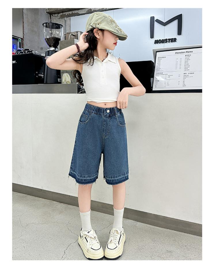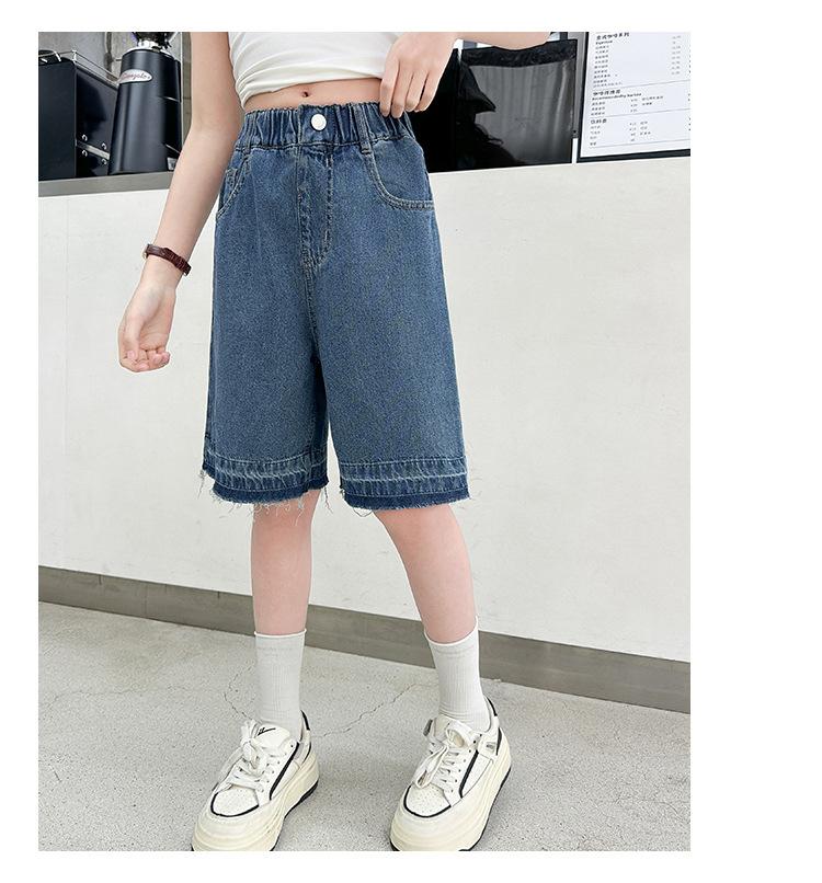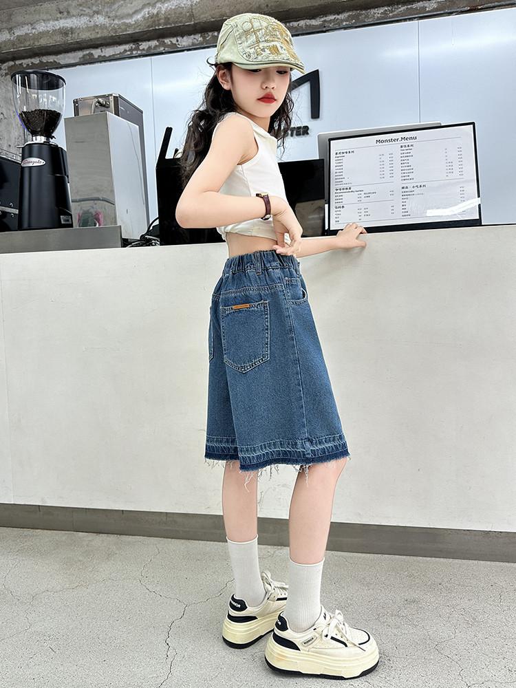 Shorts de Mezclilla para Niñas Verano 2025 Nuevos Pantalones Elegantes para Niños Verano Delgados Sueltos Shorts de Largo Medio para Niños Mayores