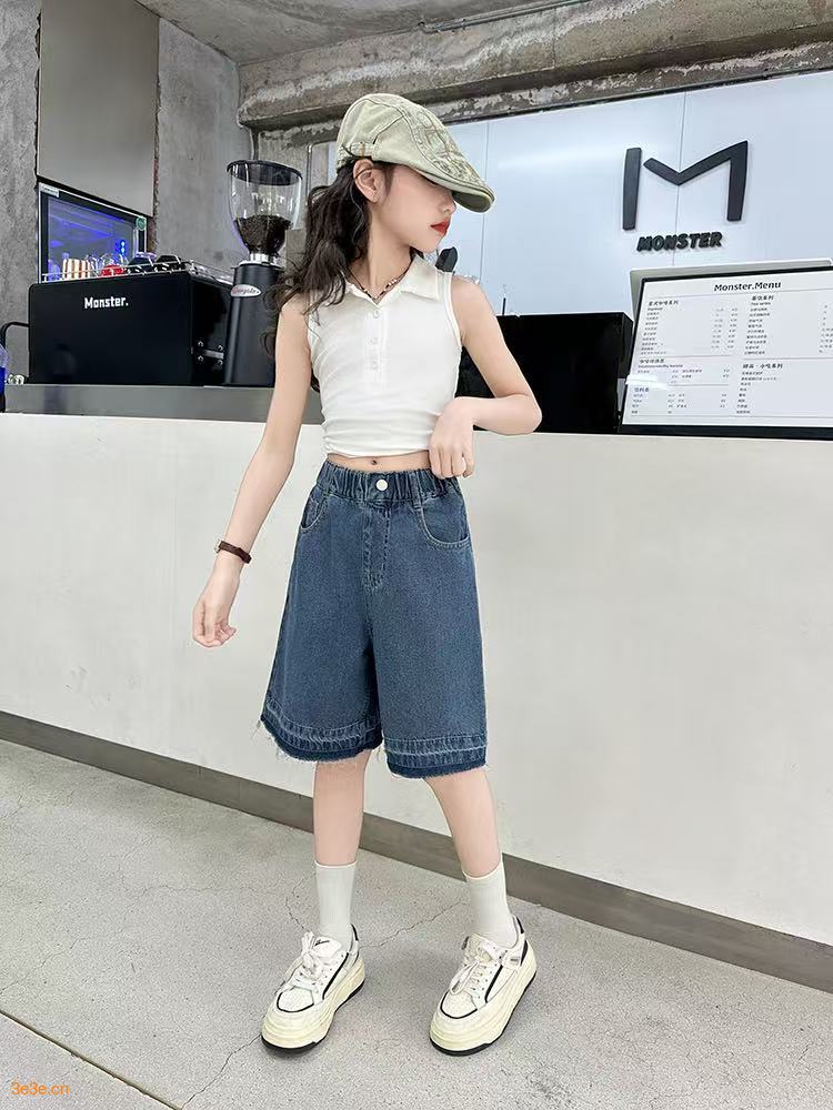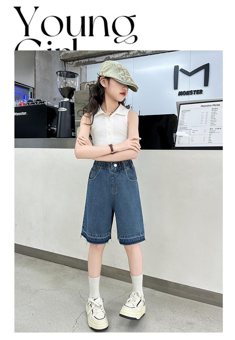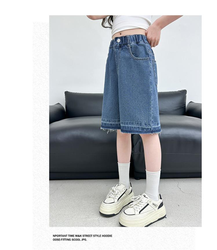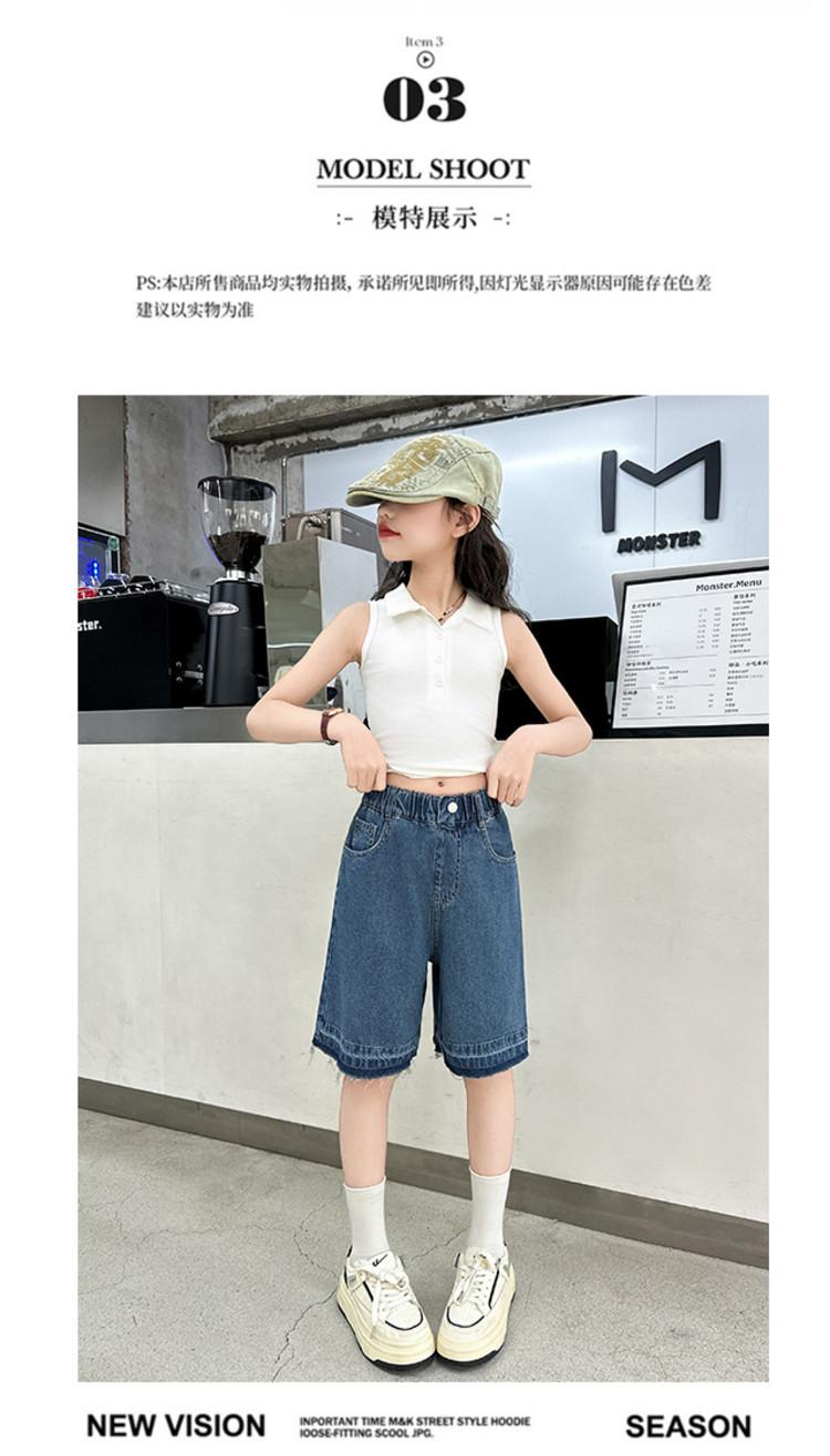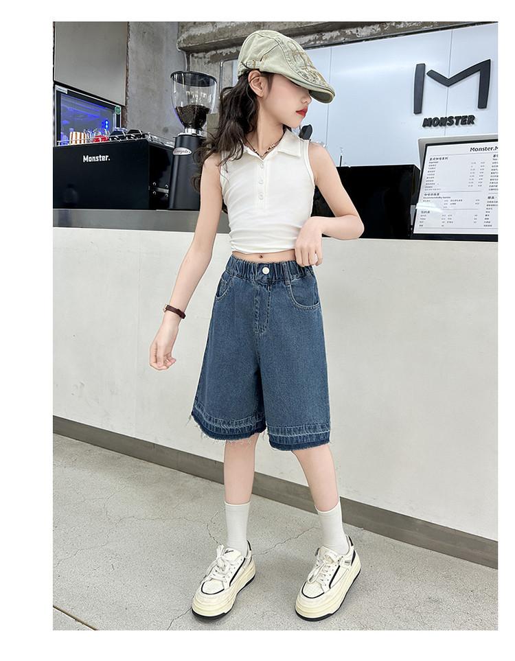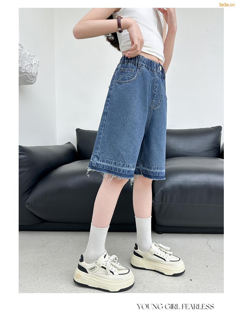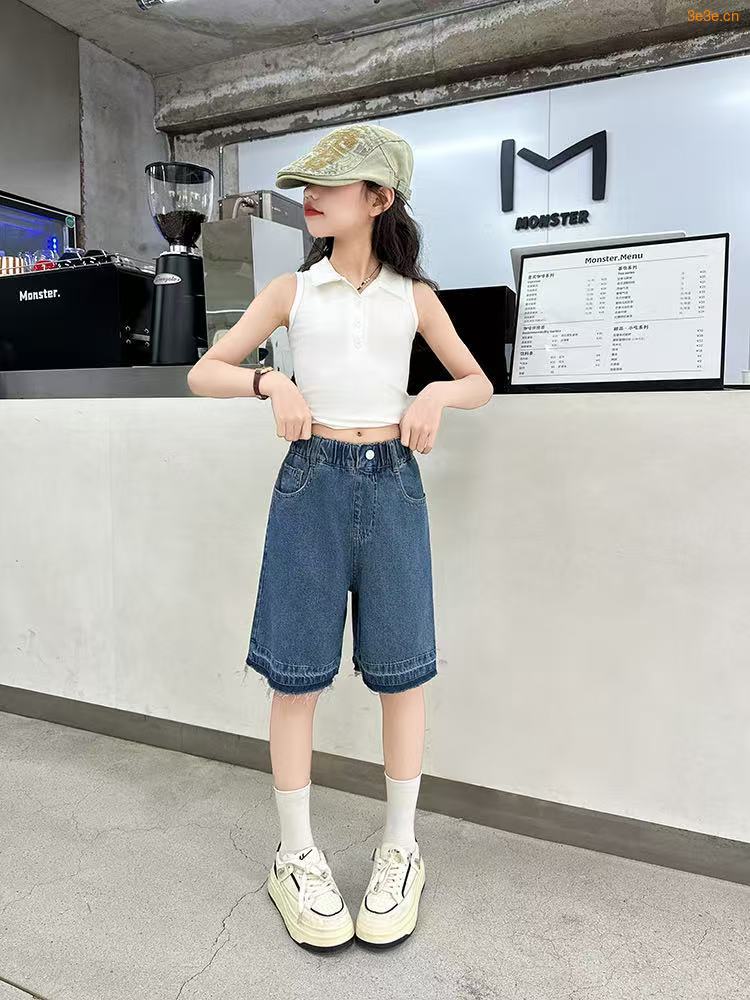 Shorts de Mezclilla para Niñas Verano 2025 Nuevos Pantalones Elegantes para Niños Verano Delgados Sueltos Shorts de Largo Medio para Niños Mayores