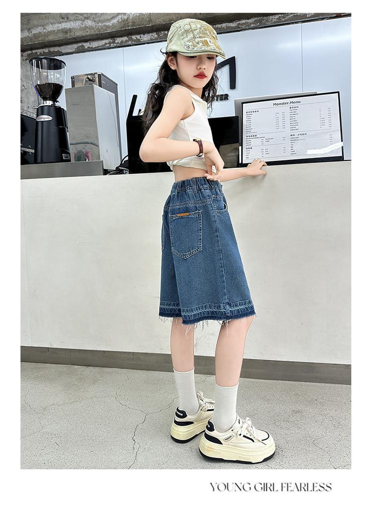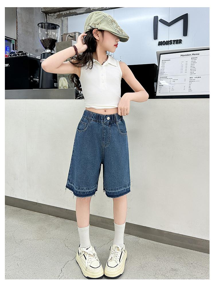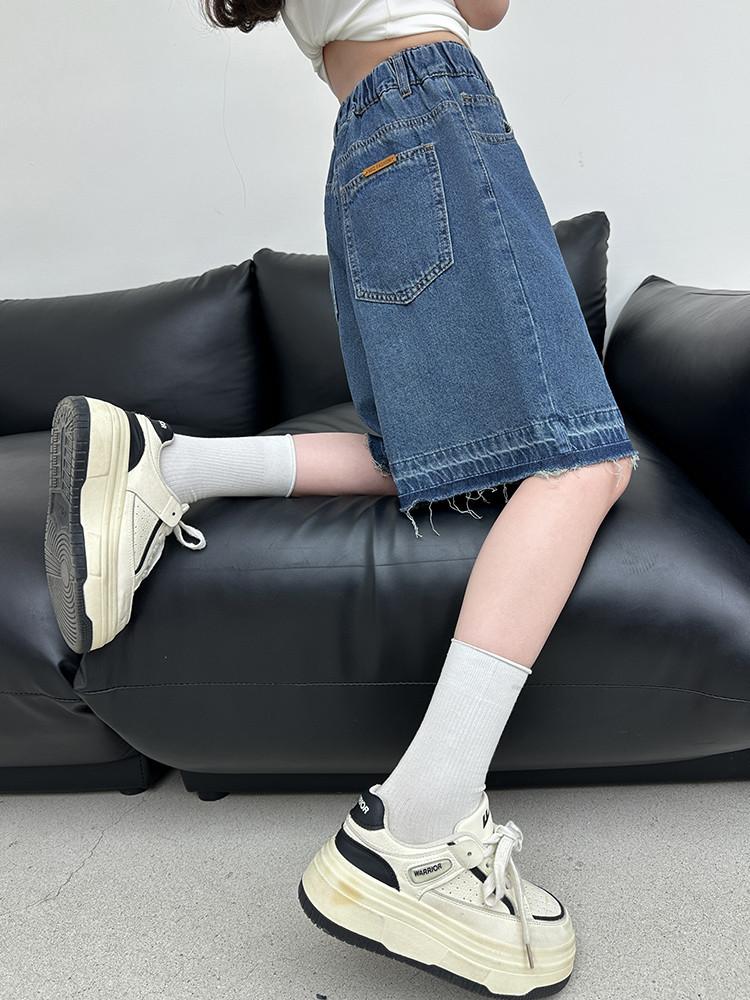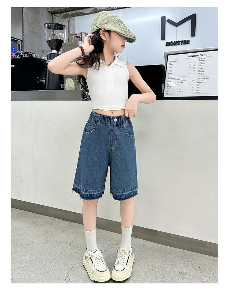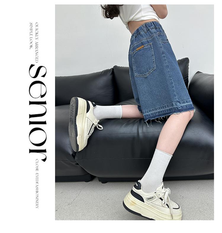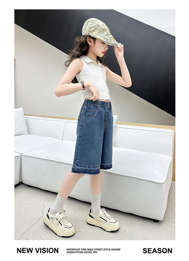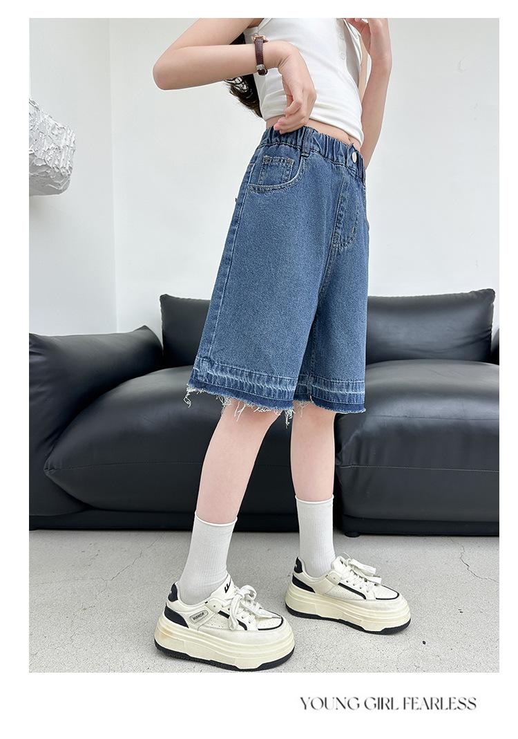 Shorts de Mezclilla para Niñas Verano 2025 Nuevos Pantalones Elegantes para Niños Verano Delgados Sueltos Shorts de Largo Medio para Niños Mayores