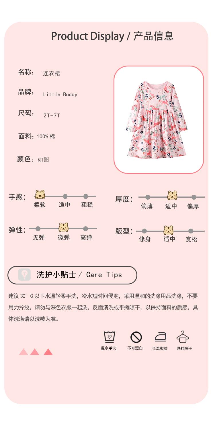 Vestido de manga larga para niños Littlebuddy de primavera y otoño estilo europeo y americano, vestido de princesa, vestido de una pieza, dropshipping