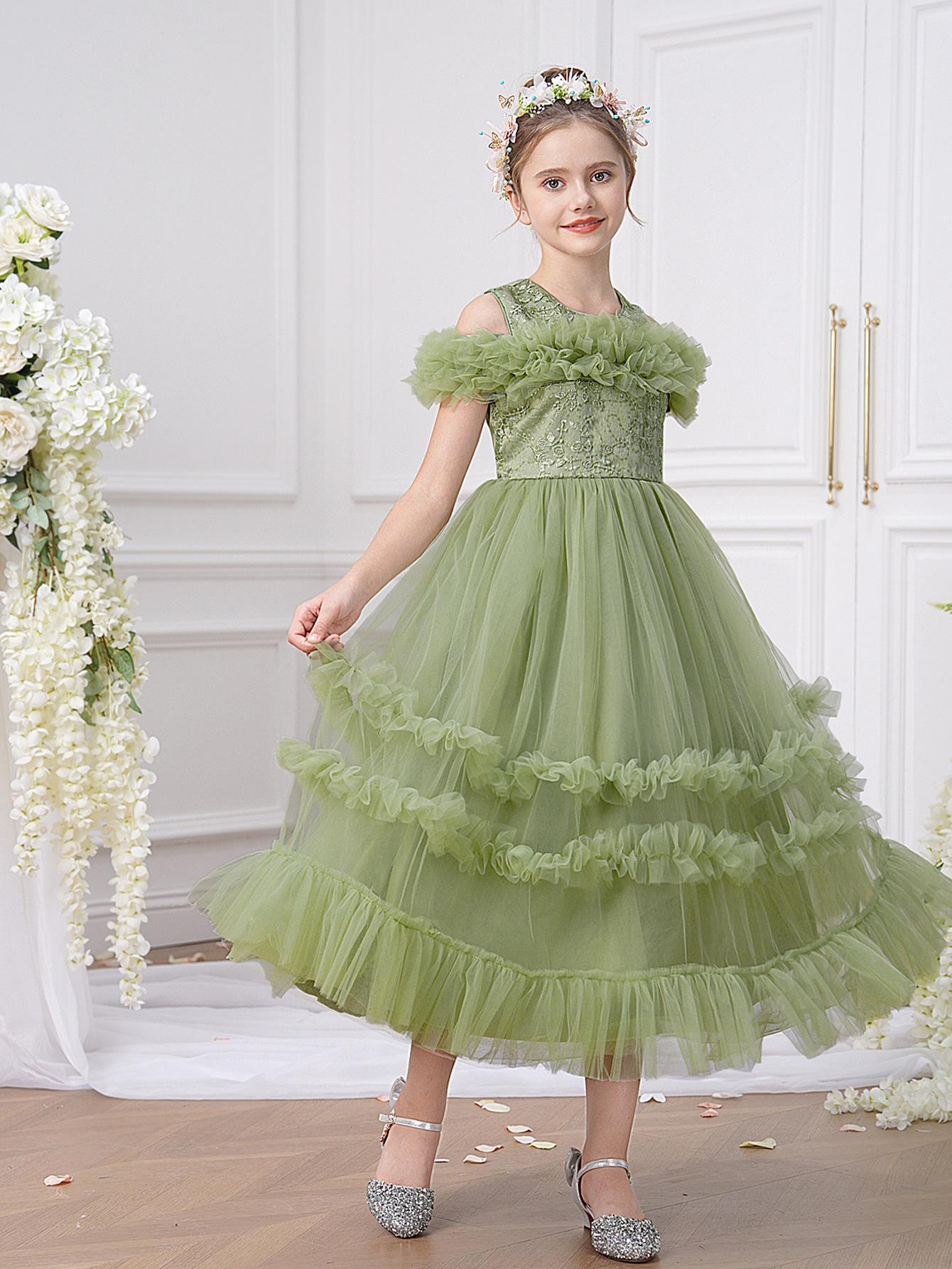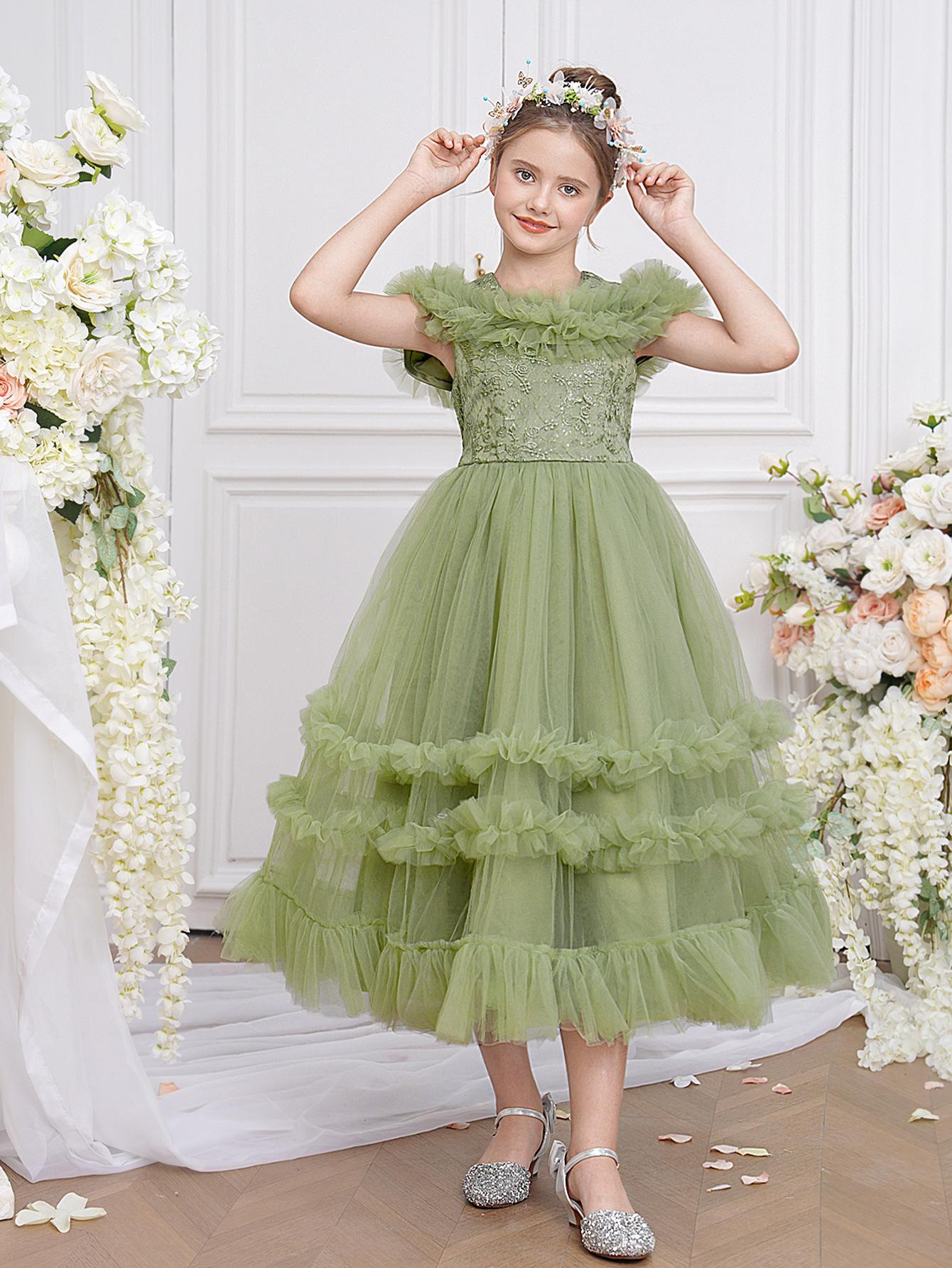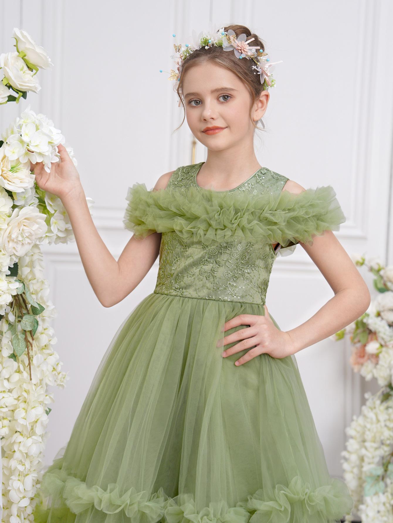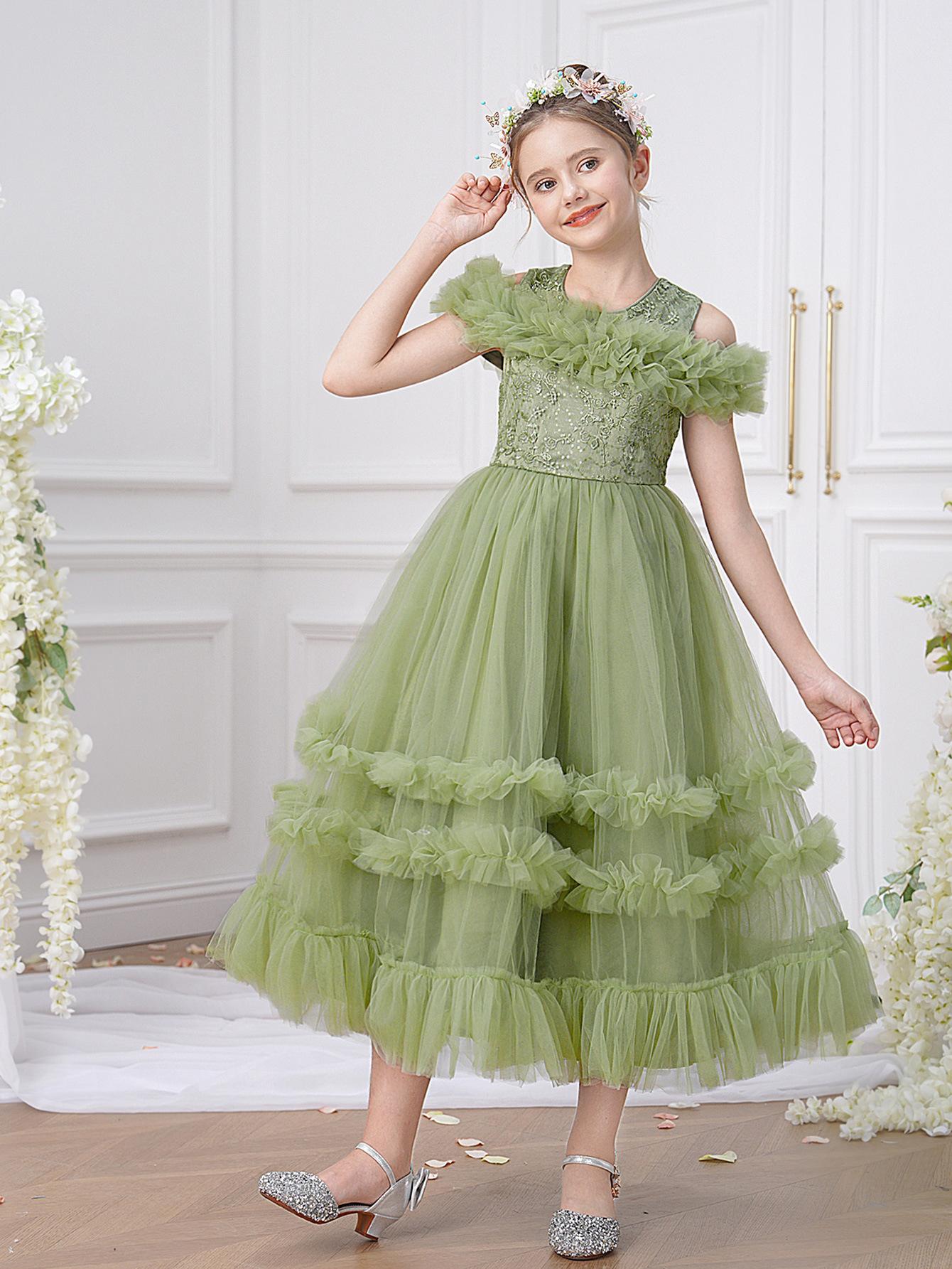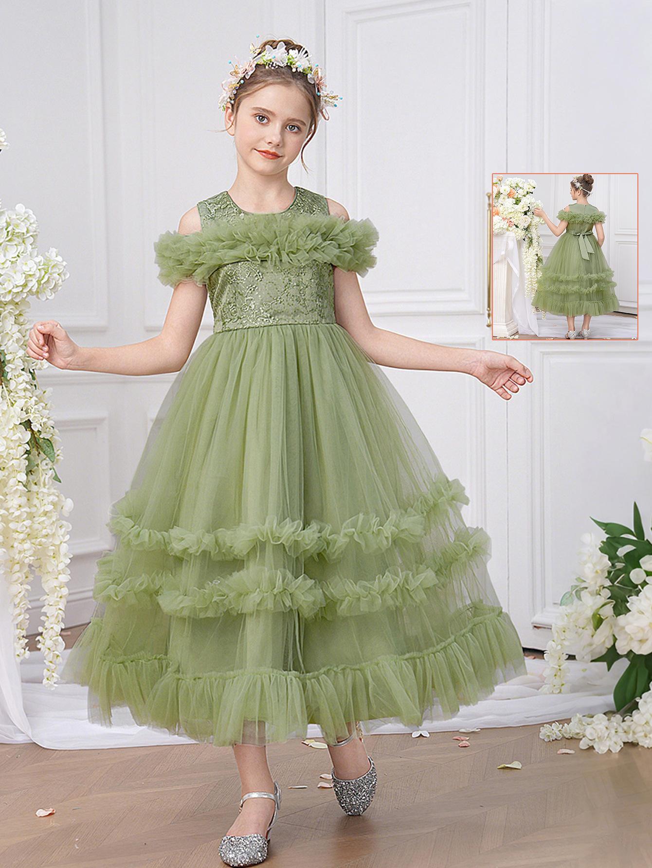 Vestido Infantil Transfronterizo Vestido de Princesa Moda Malla Pastel Tutú Falda Niña de las Flores Niña Vestido de Fiesta Vestido de Noche