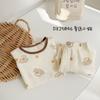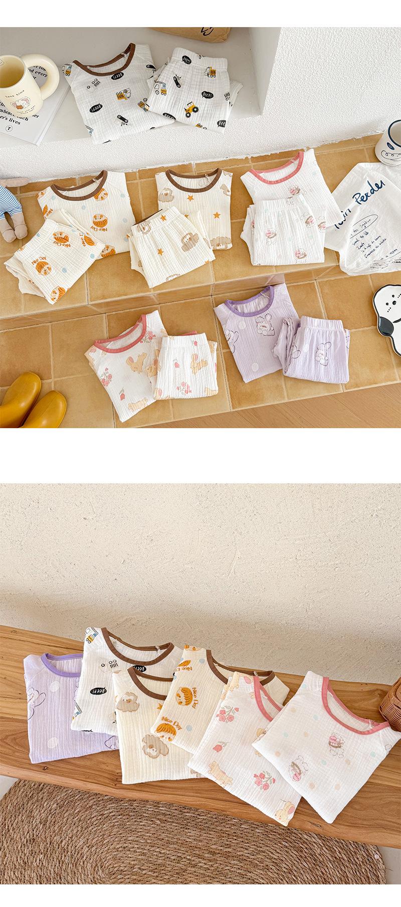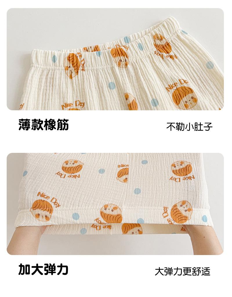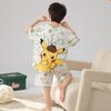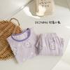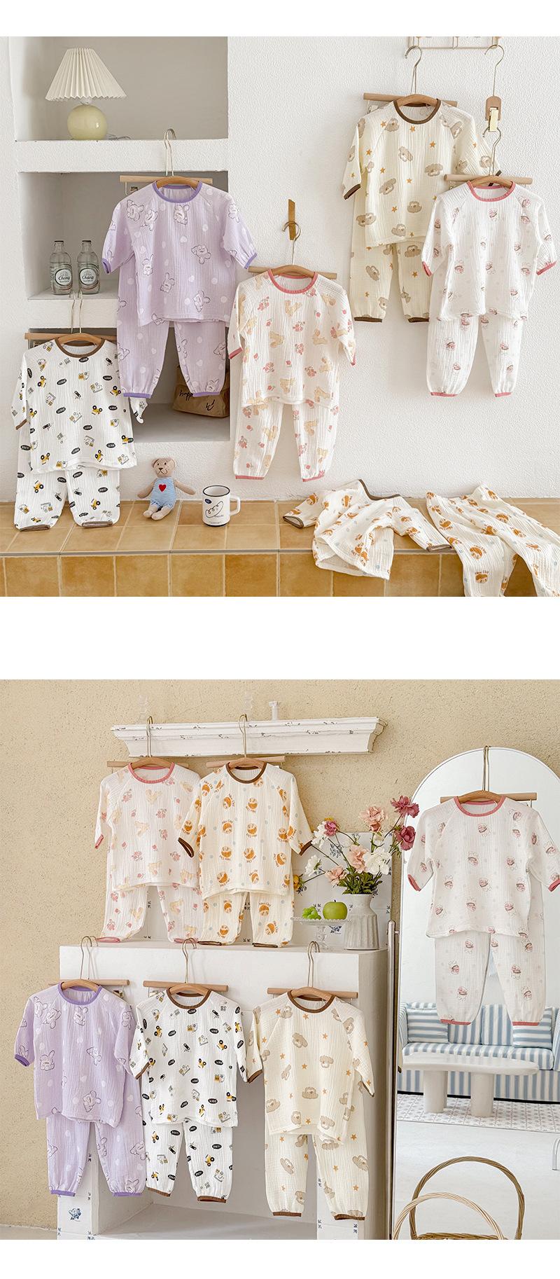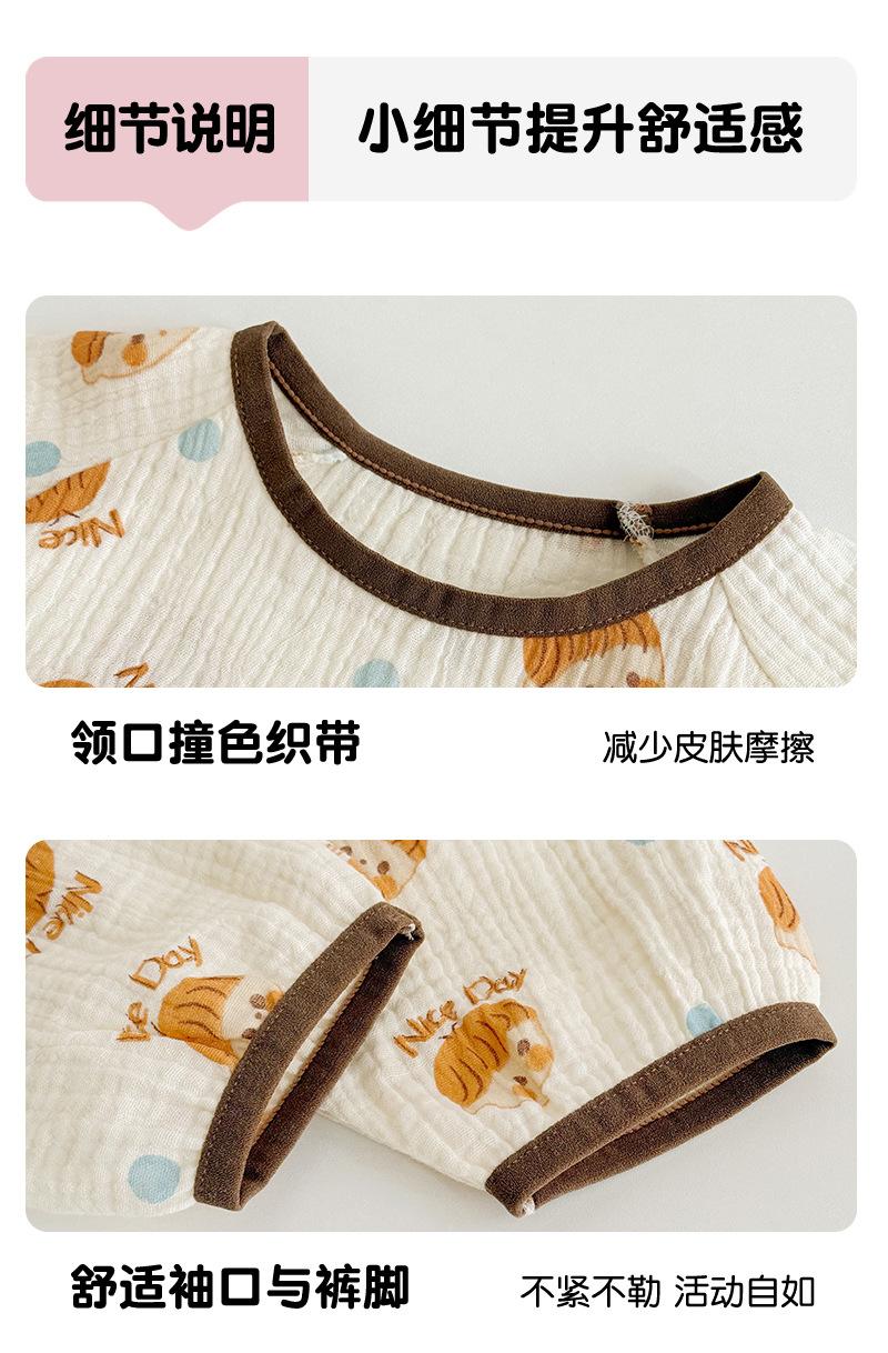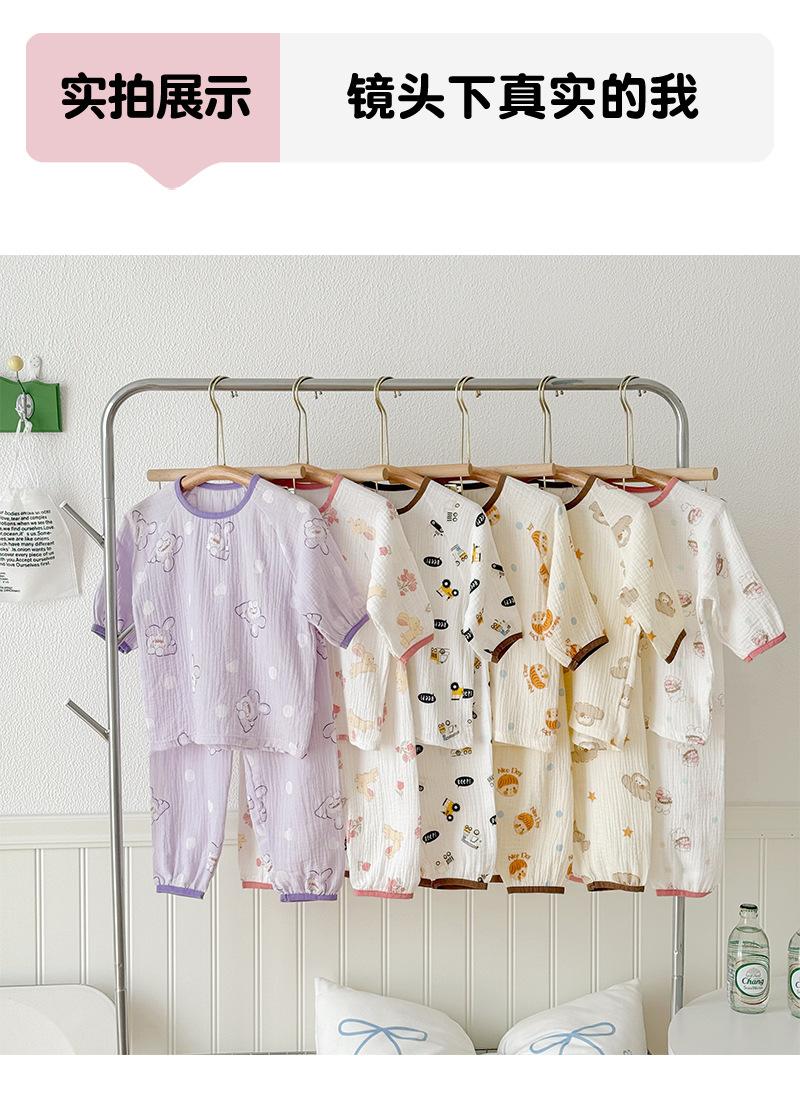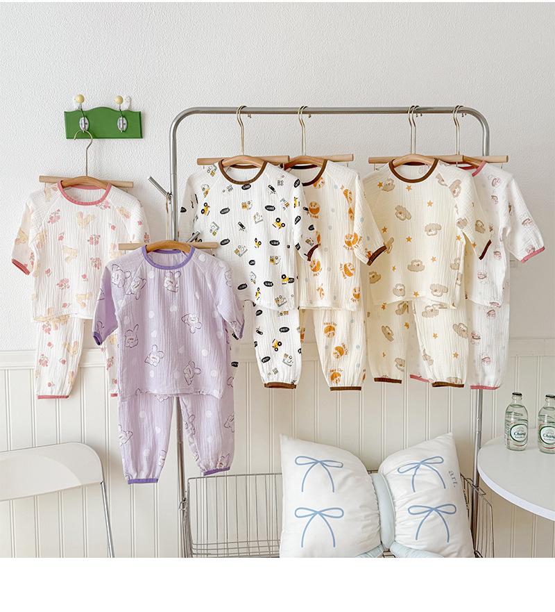 Traje para niños 2025 Verano Nuevo Casual Niños y Niñas Algodón Arrugado Categoría a Manga Tres Cuartos Pijamas para Niños