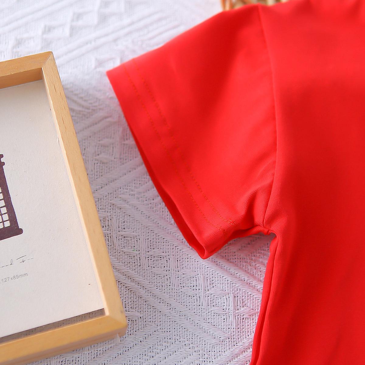 Red cat claw short sleeve suit