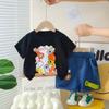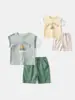 Traje de Verano Nuevo para Niños 2025 Ropa de Bebé de Moda para Niños Verano Delgada Manga Corta Pantalones Cortos Conjunto de Dos Piezas Moderno