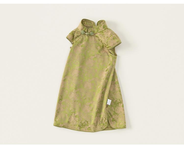 Vestido de Verano de Nuevo Estilo Chino para Niñas - Elegante Cheongsam Infantil de Estilo Nacional con Botones Estampados