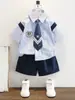 8506 boys overalls two-piece set, 8506 girls gauze skirt two-piece set