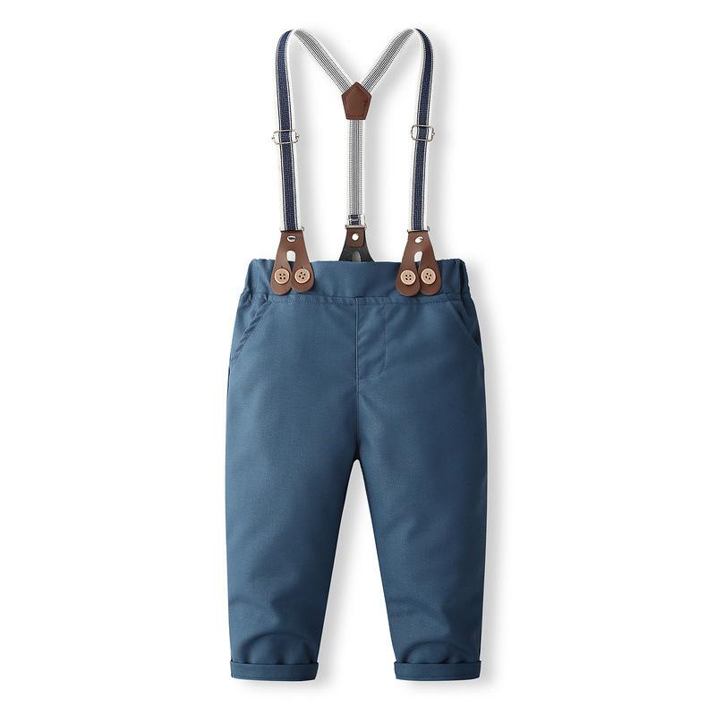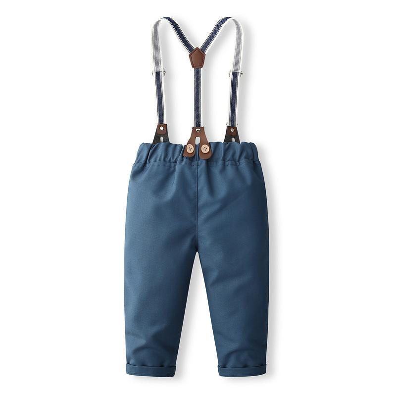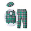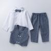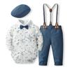 Patrón para bebé y niño pequeño traje de caballero estilo británico ropa con capucha para niño tirantes para niños de un año conjunto de tres piezas