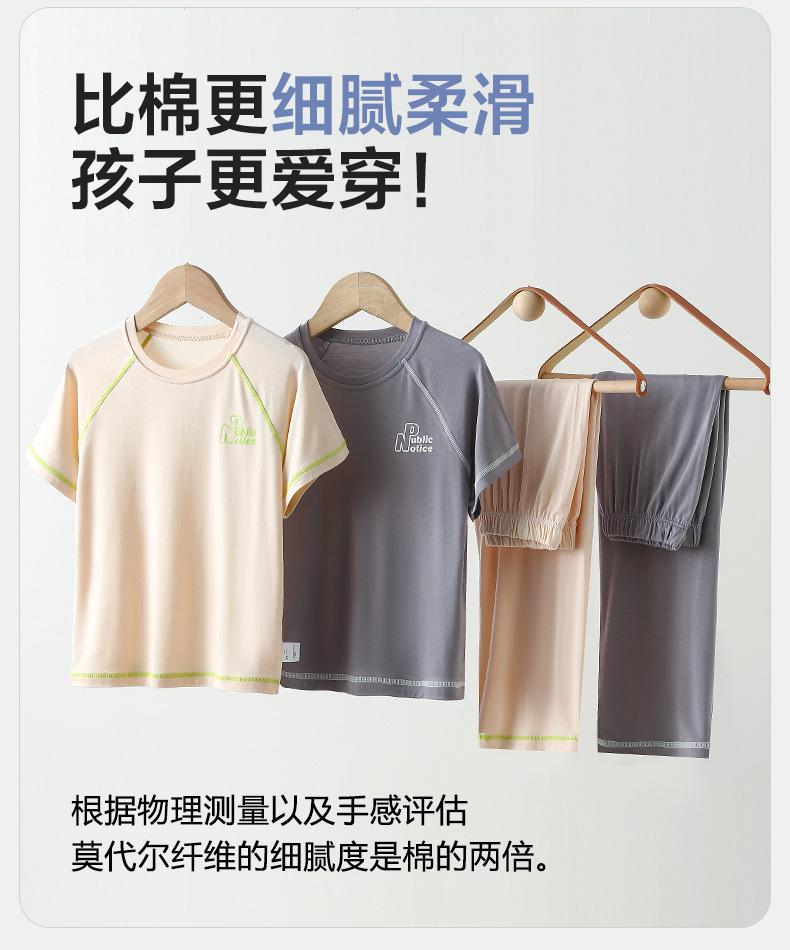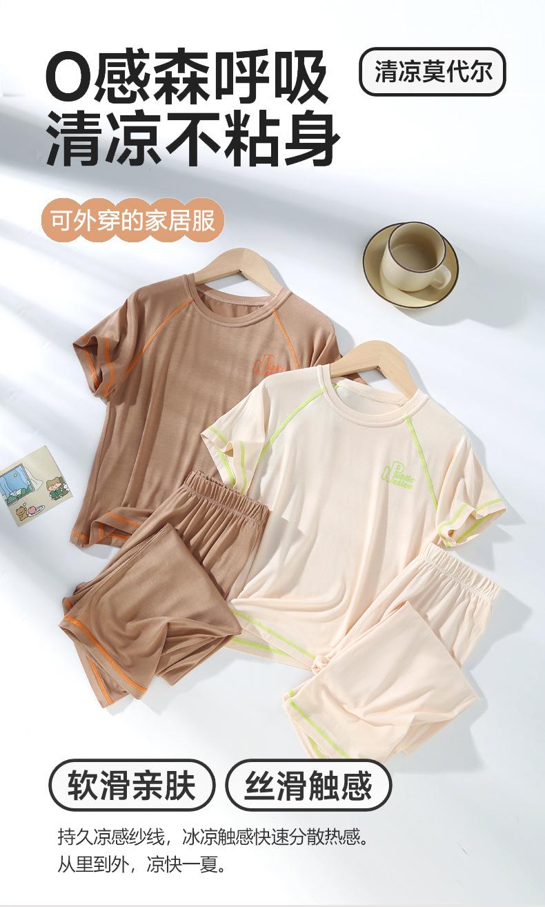 Pijama Modal para Niño Verano Seda de Hielo Ropa para Aire Acondicionado para Niñas Ropa para el Hogar Infantil Conjunto Delgado Casual de Manga Corta y Pantalón Largo