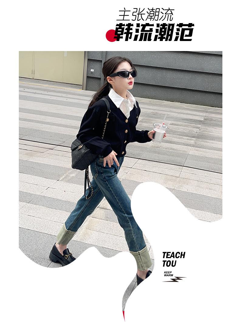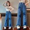 Jeans de otoño e invierno para niñas 2023 nuevos pantalones de tubo modernos de moda para niñas medianas y grandes pantalones modernos para niños