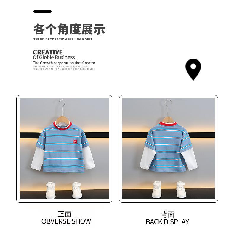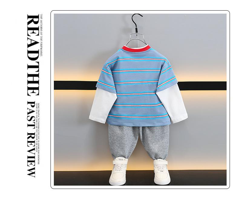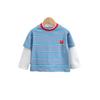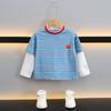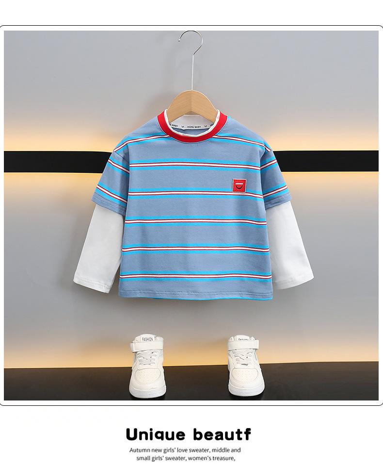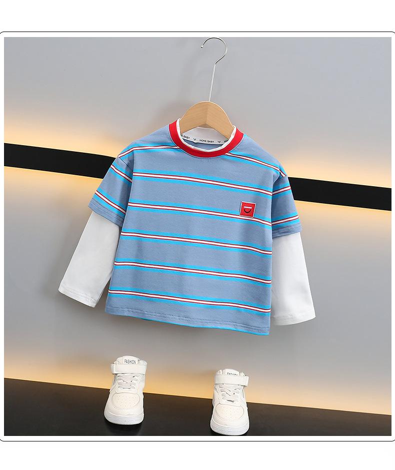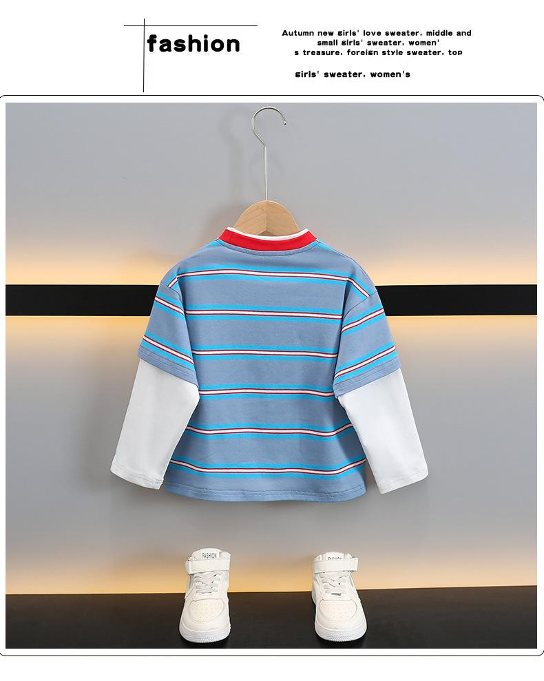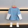 Camiseta de Algodón de Dos Piezas Falsas para Niño 2025 Costuras a Contraste para Niños Camiseta Básica Coreana de Manga Larga Suéter T de Bebé