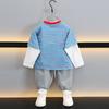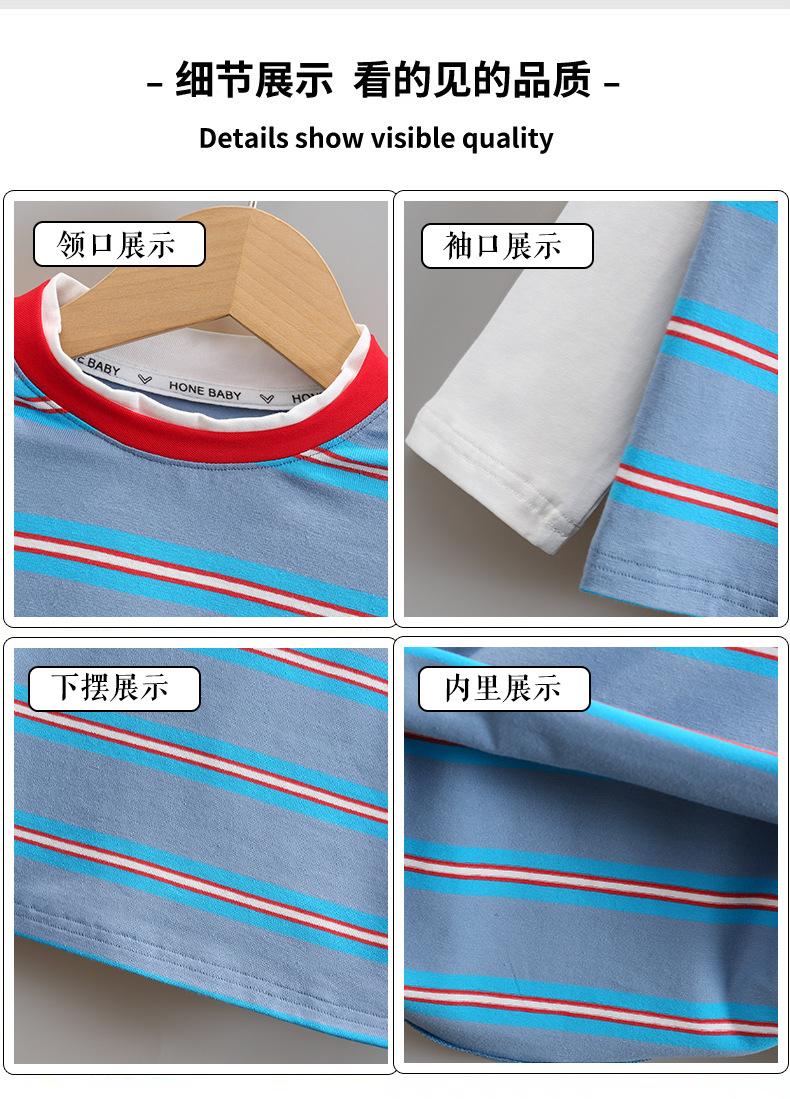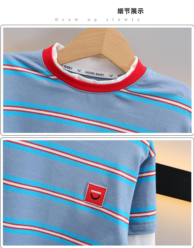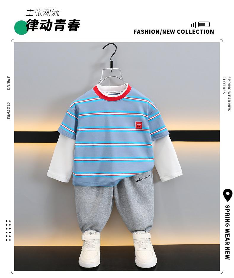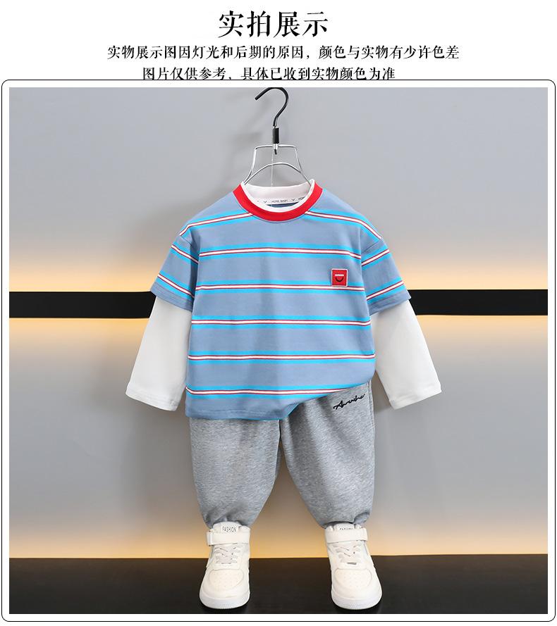 Camiseta de Algodón de Dos Piezas Falsas para Niño 2025 Costuras a Contraste para Niños Camiseta Básica Coreana de Manga Larga Suéter T de Bebé