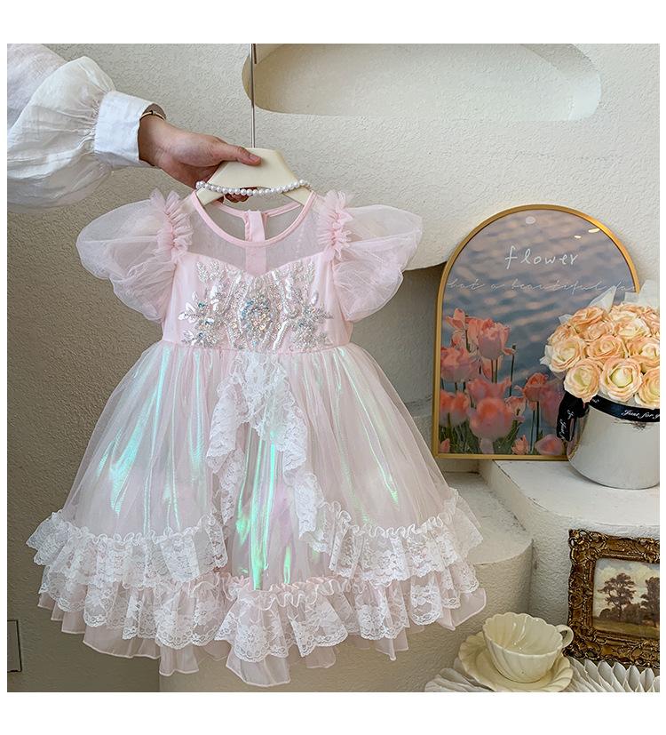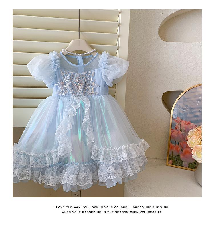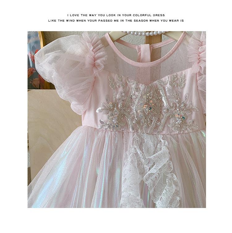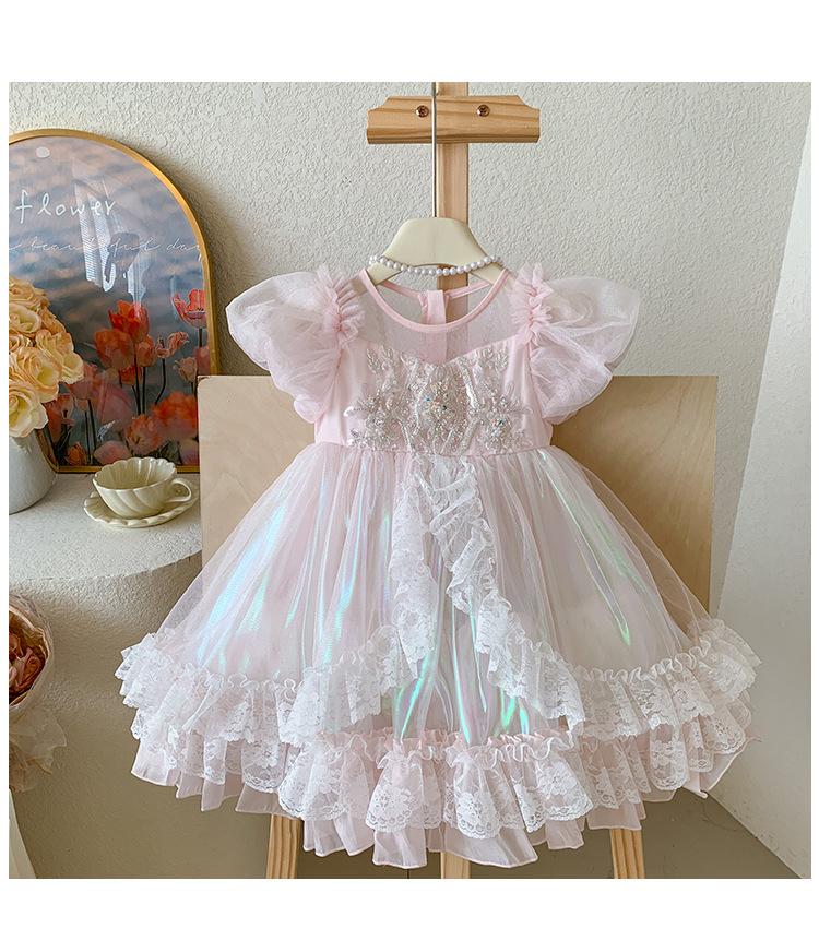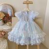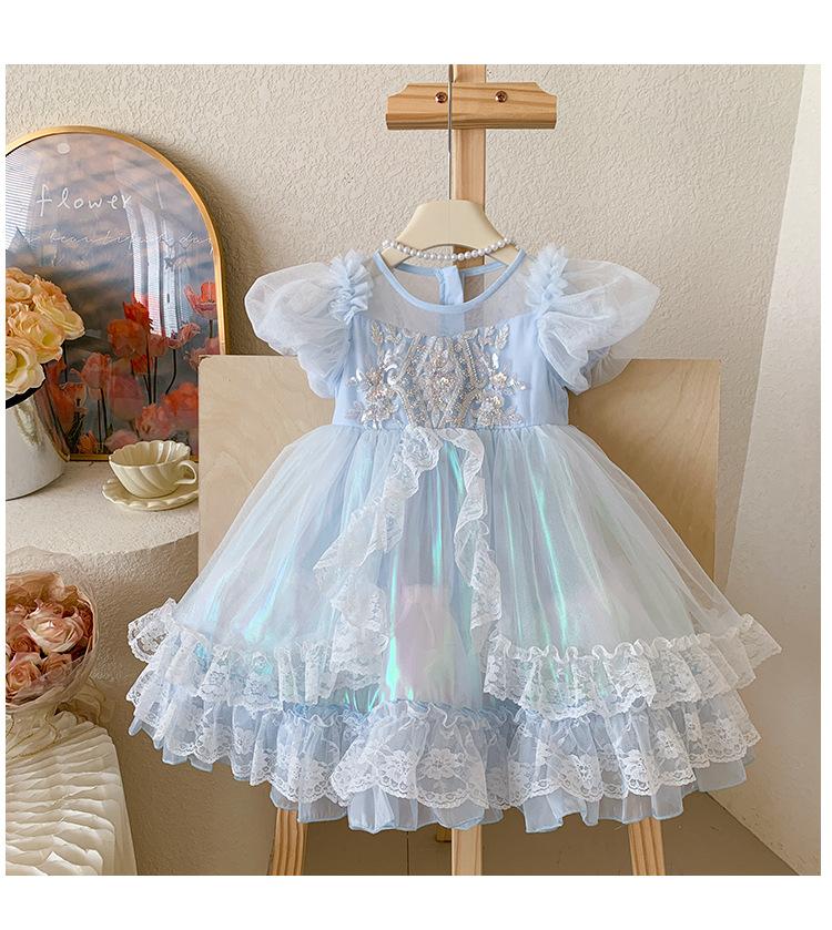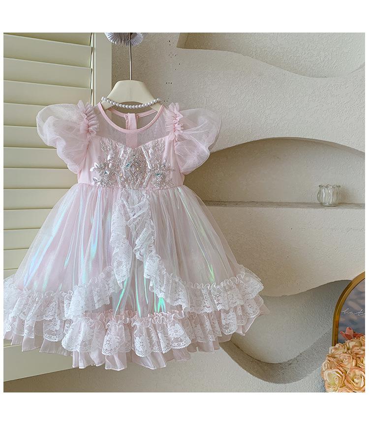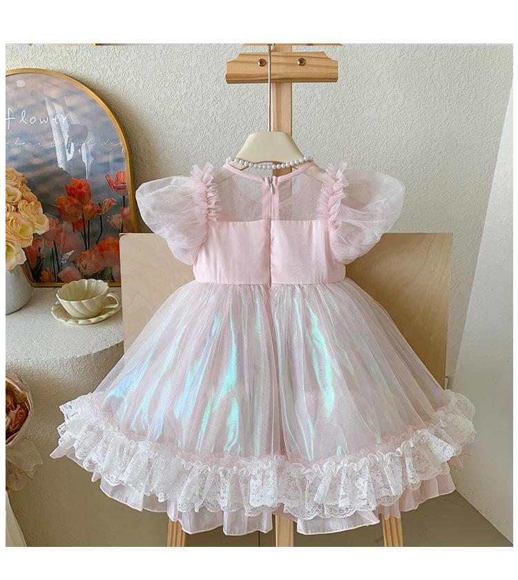 Vestido de Niña 2025 Verano Nuevo Vestido de Princesa de Malla con Lentejuelas para Bebé Vestido de Cumpleaños Vestido de Gasa Abullonado