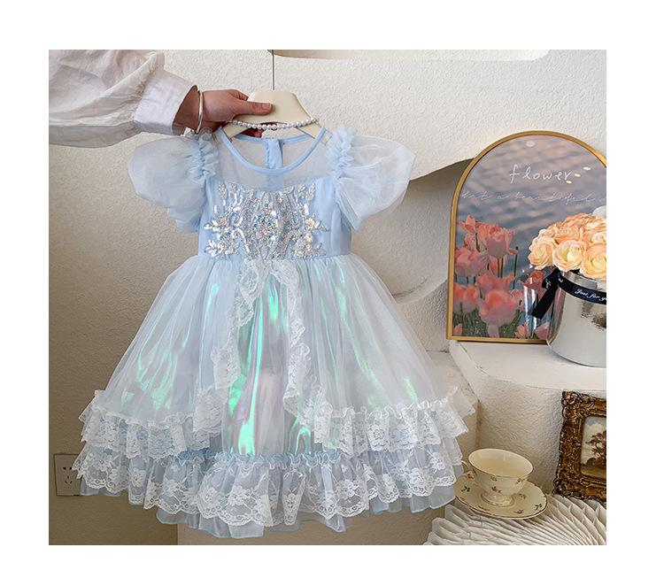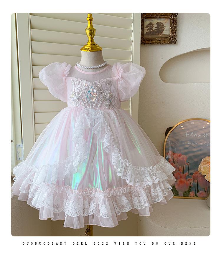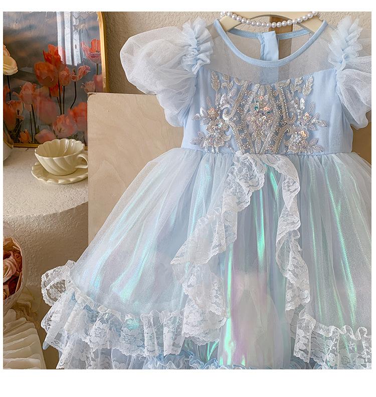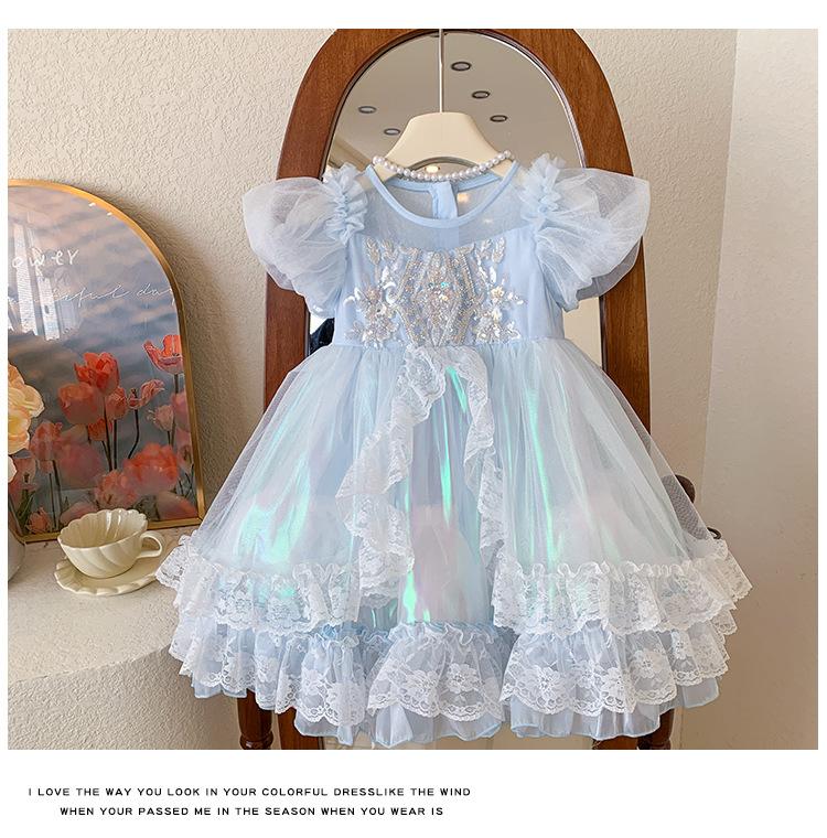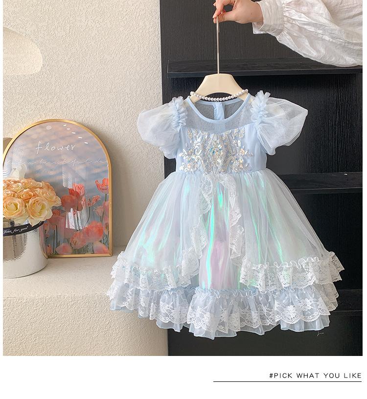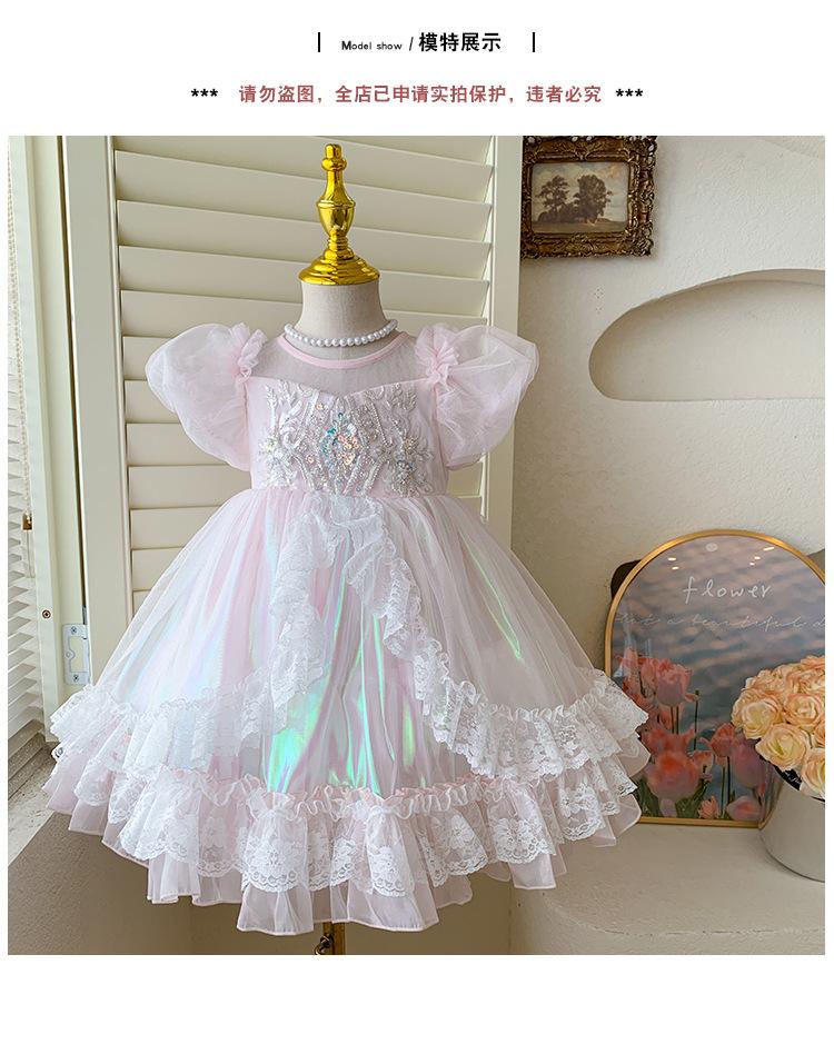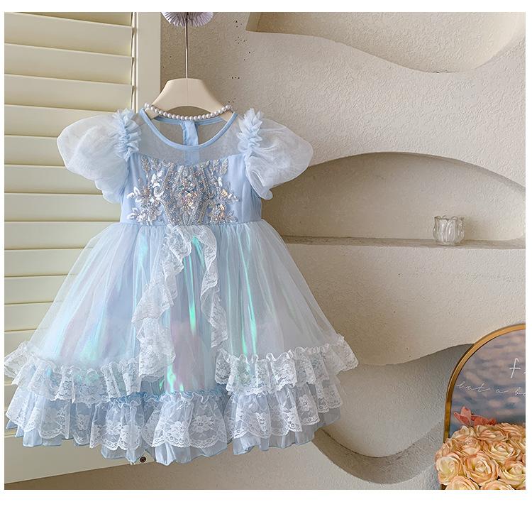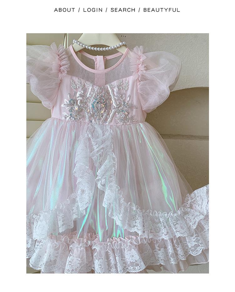 Vestido de Niña 2025 Verano Nuevo Vestido de Princesa de Malla con Lentejuelas para Bebé Vestido de Cumpleaños Vestido de Gasa Abullonado