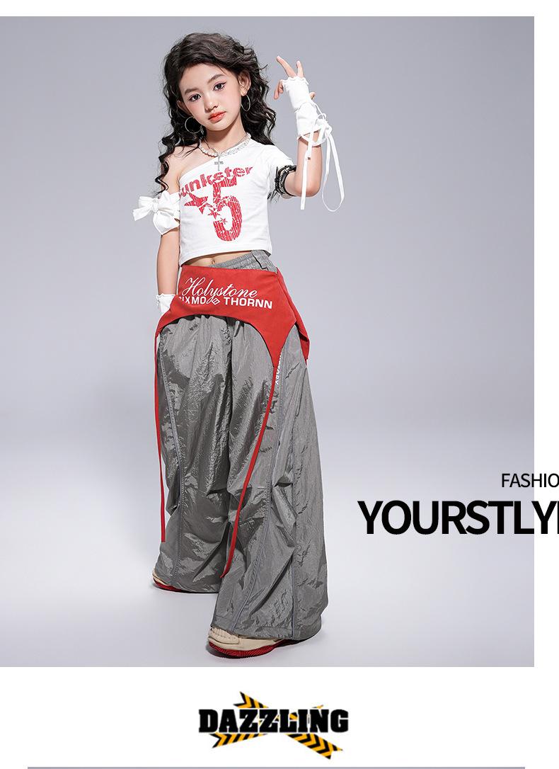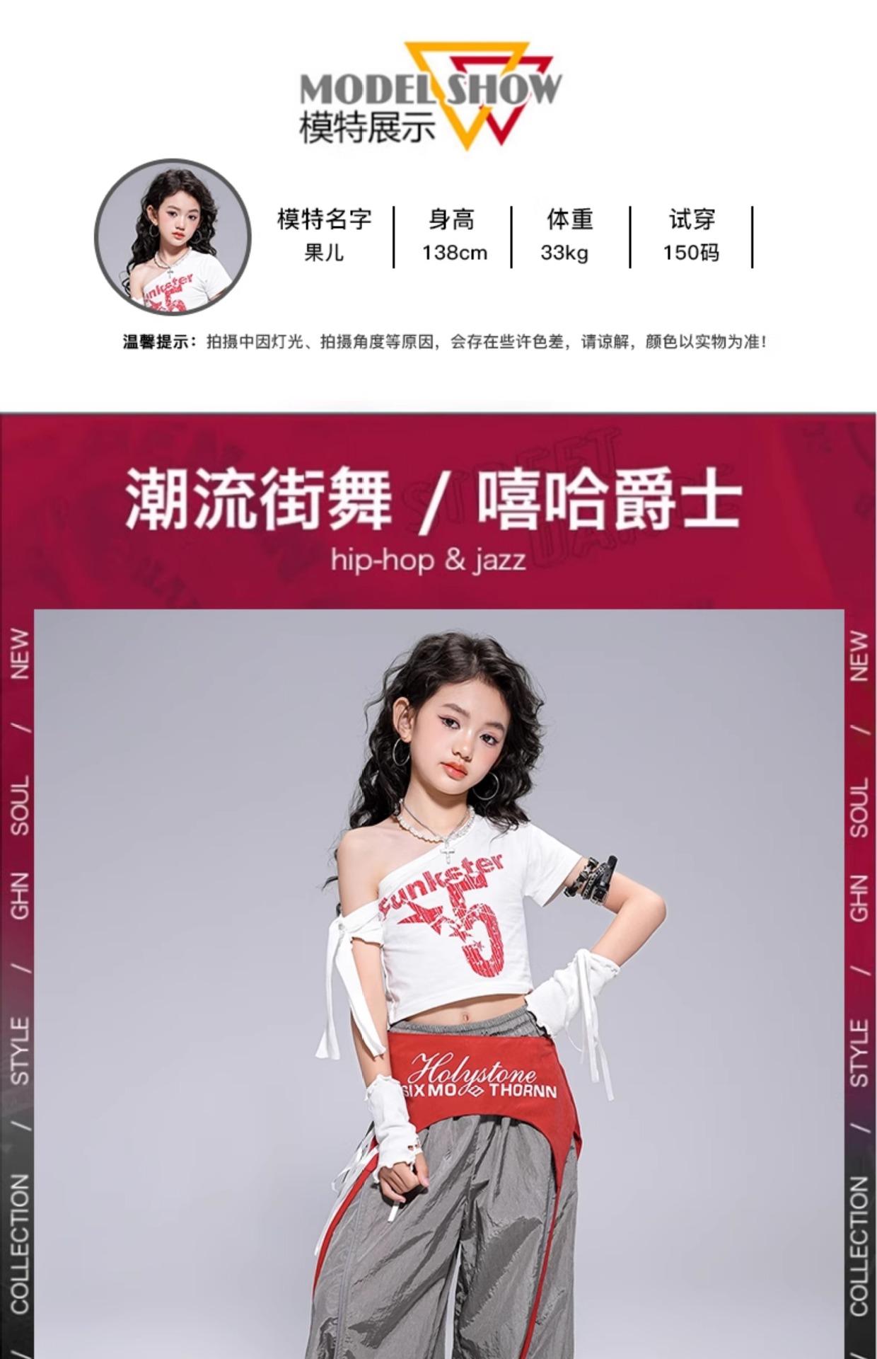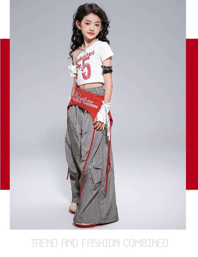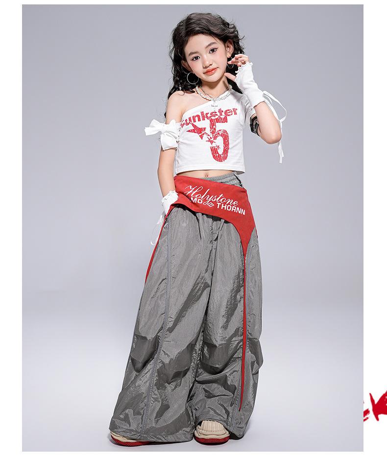 Ropa de Danza Jazz para Niñas Estilo Coreano Marca Trendy Pantalones Cargo Traje de Actuación Danza Urbana Ropa Trendy Infantil Traje de Actuación de Jazz para Niñas