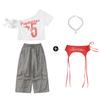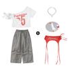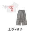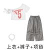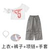 A47 white fu short sleeves + 492 gray trousers, A47 white fu short sleeves + 492 gray trousers + cross necklac...