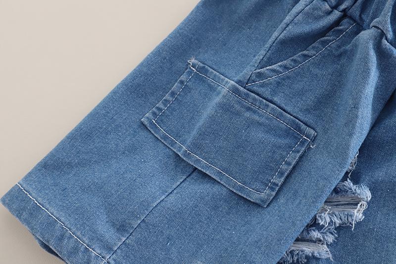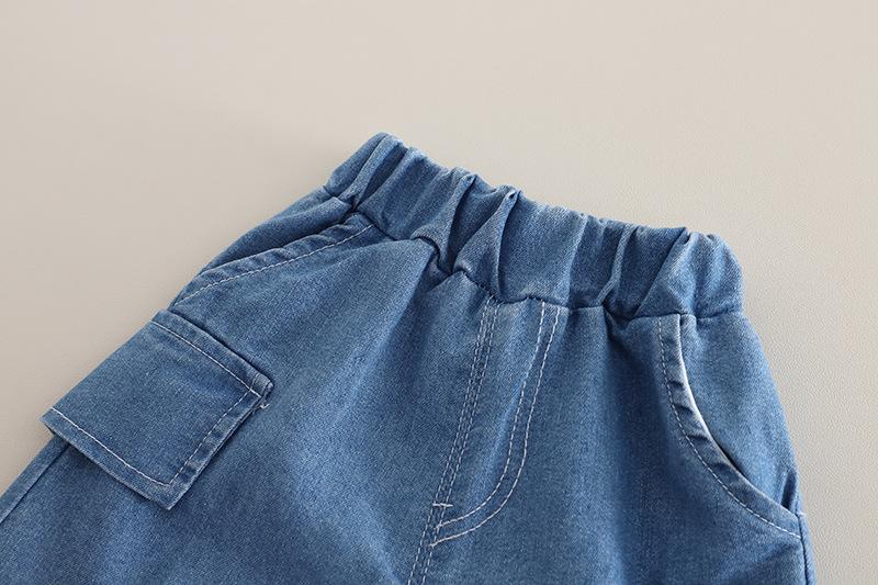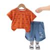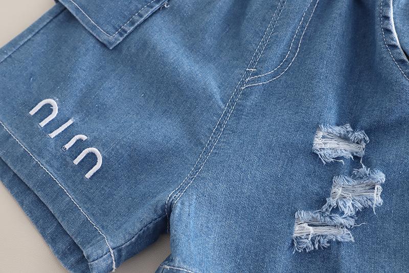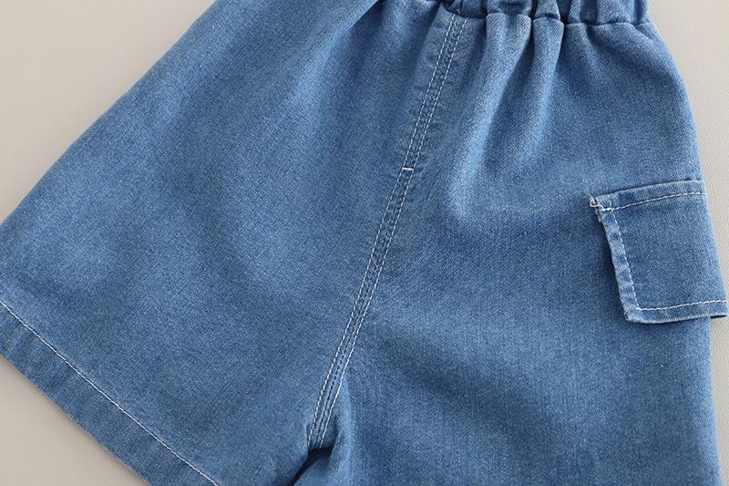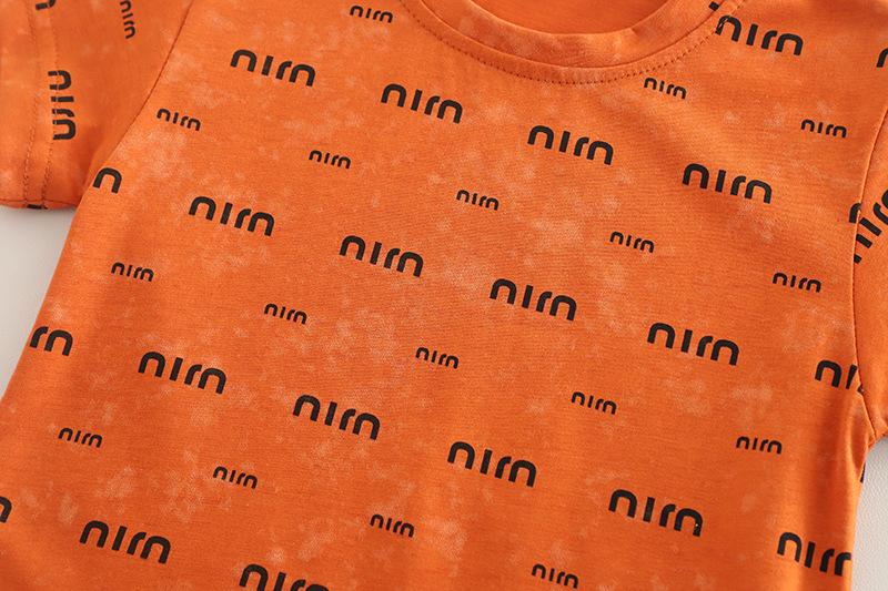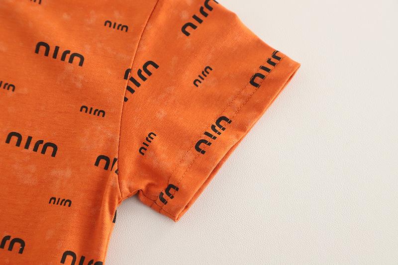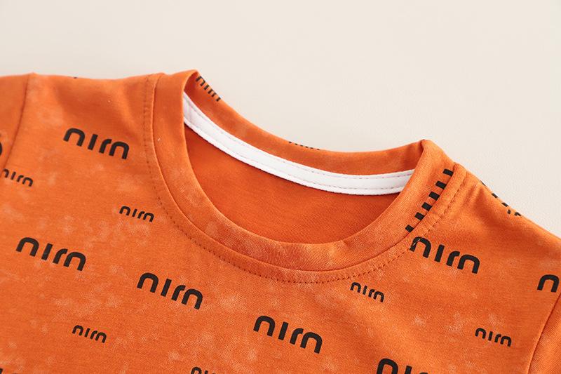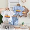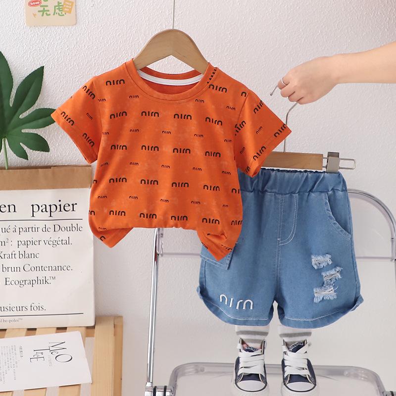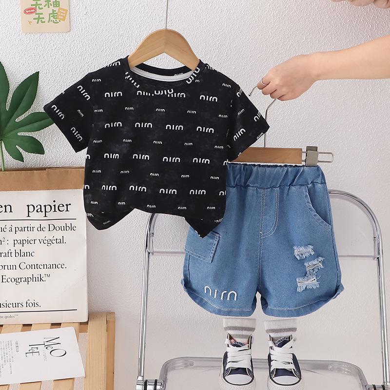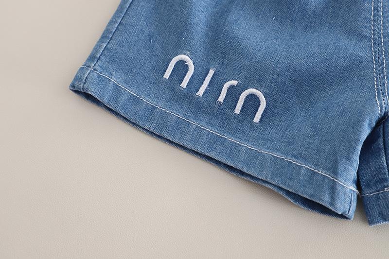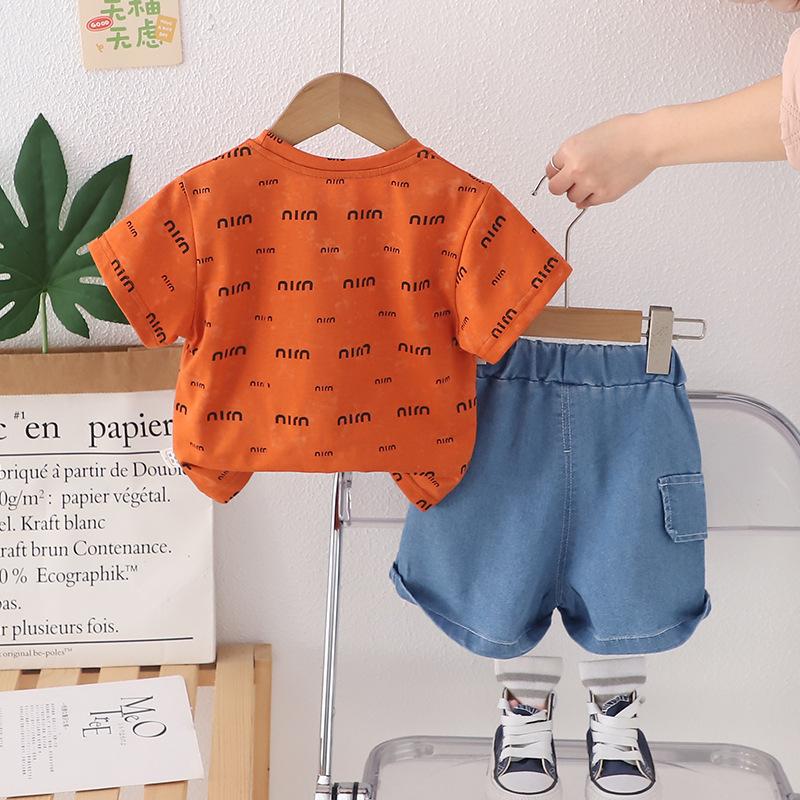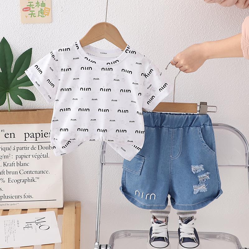 Ropa de Verano para Bebé 2025 Nuevo Estilo para Niños y Niñas, Traje de Manga Corta con Estampado Completo de Letras Pequeñas, Shorts para Niños de Mezclilla Suave y Delgada
